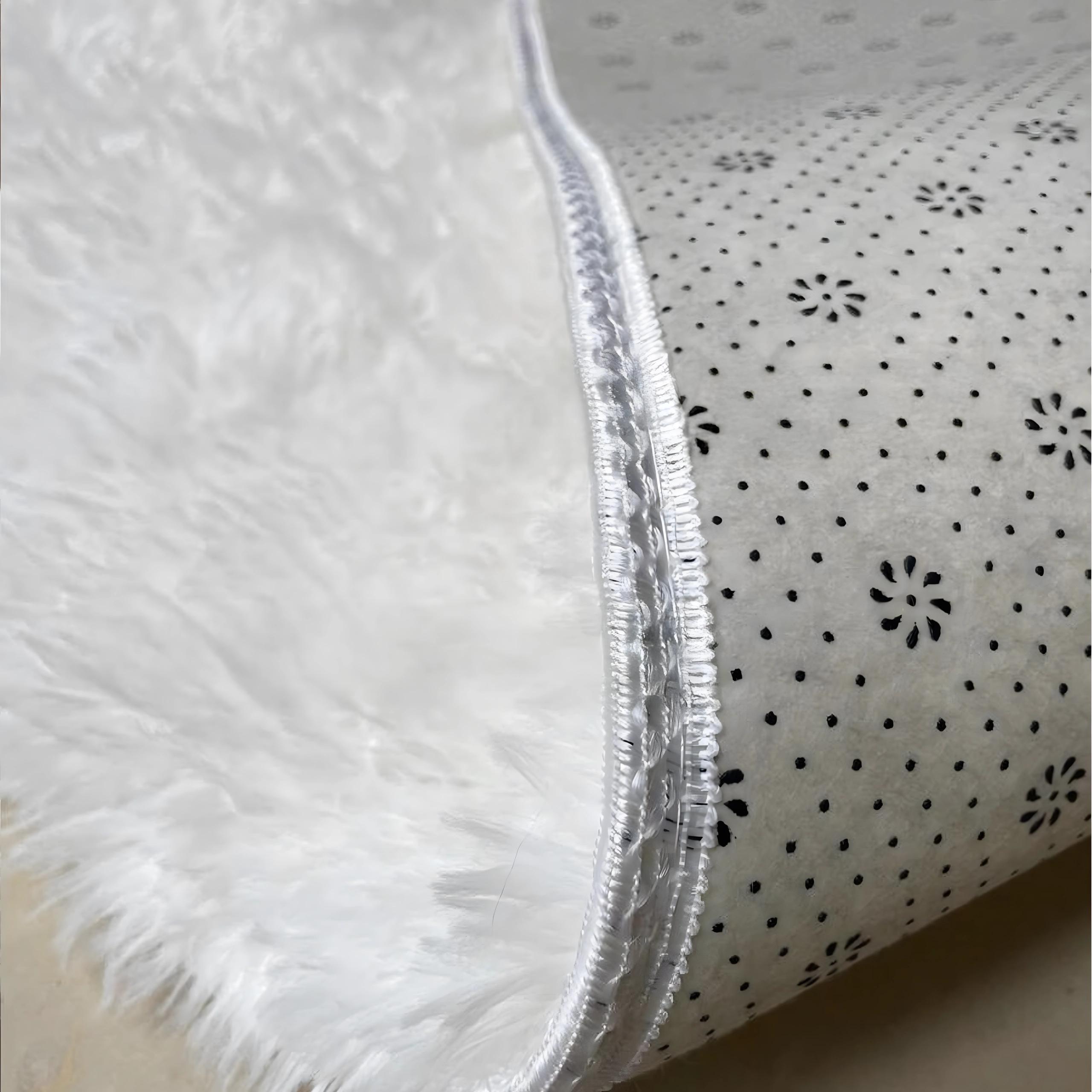 Den integrerede skridsikre belægning holder tæppet sikkert på plads – ideelt ved sengen, i stuen og til børns leg.