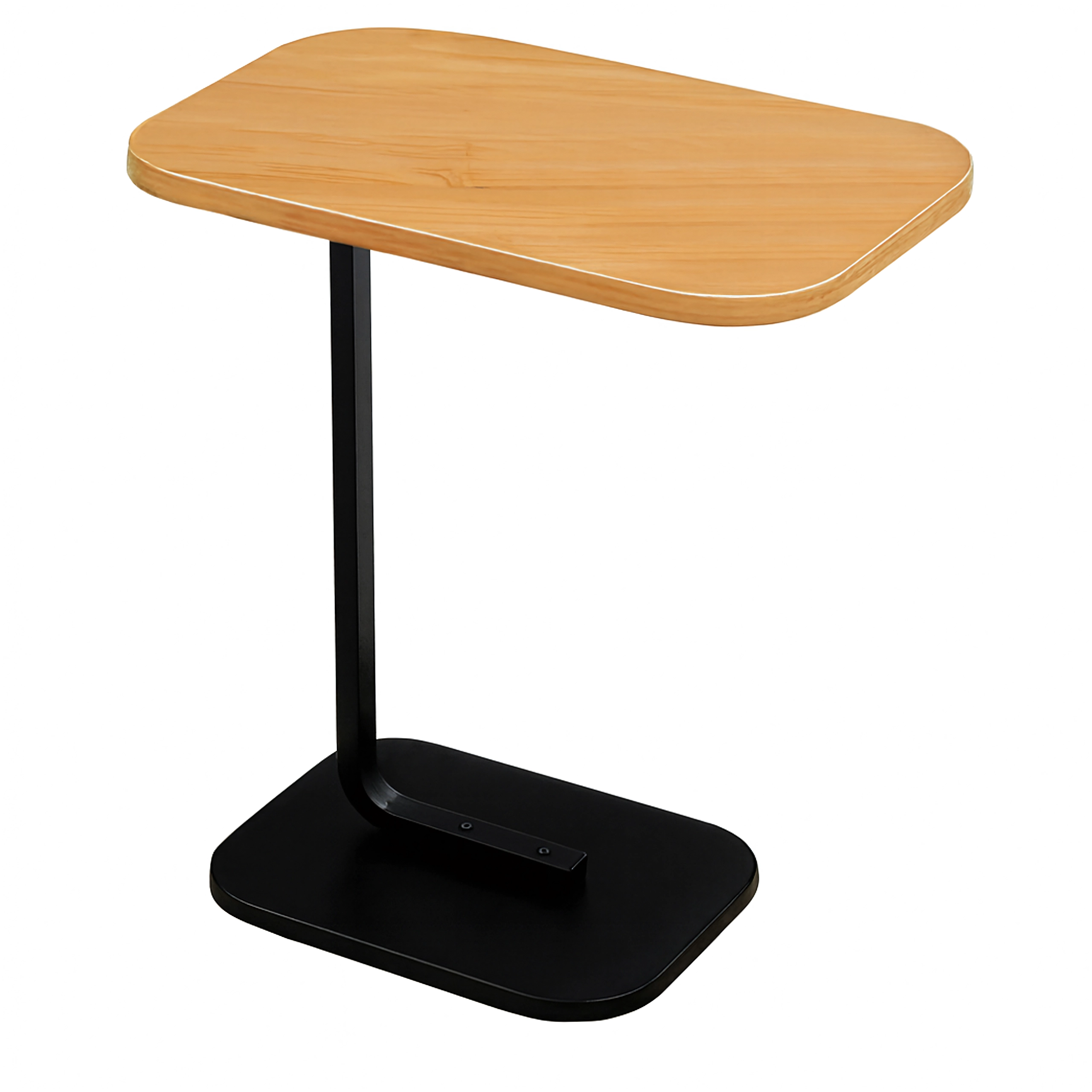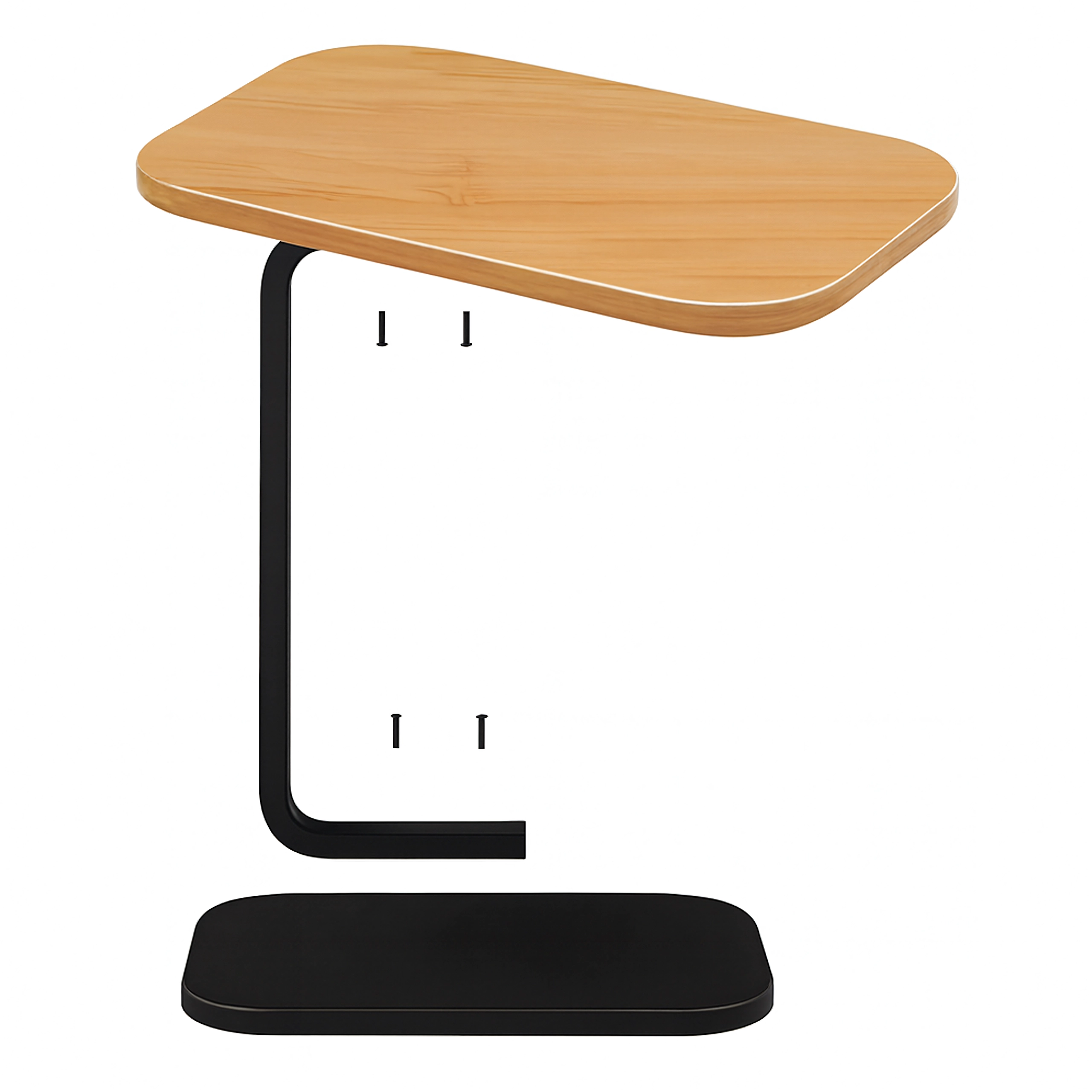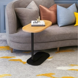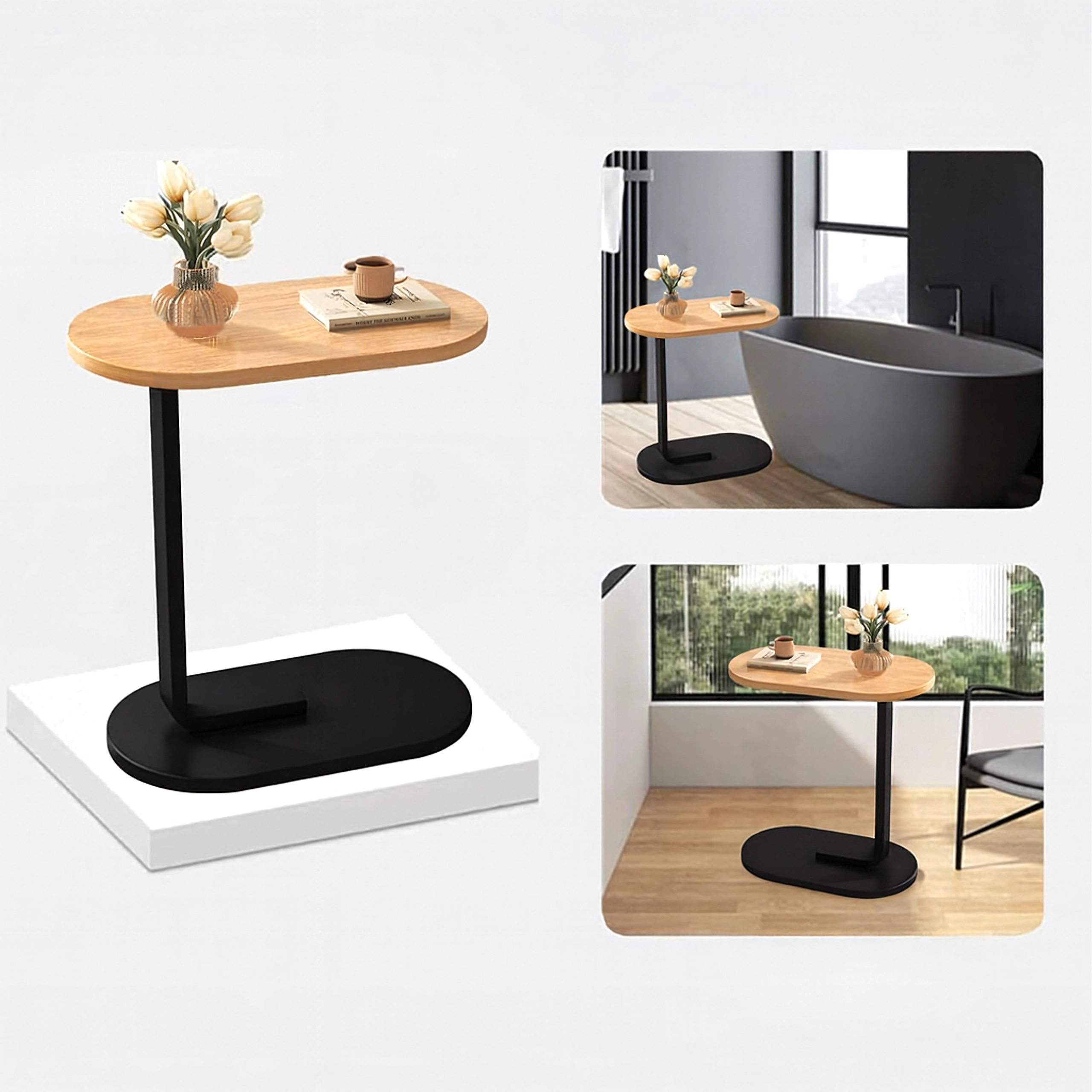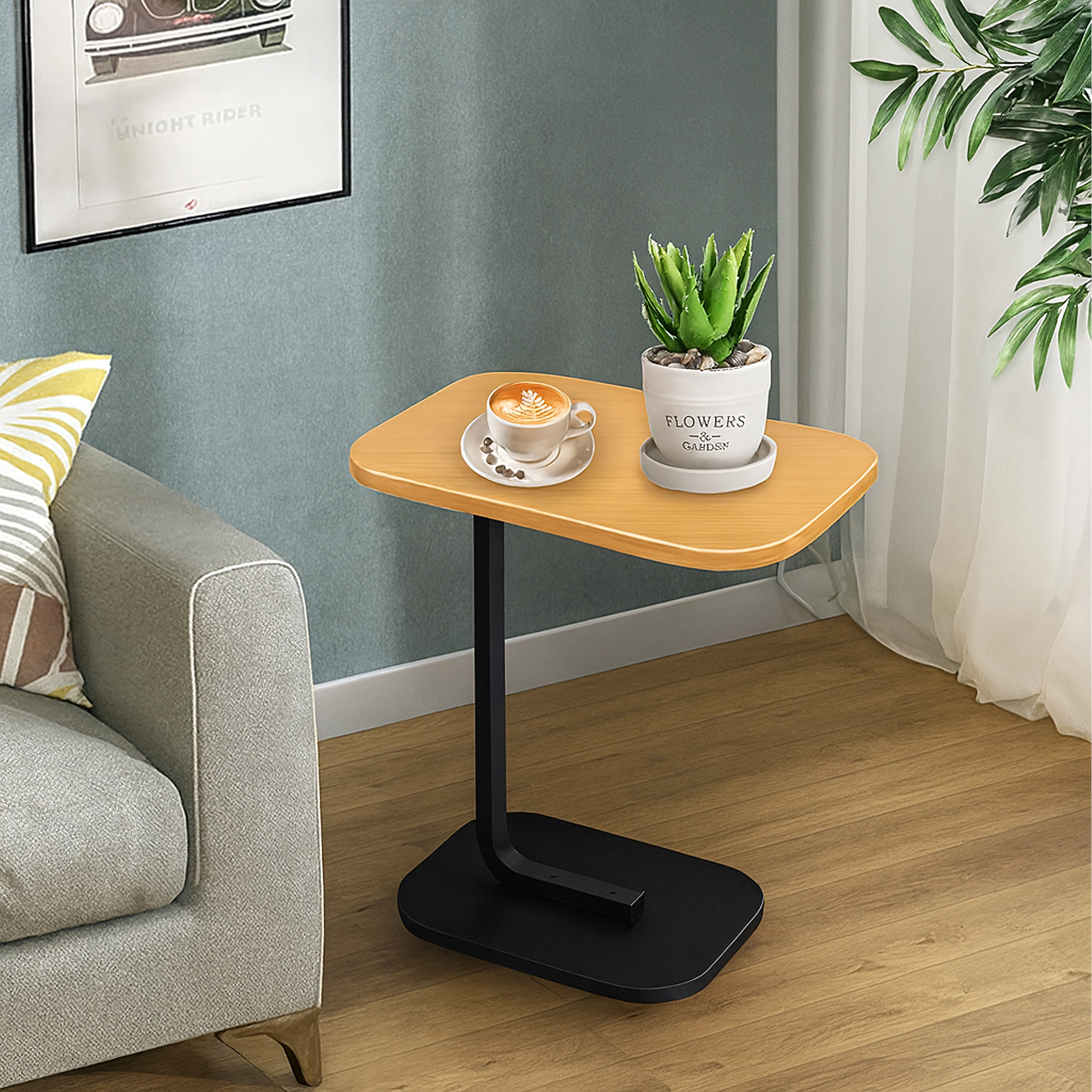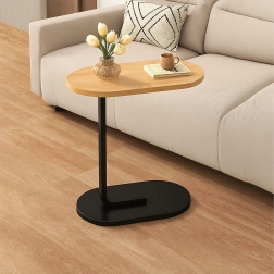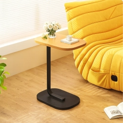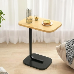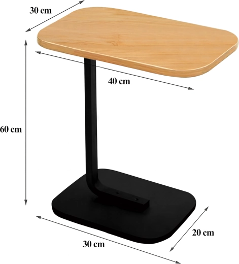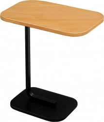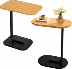 Det elegante C-formede bord kombinerer en lys trædekoreret bordplade med en holdbar sort metalramme. Ideelt som sidebord ved sofaen, natbord ved sengen eller mobil base til arbejde med laptop. Takket være den slanke base kan det let skubbes ind under møbler og spare plads.