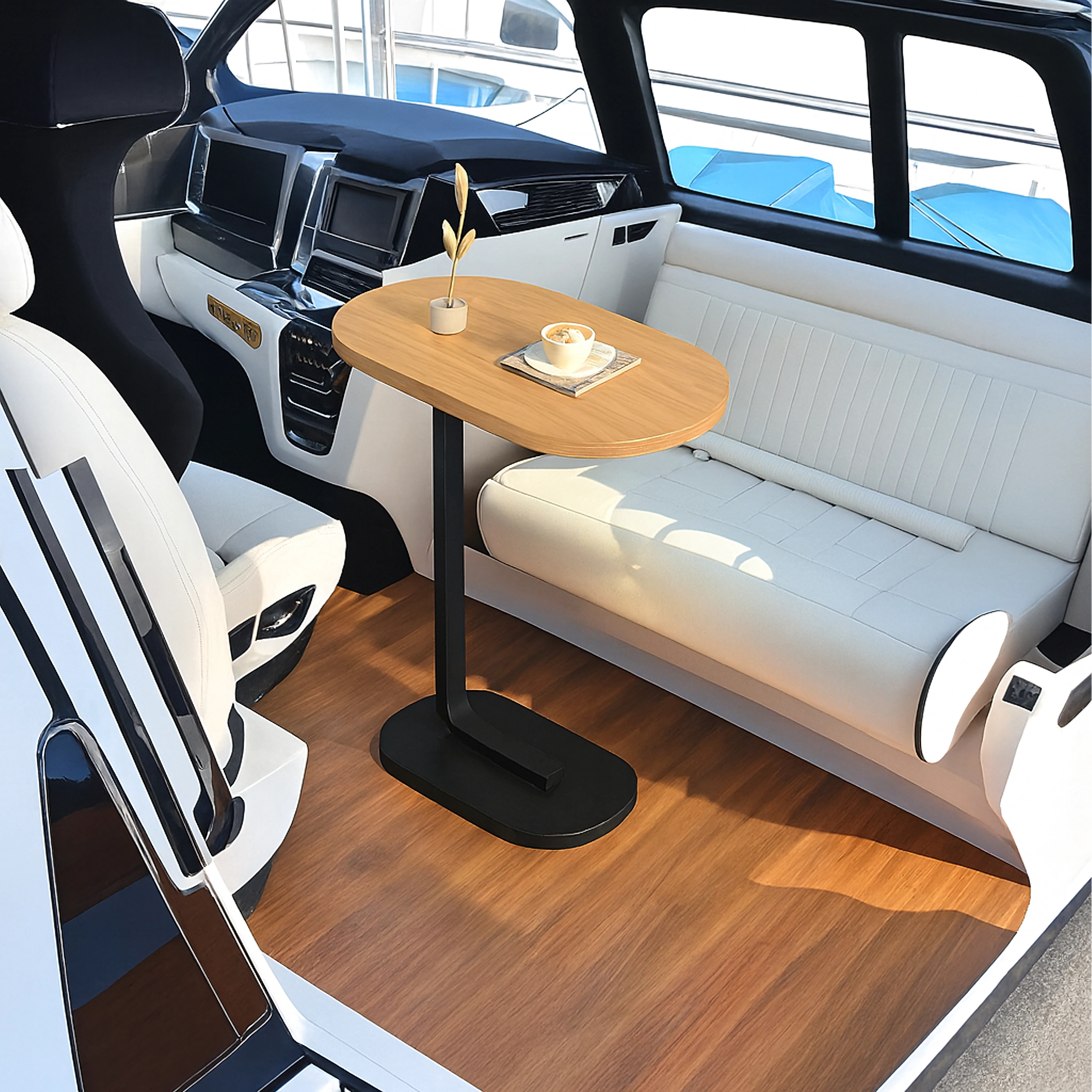 Den slanke base glider let ind under sofa eller lænestol. Ideel til bekvem afsætning af drikkevarer, bøger eller arbejde med laptop uden at skulle bøje sig ned.
