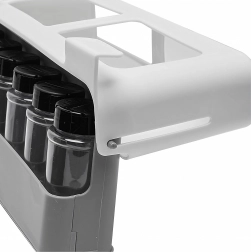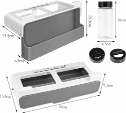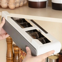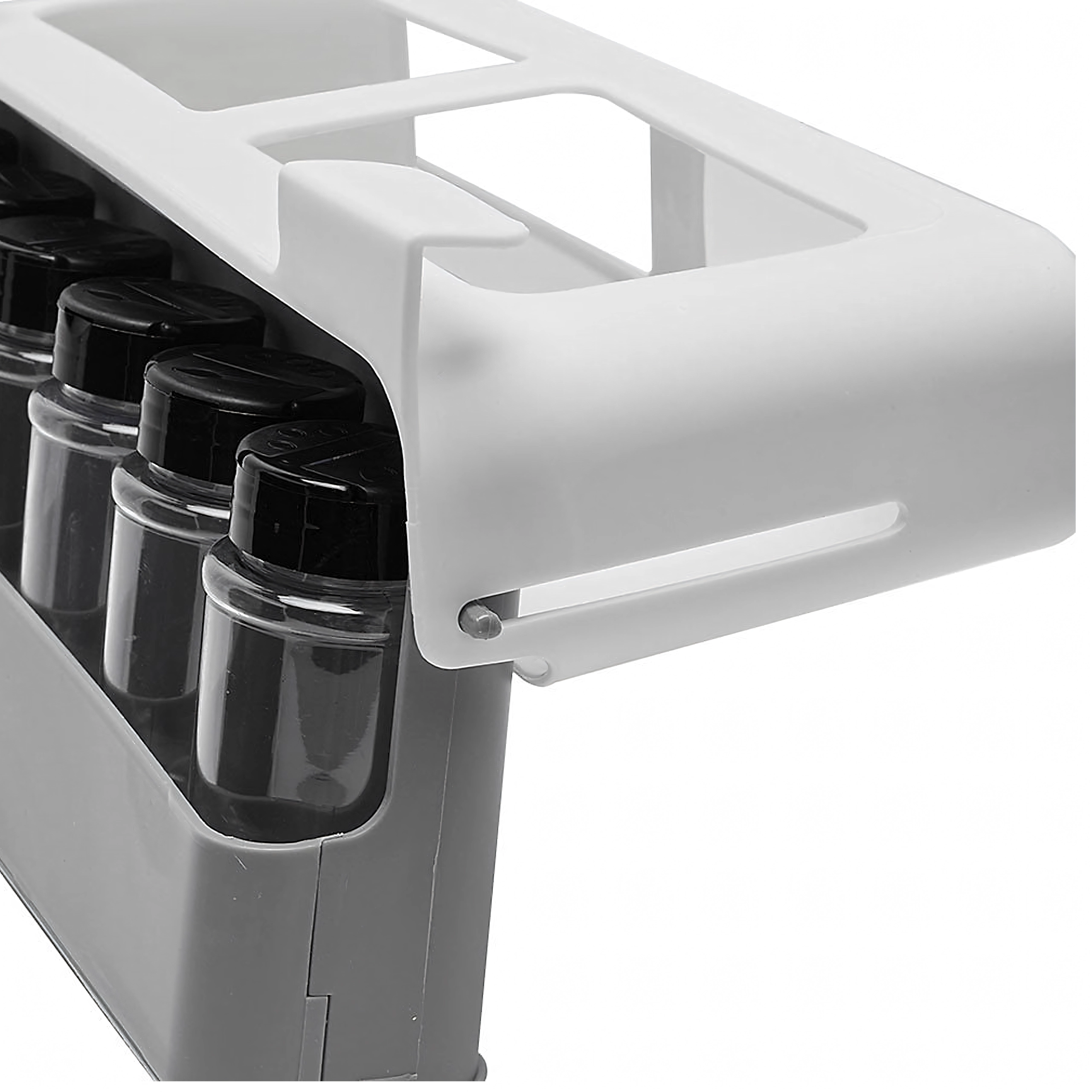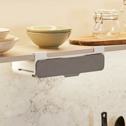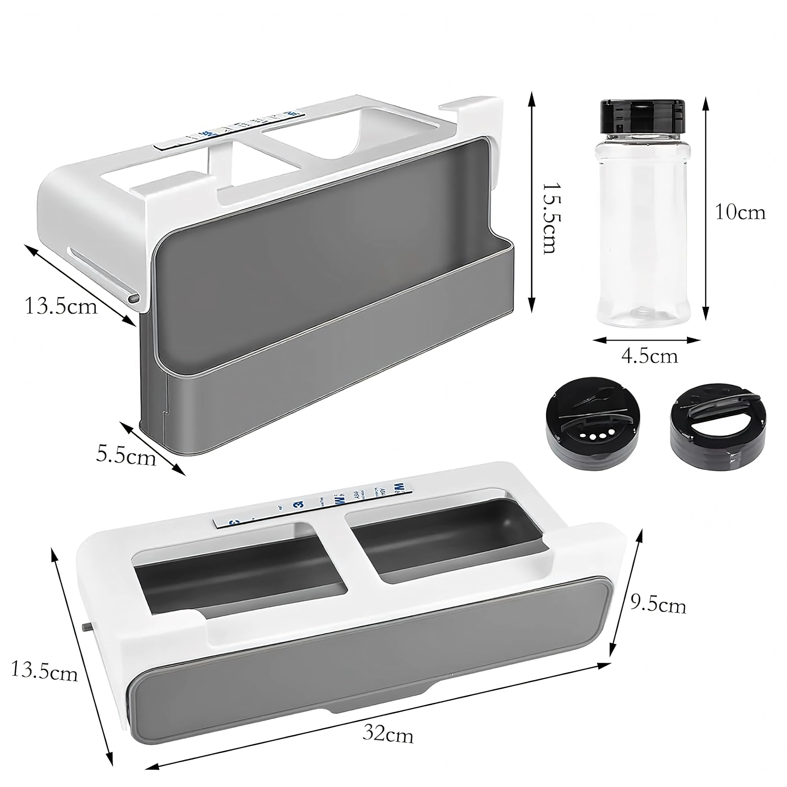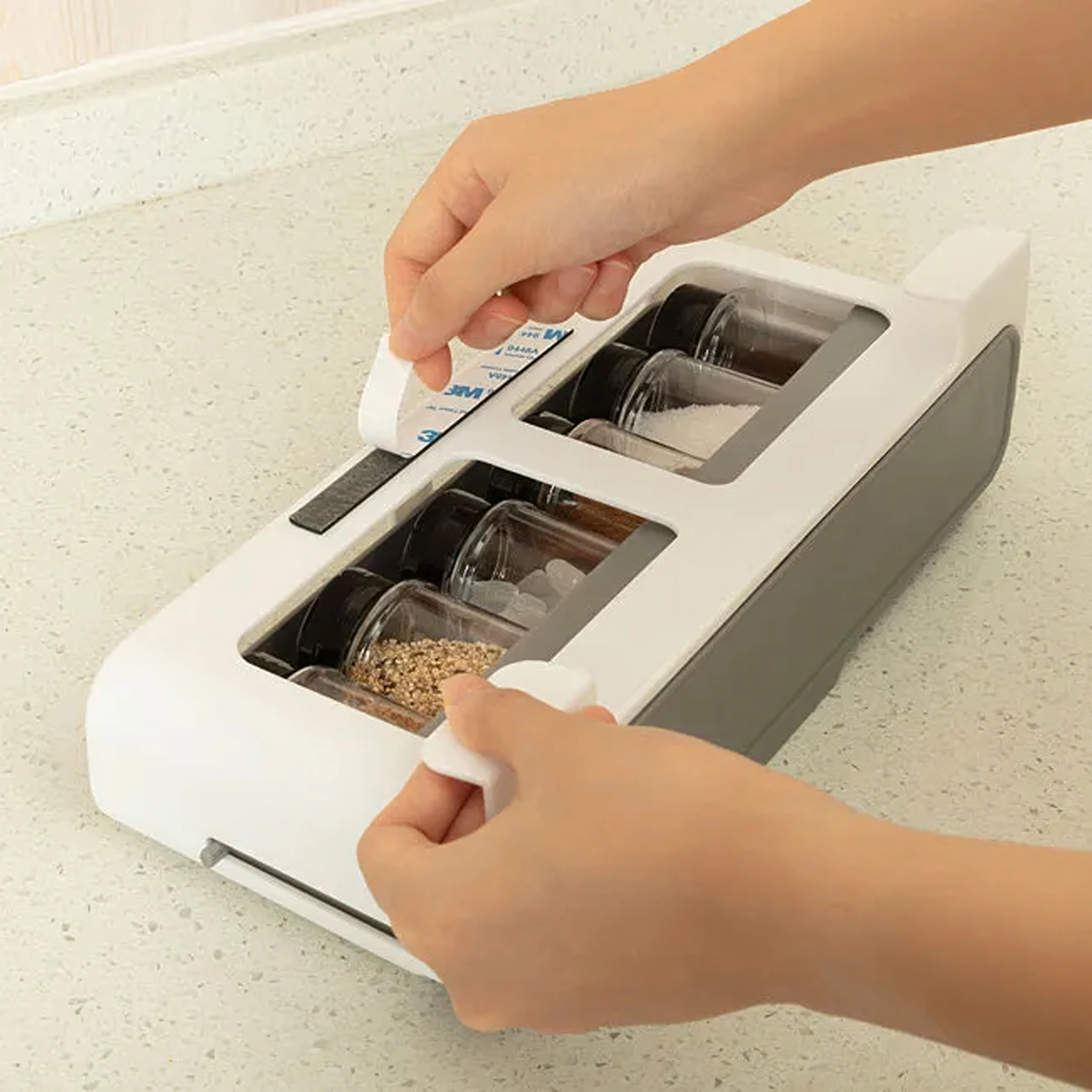 Den praktiske underhængte krydderi-organisator lader dig have dine yndlingskrydderier lige ved hånden og frigør samtidig bordplads. Takket være den overskuelige udtrækskonstruktion kan du nemt trække skinnen med glassene ud og straks se, hvad du skal bruge. Den selvklæbende montering med 3M-tape sikrer en stærk fastgørelse uden boring og uden at beskadige møbler.