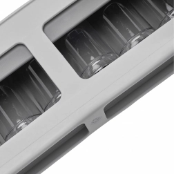 Den udtrækkelige/opfældelige skinne med glas giver hurtigt overblik og nem udtagning af krydderier. Ideel til mindre køkkener, hvor hver centimeter tæller.