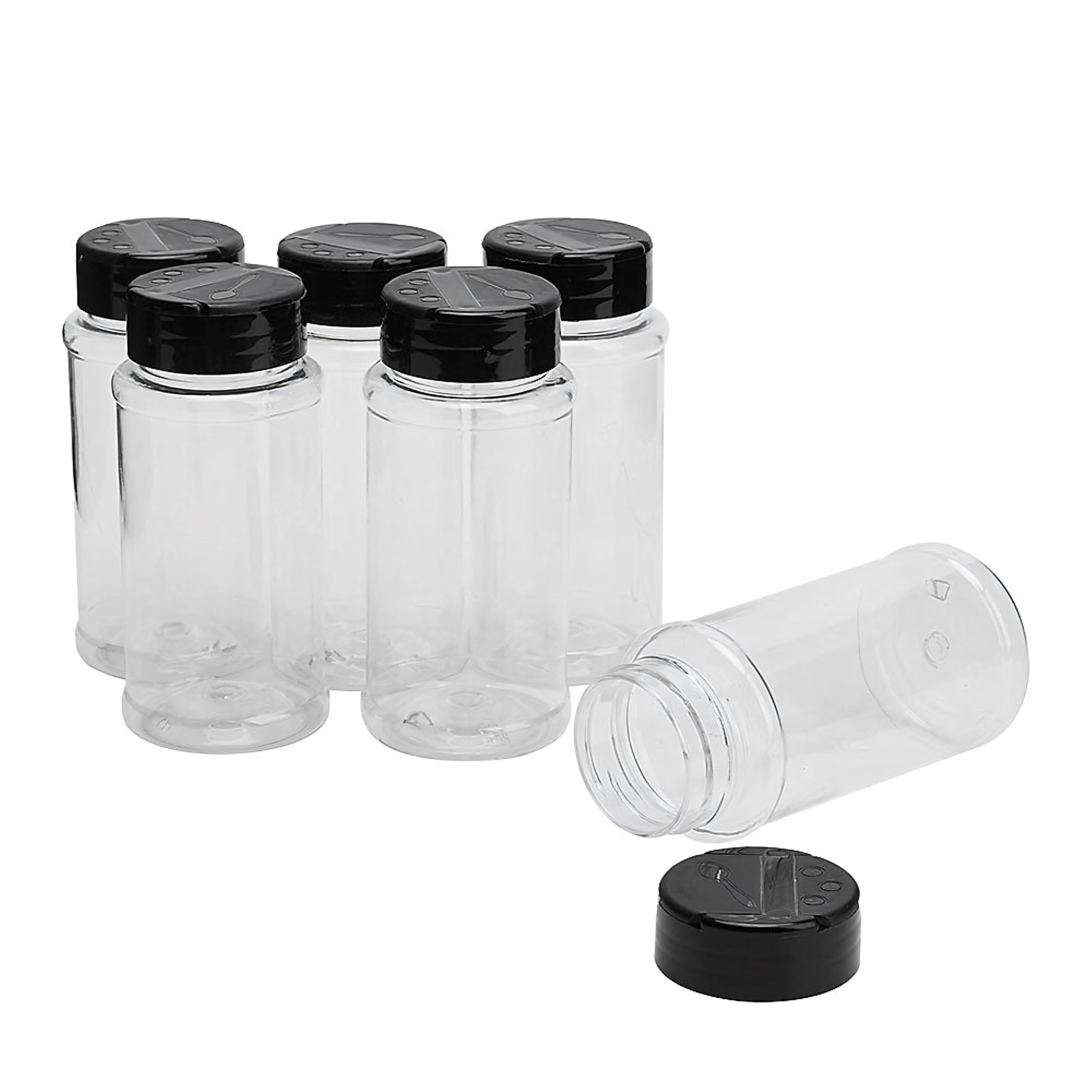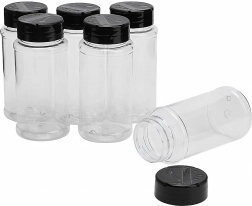 Sættet indeholder seks ens beholdere til krydderier. De gennemsigtige sider gør det nemt at se indholdet, og lågene bevarer friskheden.