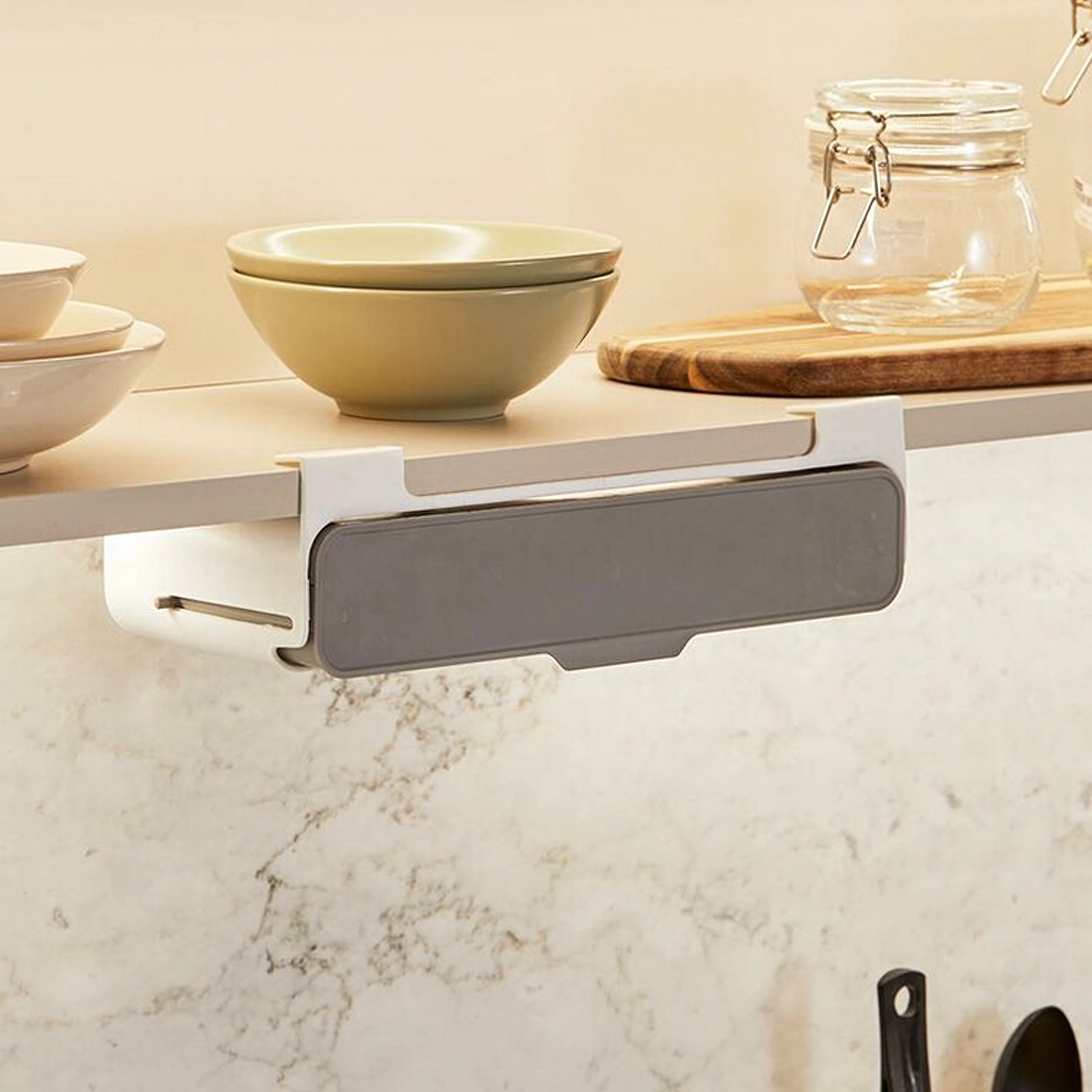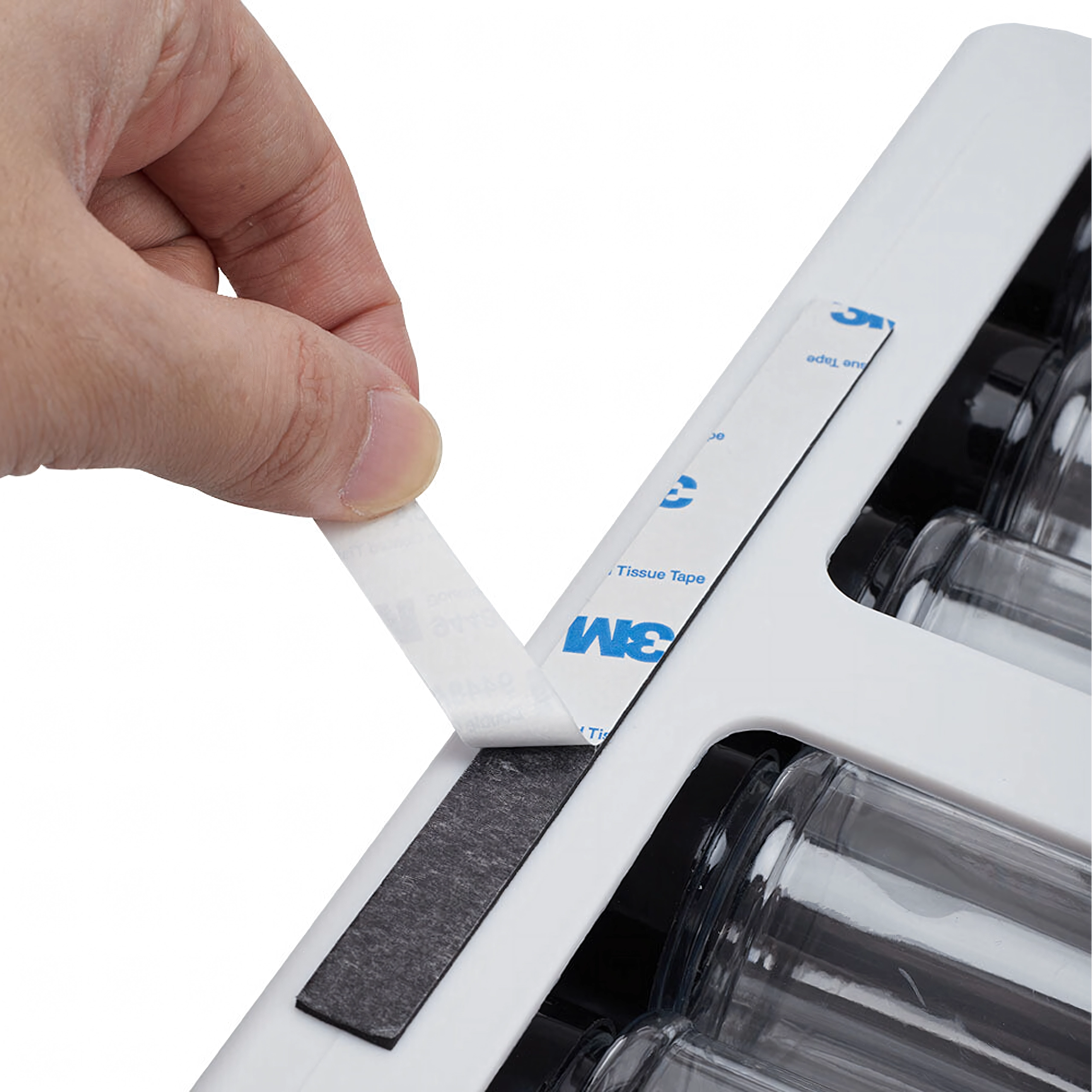Den stærke 3M selvklæbende tape holder organisatoren sikkert under en hylde eller i et skab. Installationen tager få minutter og kræver hverken værktøj eller boring.