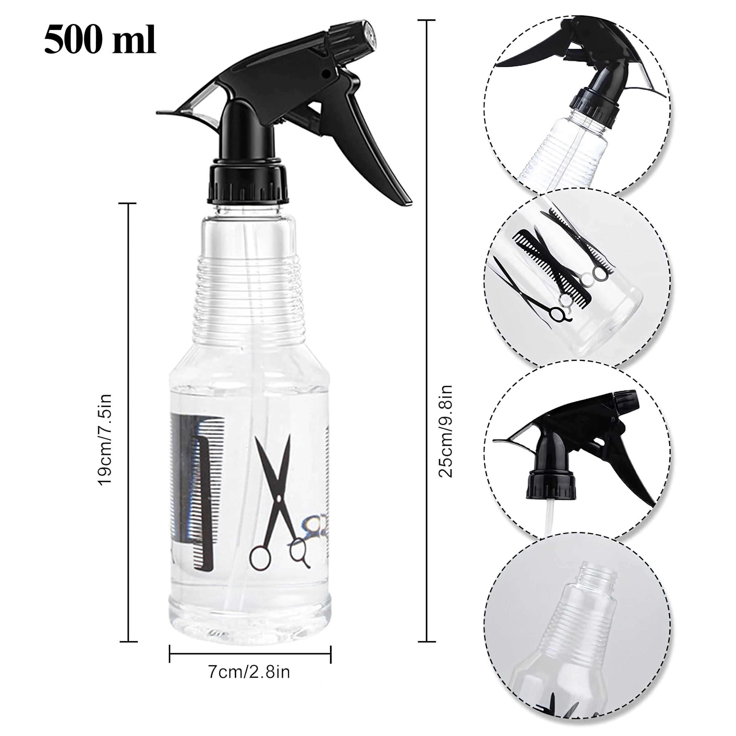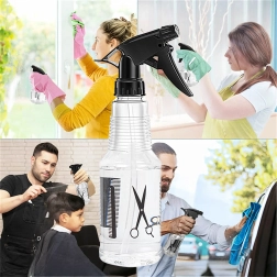 Let og holdbar forstøver med 500 ml volumen er en fremragende hjælper til daglig brug i salon, have og hjem. Det gennemsigtige korpus med niveaumarkeringer gør det let at kontrollere påfyldning, mens det ergonomiske håndtag og aftrækkeren giver behagelig og jævn forstøvning.