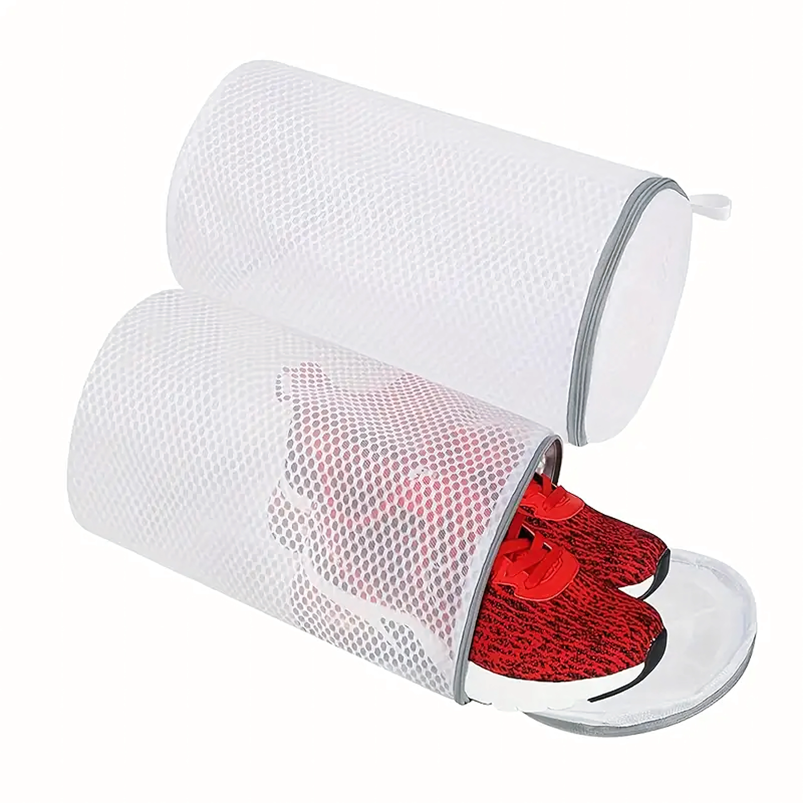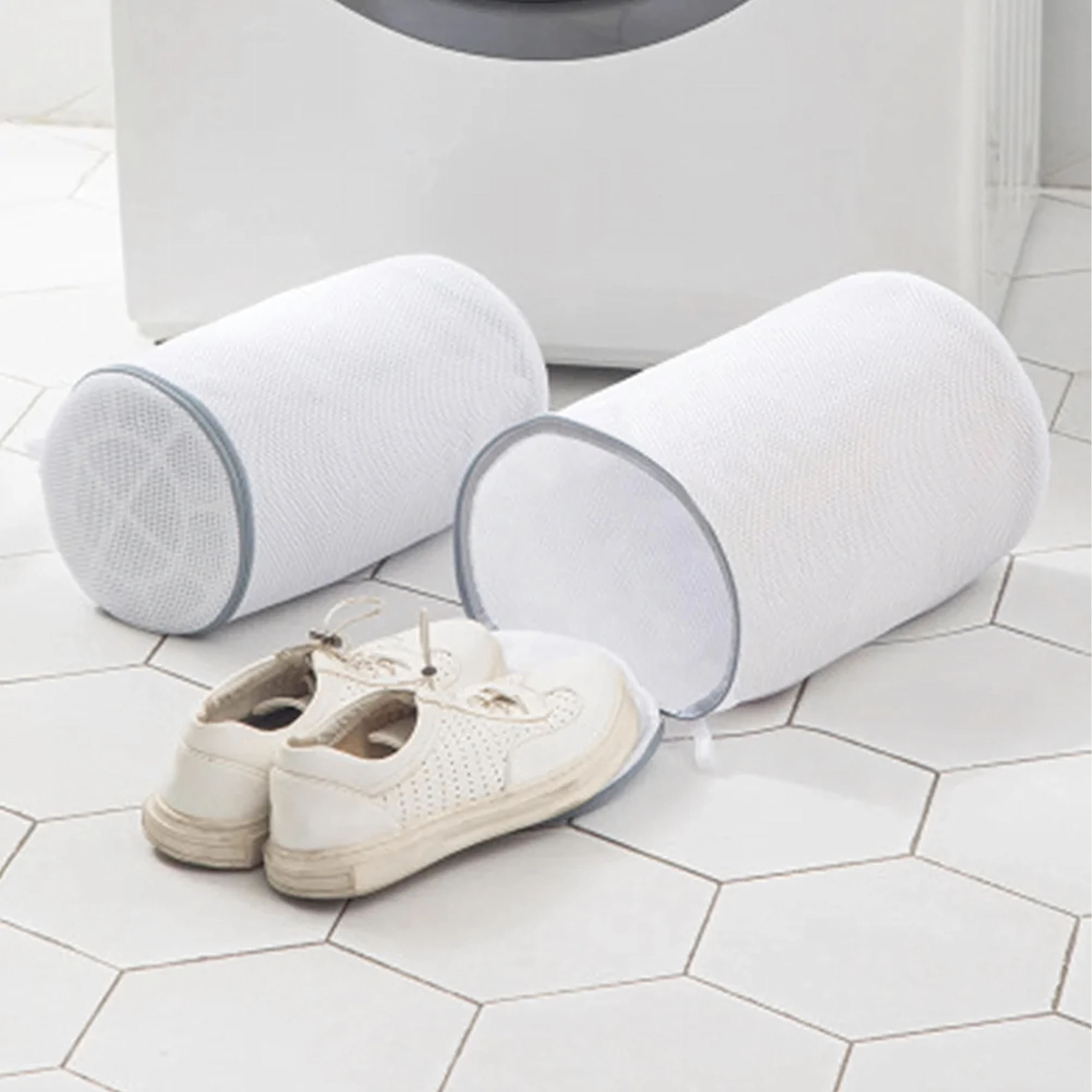 Den cylindriske form og det fine net beskytter sko mod slid og vaskemaskinen mod stød fra sålerne. Velegnet til både sports- og fritidssko.
