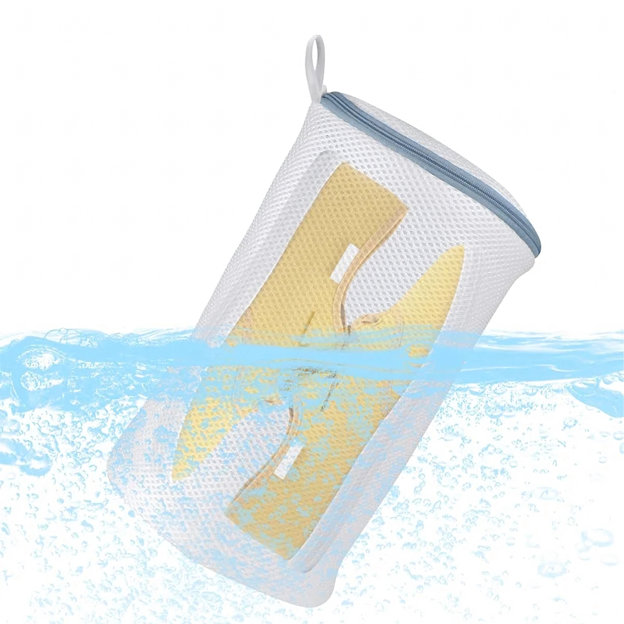 Det fine net lader vand og vaskemiddel trænge igennem for grundig rengøring, mens den solide lynlås holder indholdet sikkert lukket og forhindrer snørebånd i at filtre sammen.