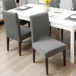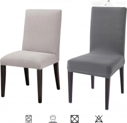Praktiske og elegante sædeovertræk, der straks frisker ældre stole op og forlænger deres levetid. Det elastiske materiale (90 % polyester, 10 % elastan) giver tæt omslutning af sædet uden krøl og uden behov for strygning. I en universal grå farve, der er let at kombinere med de fleste indretninger – fra spisestue til kontor.