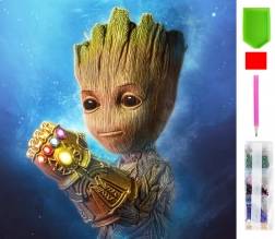 Dette komplette sæt til diamantmaling (haft diamentowy) giver dig mulighed for at skabe et glitrende mosaikbillede med motivet Groot. Fremgangsmåden er enkel: læg farvede sten (driller) efter symbolerne på det selvklæbende lærred og se, hvordan en strålende 3D-mosaik tager form for øjnene af dig. Kreativ skaben, der reducerer stress, udvikler tålmodighed og nøjagtighed og giver et virkelig imponerende resultat.