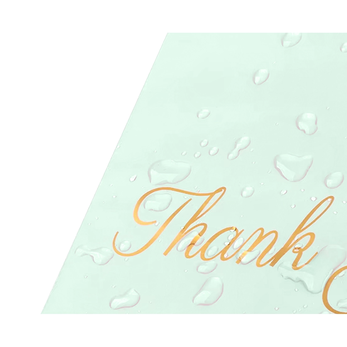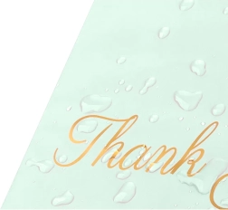 - Design i mintfarve: æstetisk emballage med teksten “Thank you!”