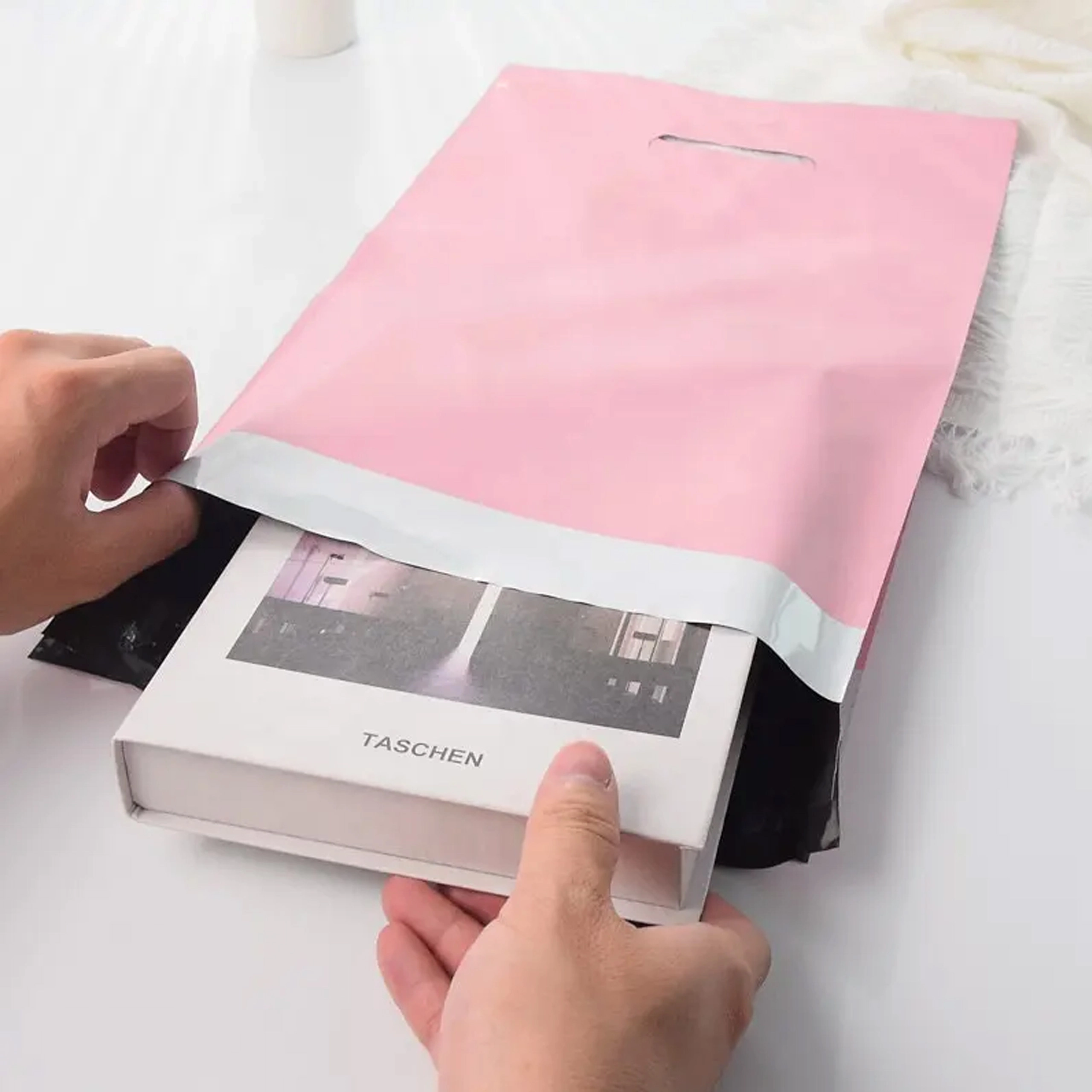 Disse rosa plastforsendelsesposer med udstanset hank kombinerer LDPE-styrke, fugtbestandighed og hurtig lukning via en selvklæbende flap. Den integrerede hank gør det nemt at bære forsendelsen for både bud og kunde.