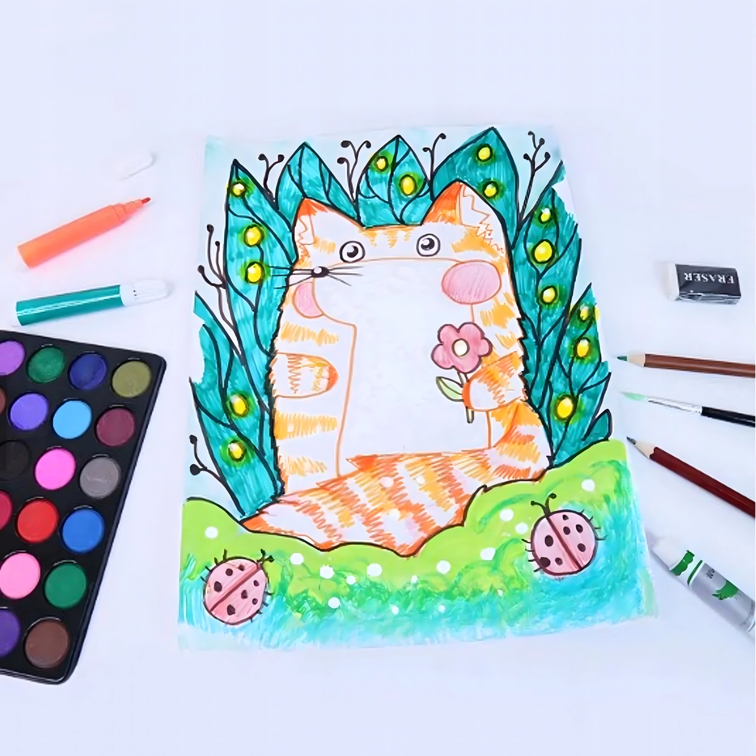 - Pensler, paletter, supplerende værktøjer til tegning og maling