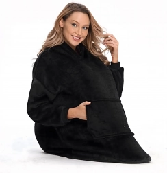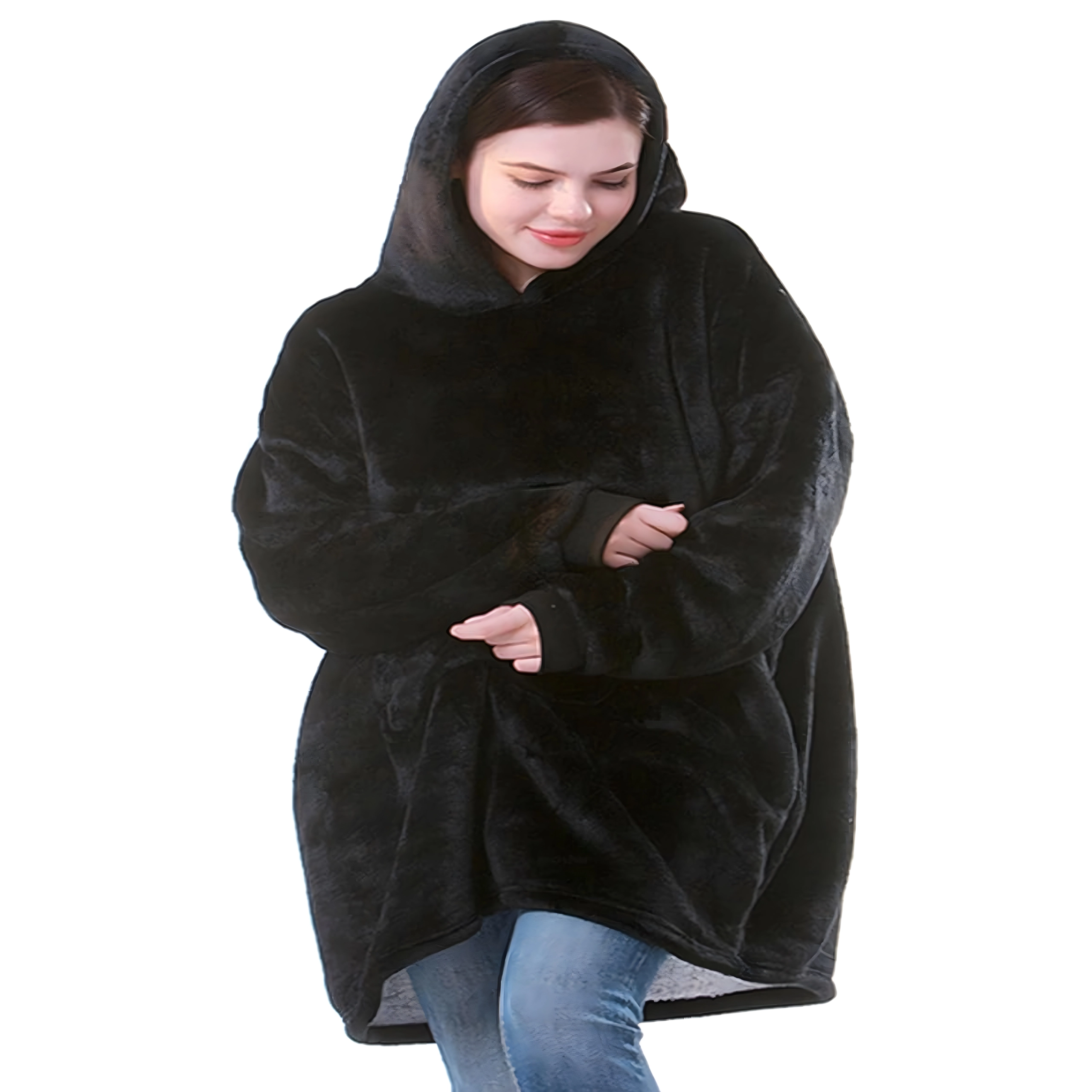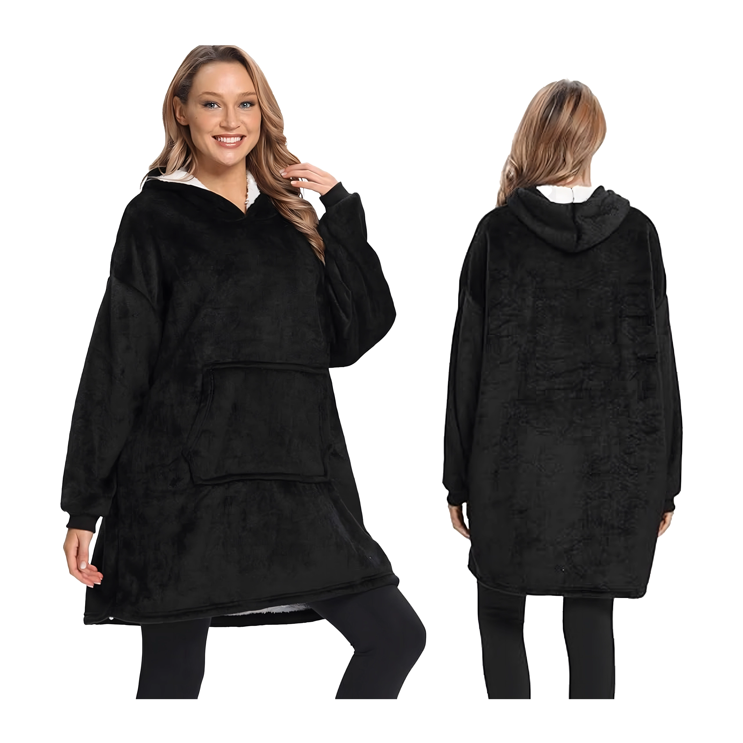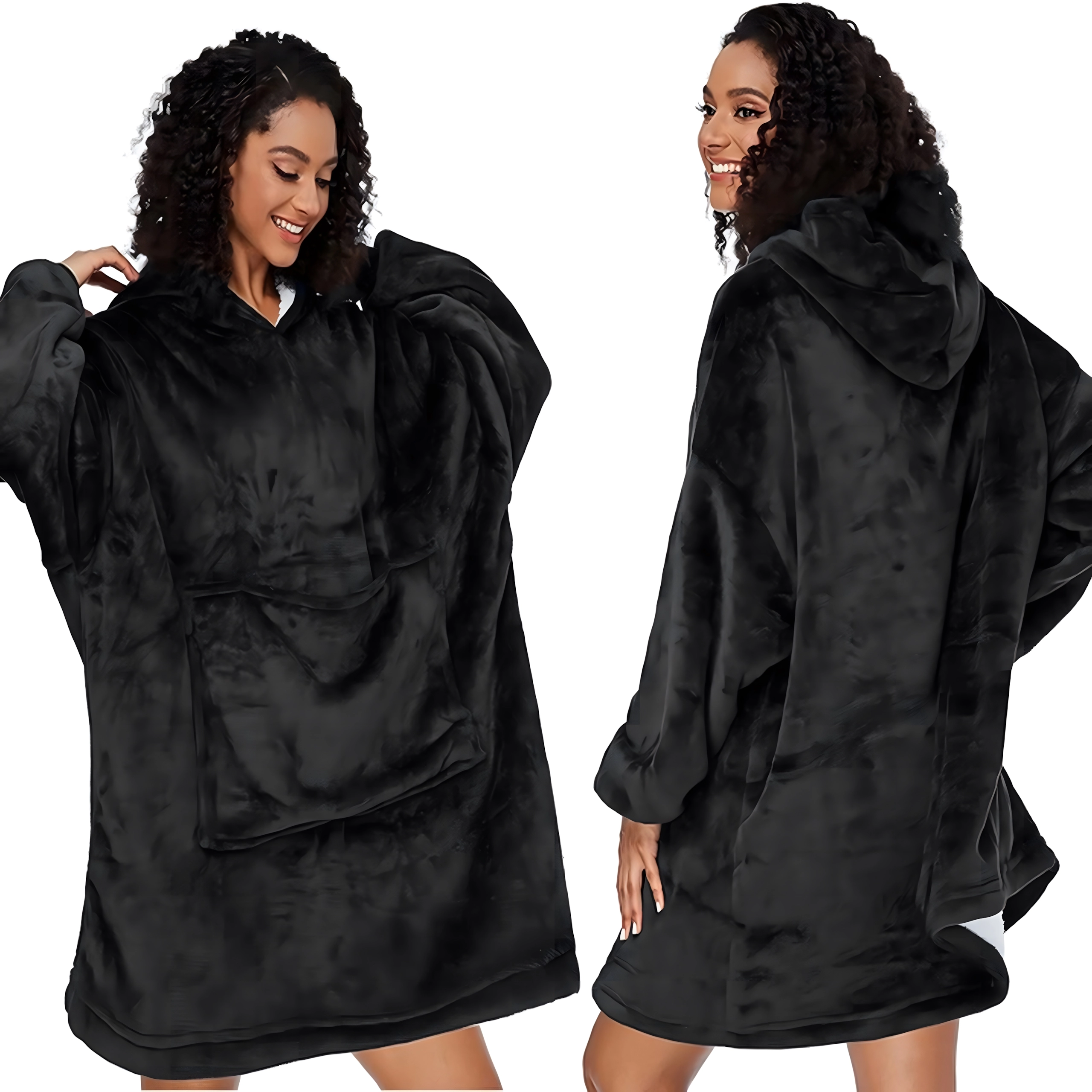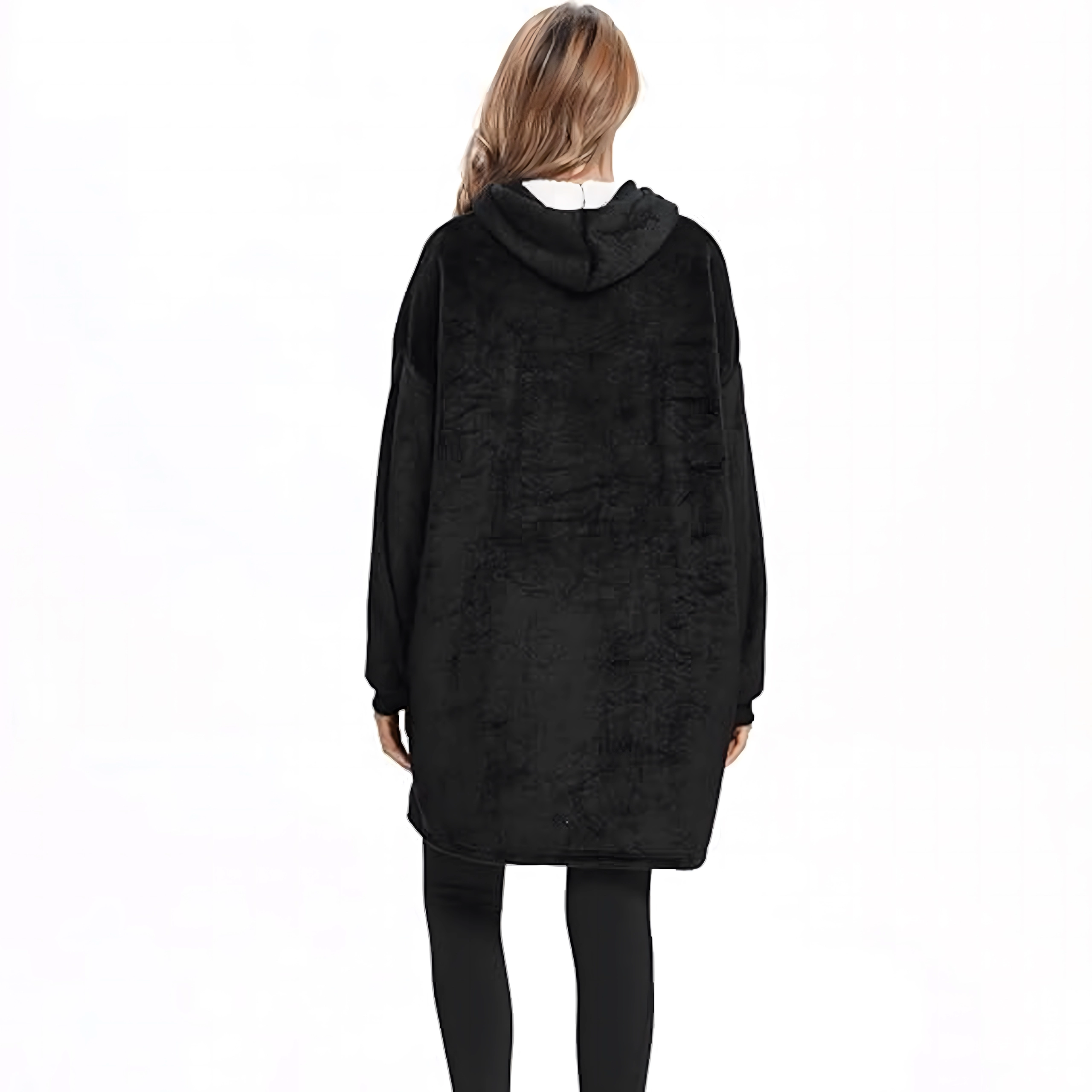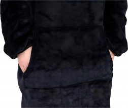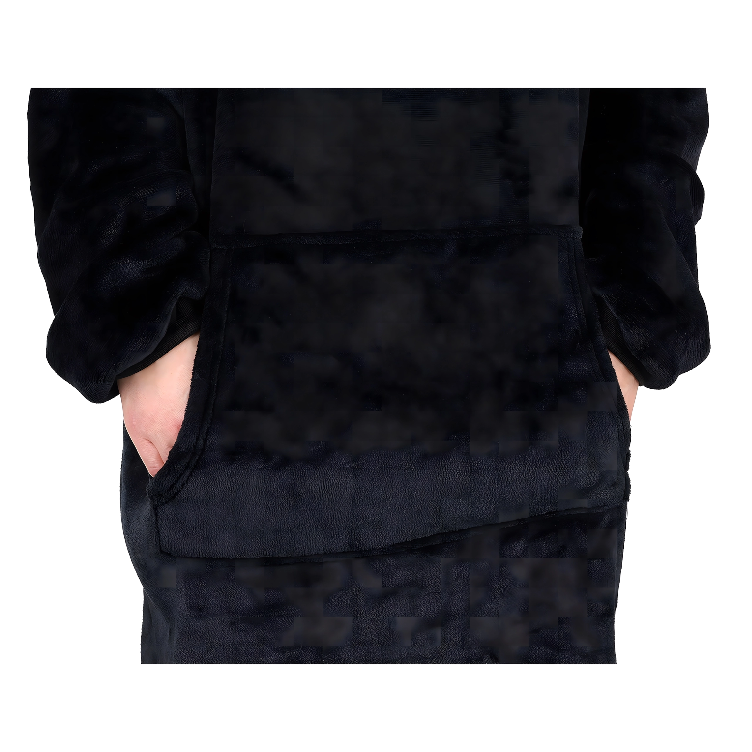 Med den rumlige hætte og den store forlomme har du alt nødvendigt lige ved hånden og et lunt hoved. Den sorte farve er tidløs og passer nemt ind i enhver indretning. Ideel til sofatid, læsning og lange filmmaratoner.