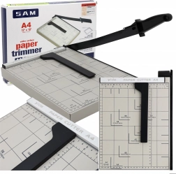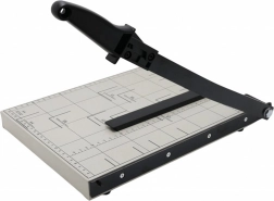 Denne holdbare guillotine giver sikre og lige snit takket være det præcise målegitter og formatmarkeringer (A4, A5, B5 osv.). Den robuste metalkonstruktion og armen med komfortabelt greb sikrer jævn betjening og ensartede resultater ved beskæring af dokumenter, fotos og præsentationsmaterialer.