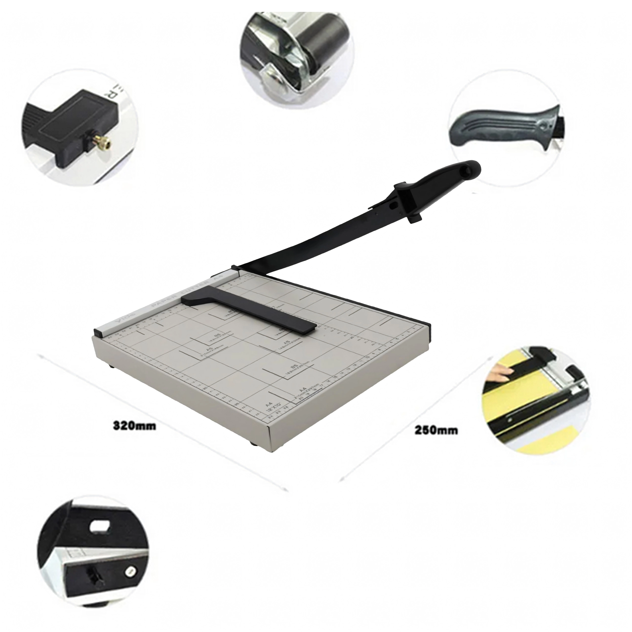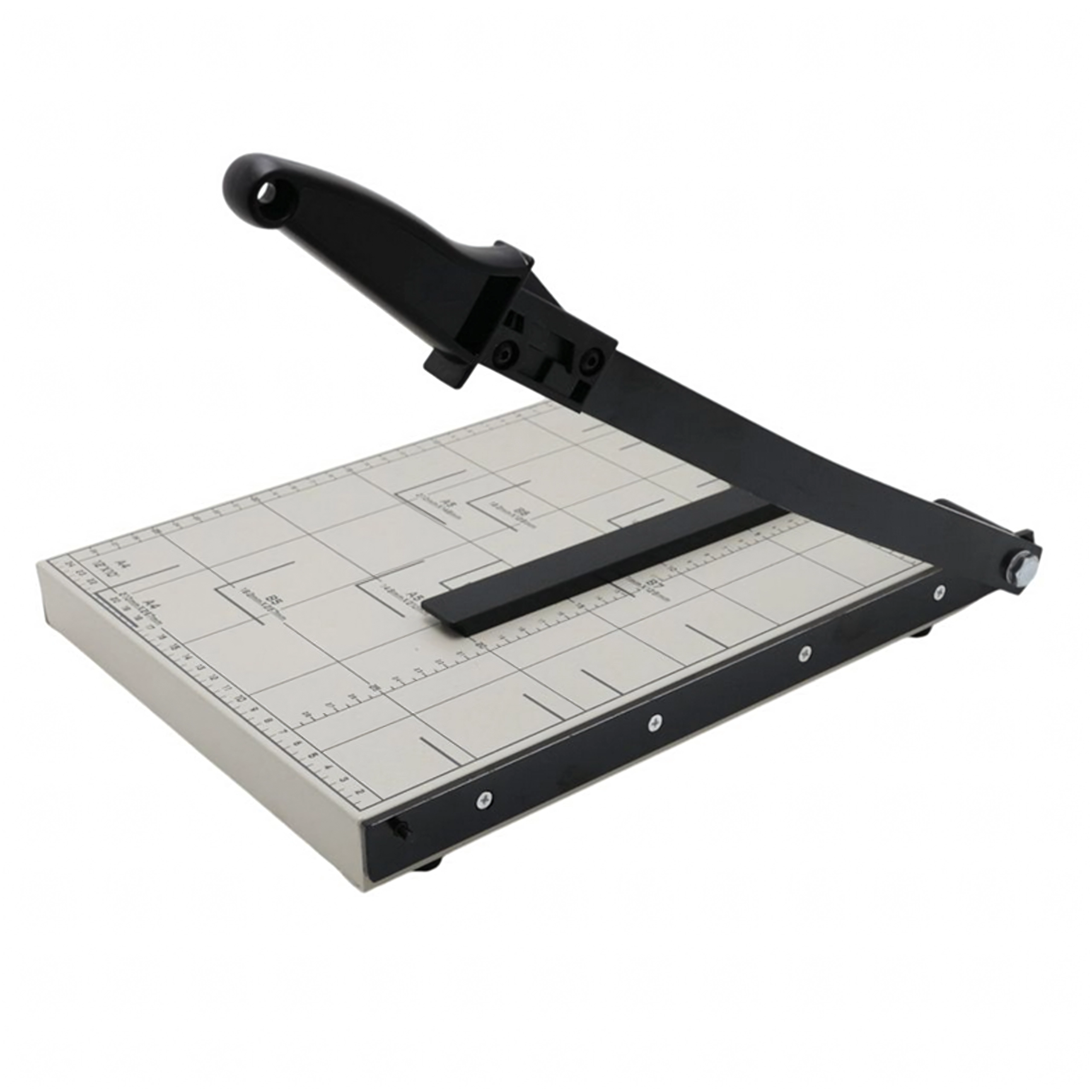 Skridsikre fødder og tværstøtte holder papiret fast, mens skæret i rustfrit stål giver lang levetid og rene snit uden flossede kanter. En fremragende løsning, når du har brug for at klippe flere ark ad gangen med fokus på præcision.