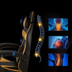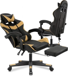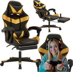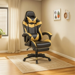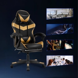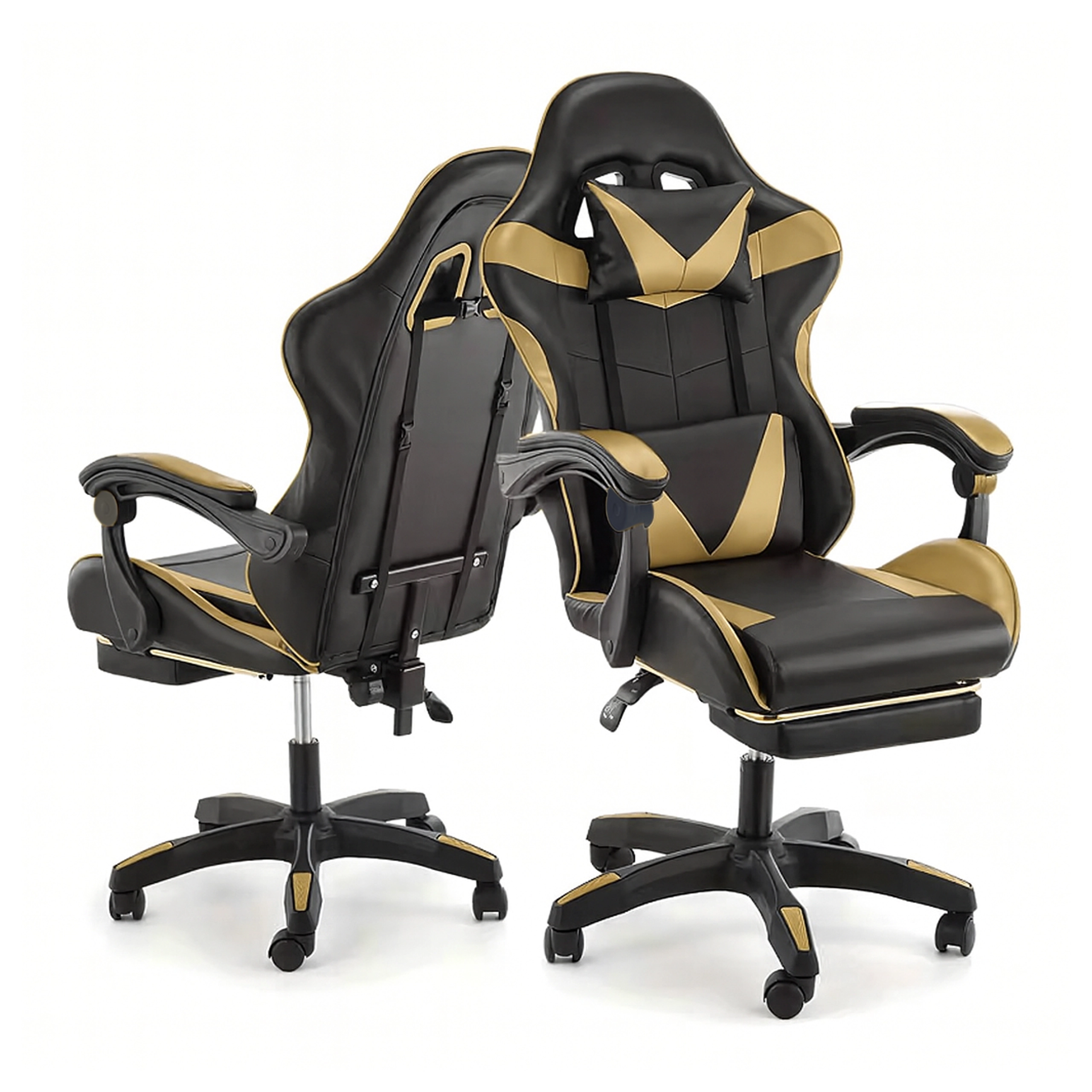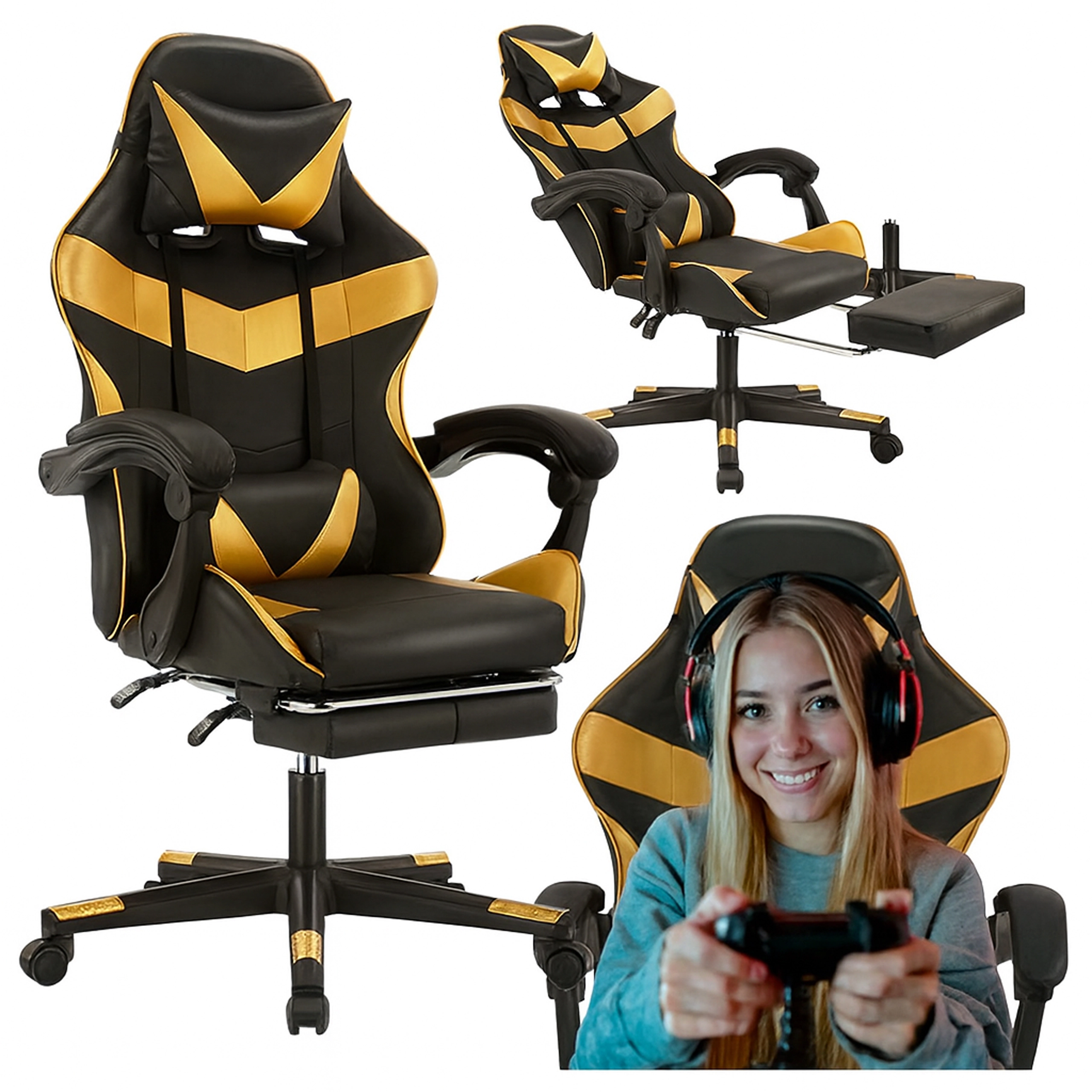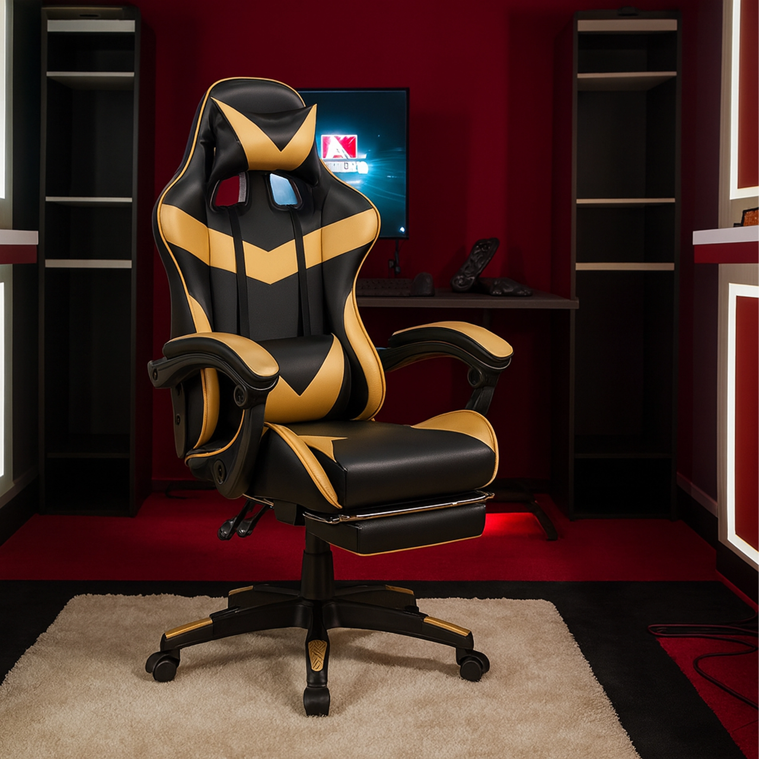 Gamingstolen med udtrækkelig fodstøtte er designet til lange perioder uden træthed. Det høje ryglæn med sideføring, den behagelige polstring og den glidende tiltjustering gør det let at skifte fra fokuseret arbejde til afslapning. Takket være den drejelige base og rullehjul kan du nemt flytte dig mellem skærm, skrivebord og opbevaring.