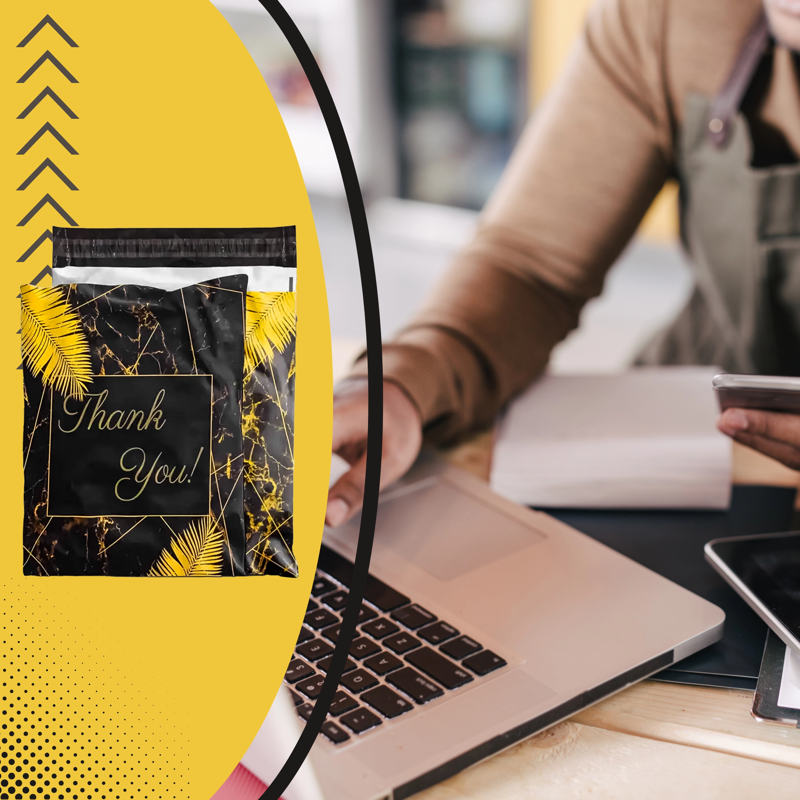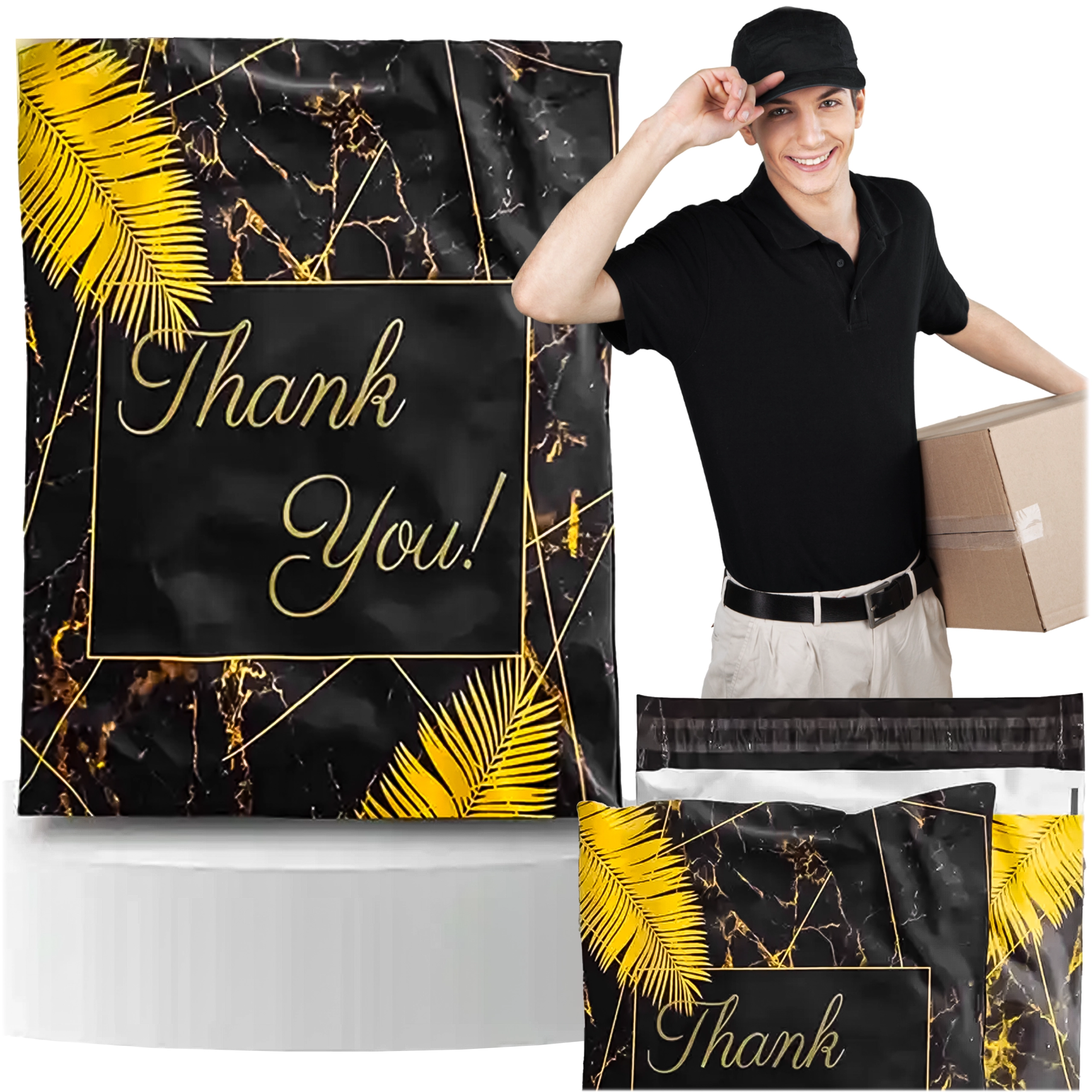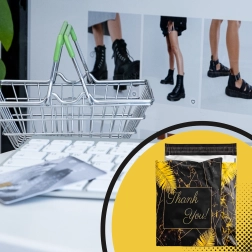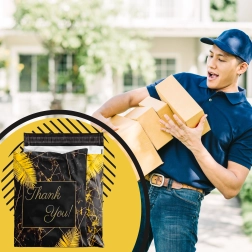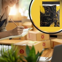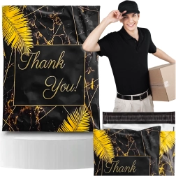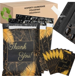 Leder du efter pålidelig emballage til webshop eller regelmæssige forsendelser? Disse robuste foliepostkuverter i størrelsen 255 × 370 mm er perfekte til små og mellemstore emner. Den sorte overflade med den diskrete tekst Thank You virker professionel og styrker det gode indtryk ved levering.