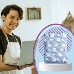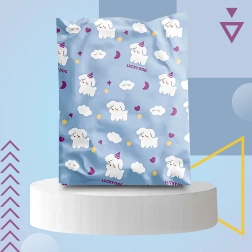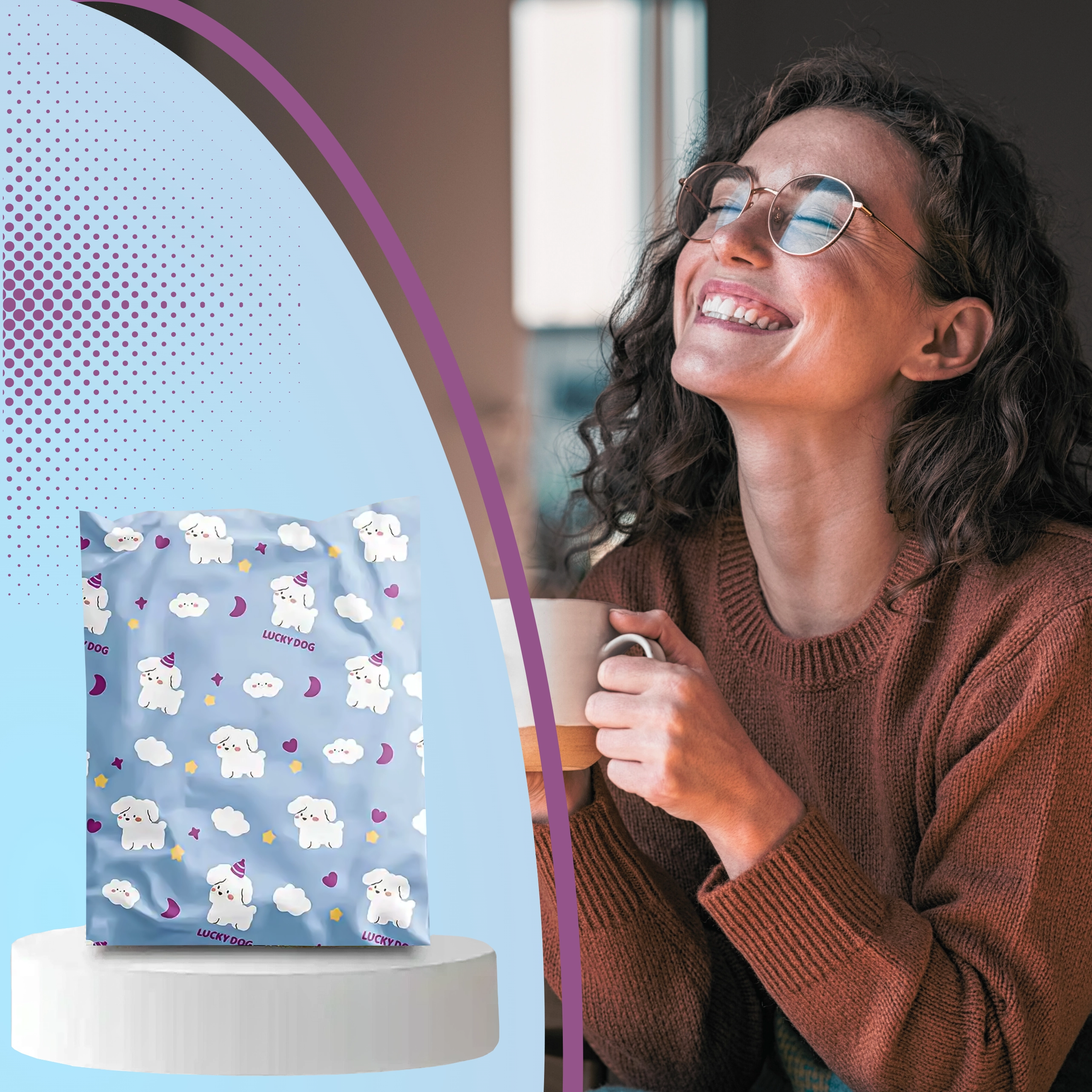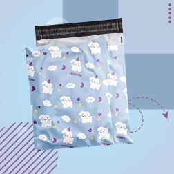 Det legende blå motiv med hunde og skyer giver pakkerne personlighed og styrker dit brands image.