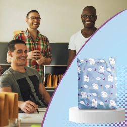 - Stilfuldt design: blåt print med hunde og skyer vækker kundernes opmærksomhed.