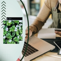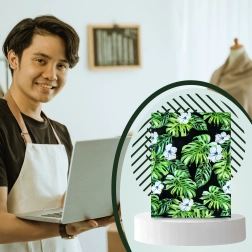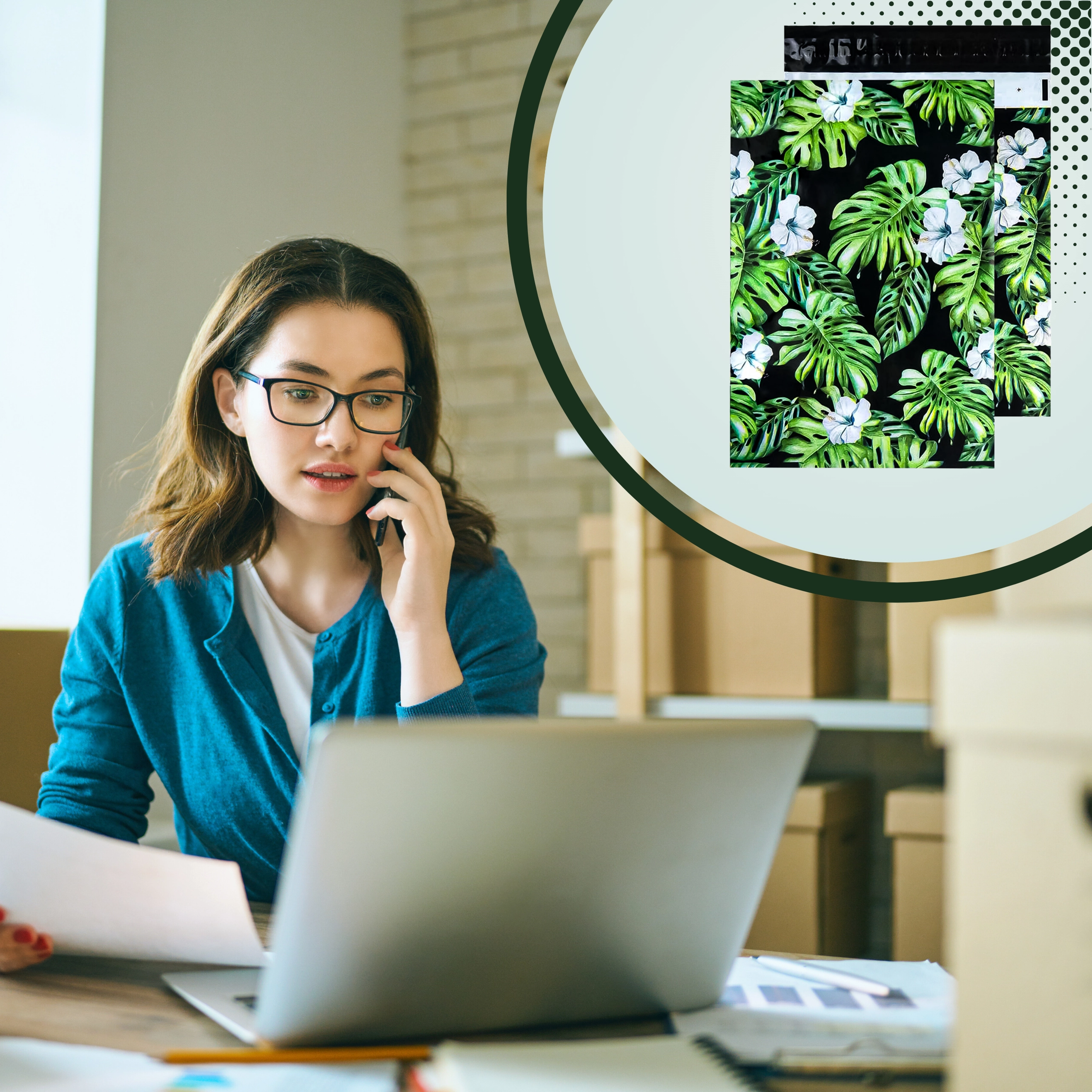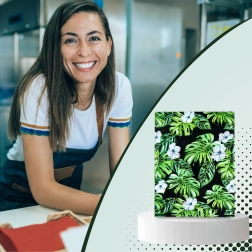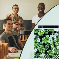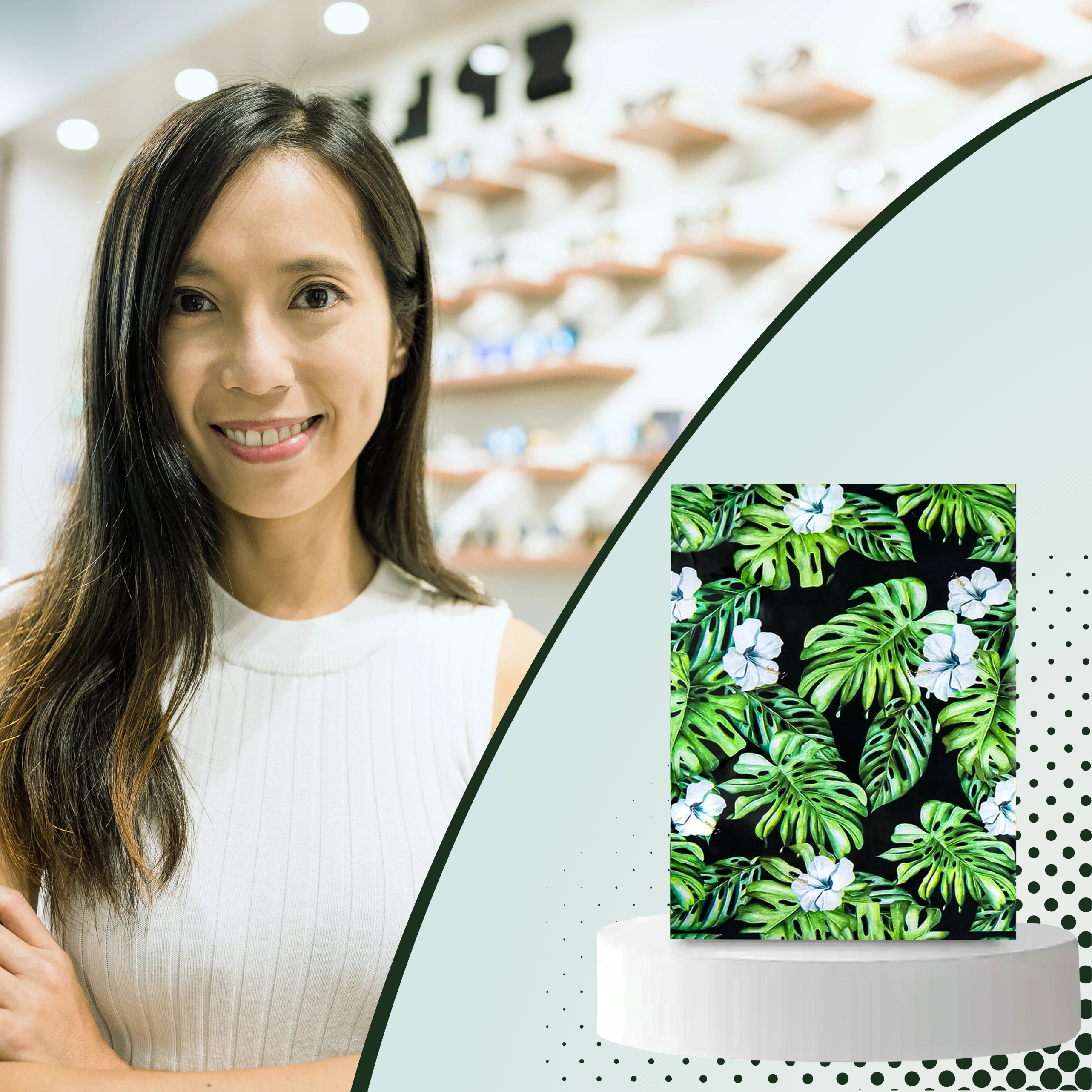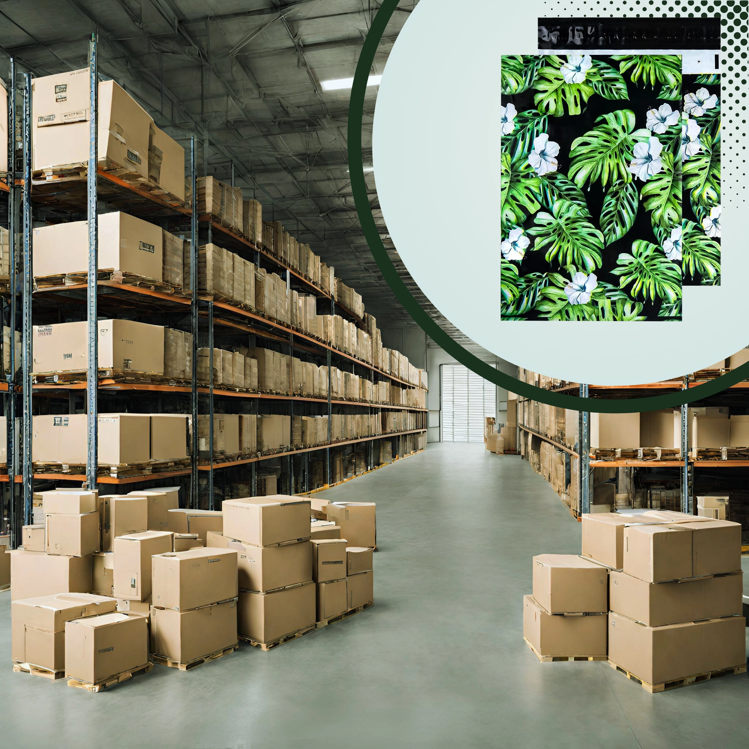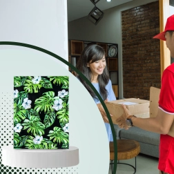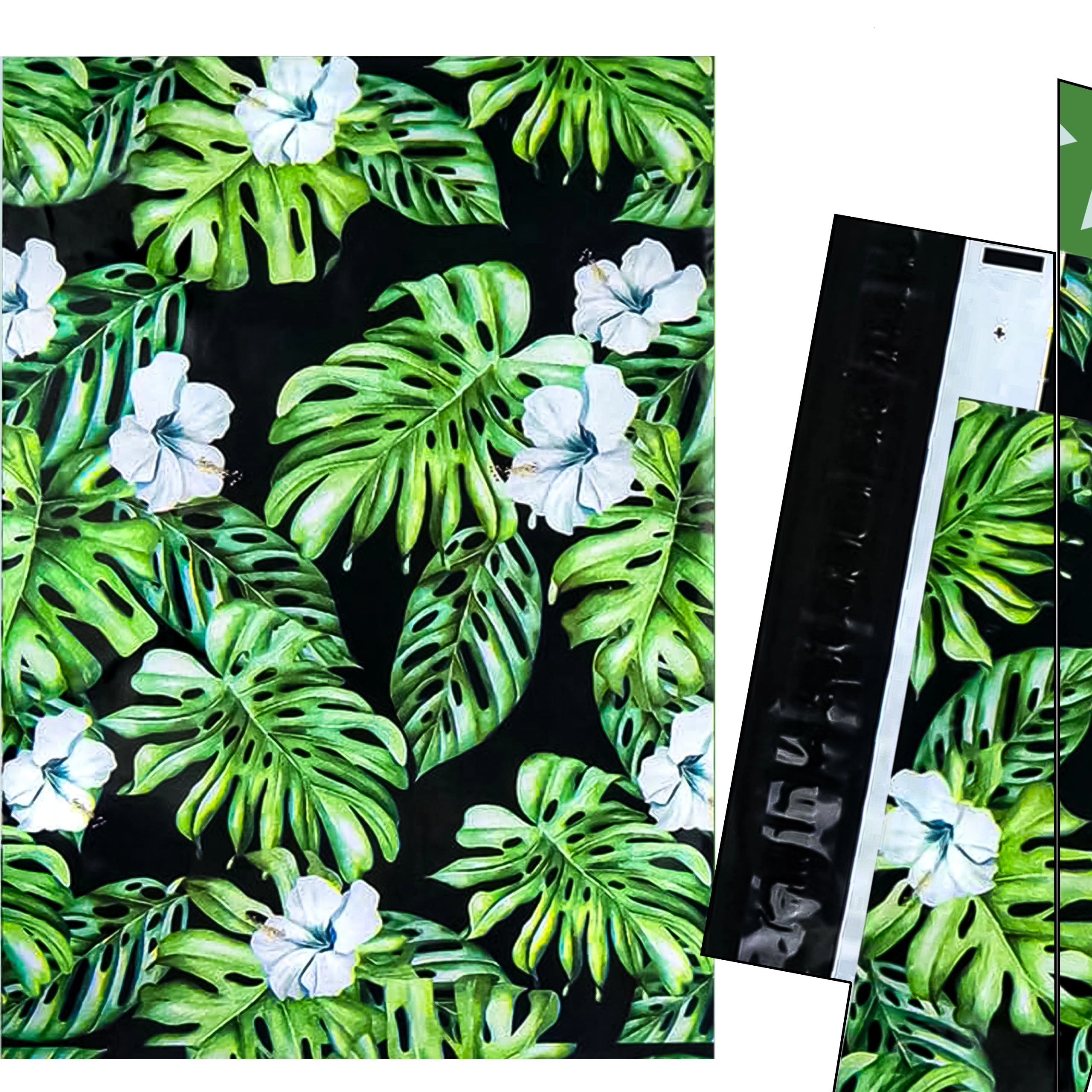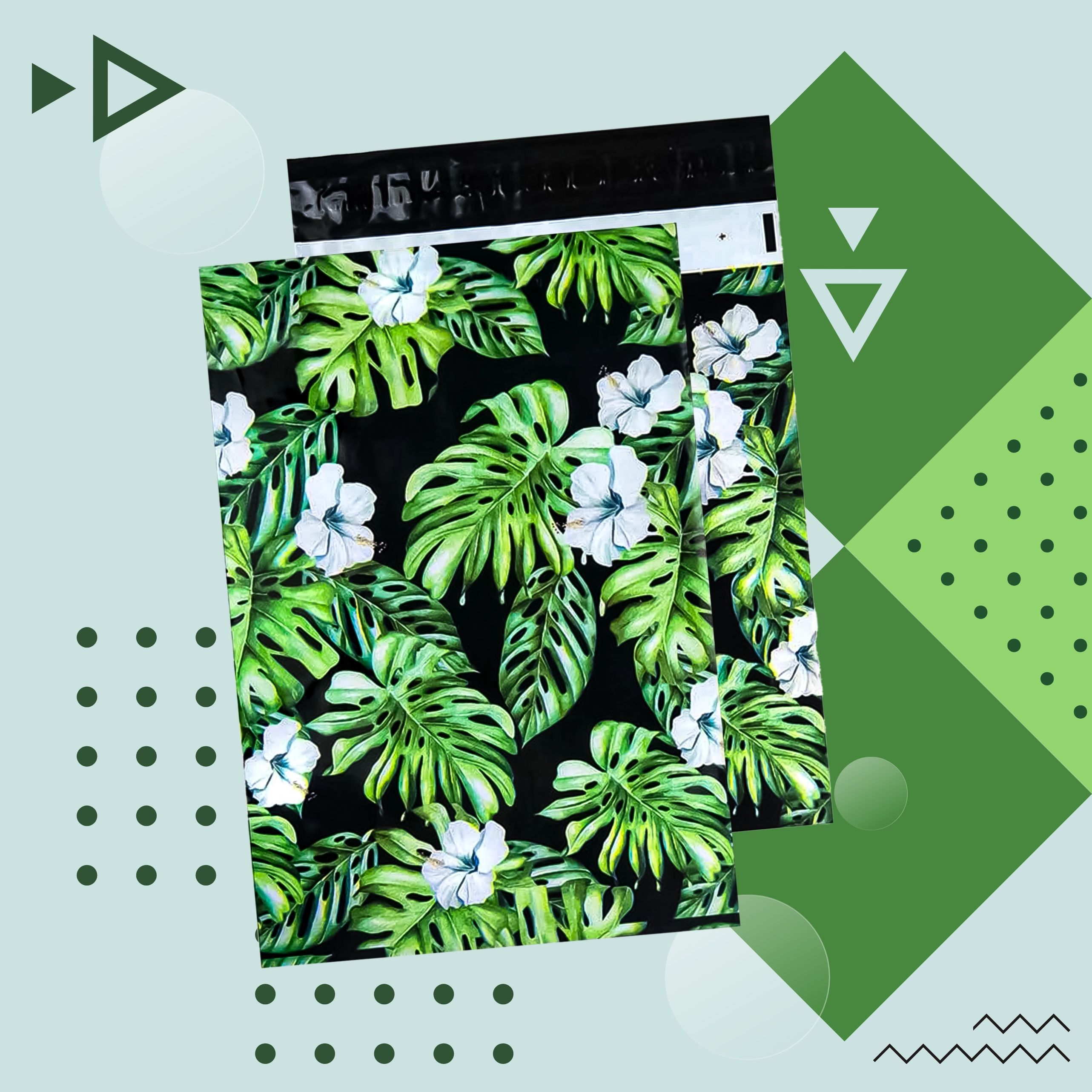 Print med blade og blomster på mørk baggrund giver dine forsendelser et markant look og styrker brandet ved levering.