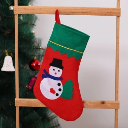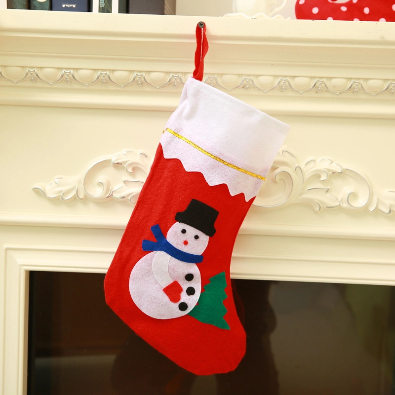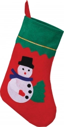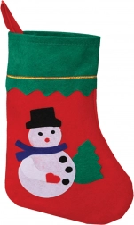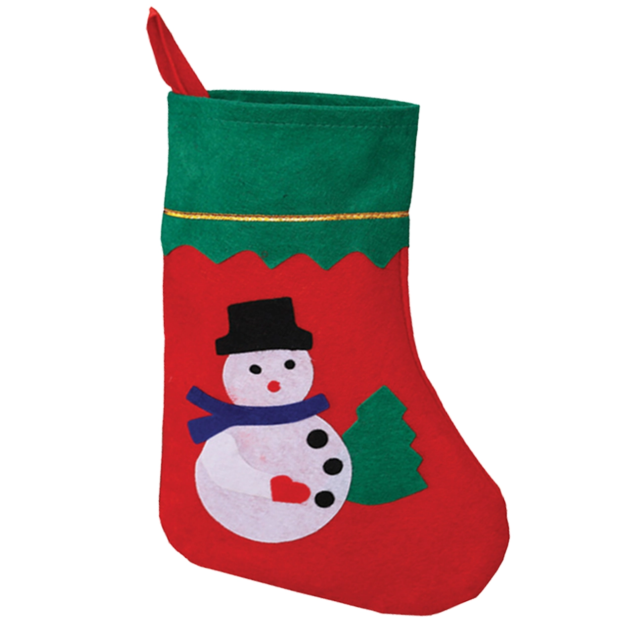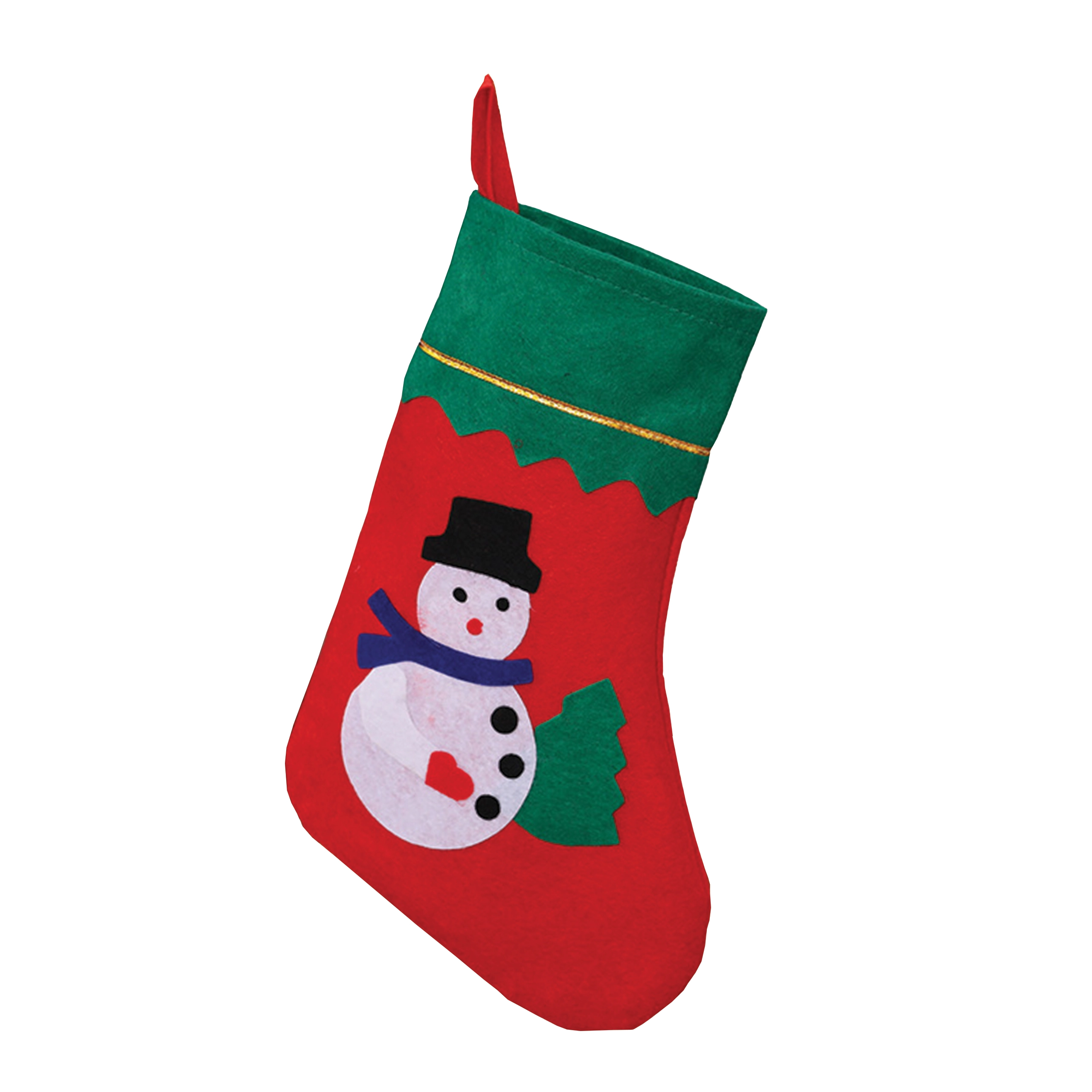 Den glade applikation af en snemand med detaljer giver strømpen personlighed og fremhæver julestemningen ved pejsen eller træet.
