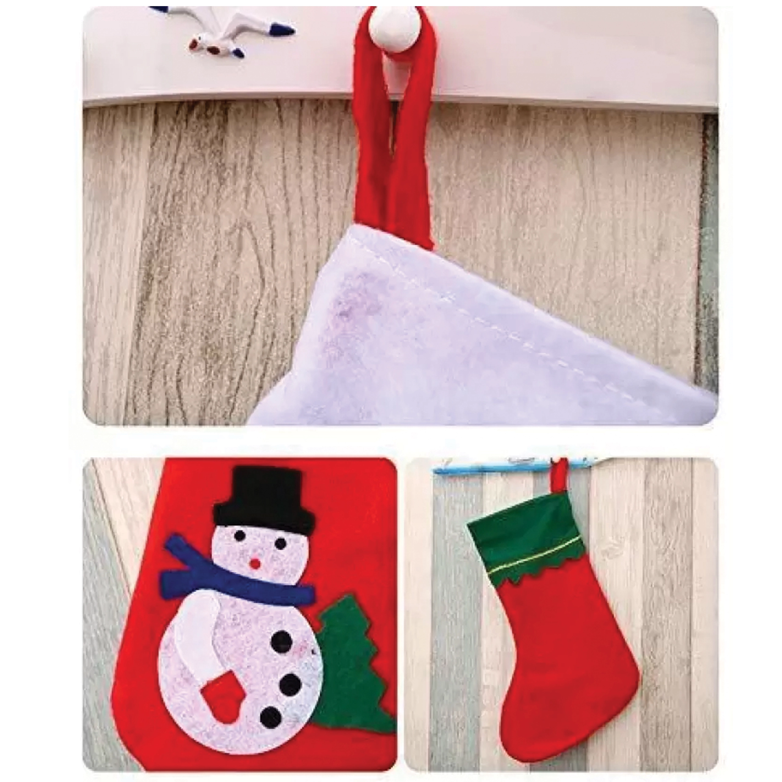 Et praktisk og stilfuldt sæt julestrømper, der kombinerer dekorativt udseende med funktionalitet. Strømperne i rød med kontrastmanchet og snemandmotiv giver interiøret julens magi og tilbyder plads til små overraskelser for både børn og voksne.