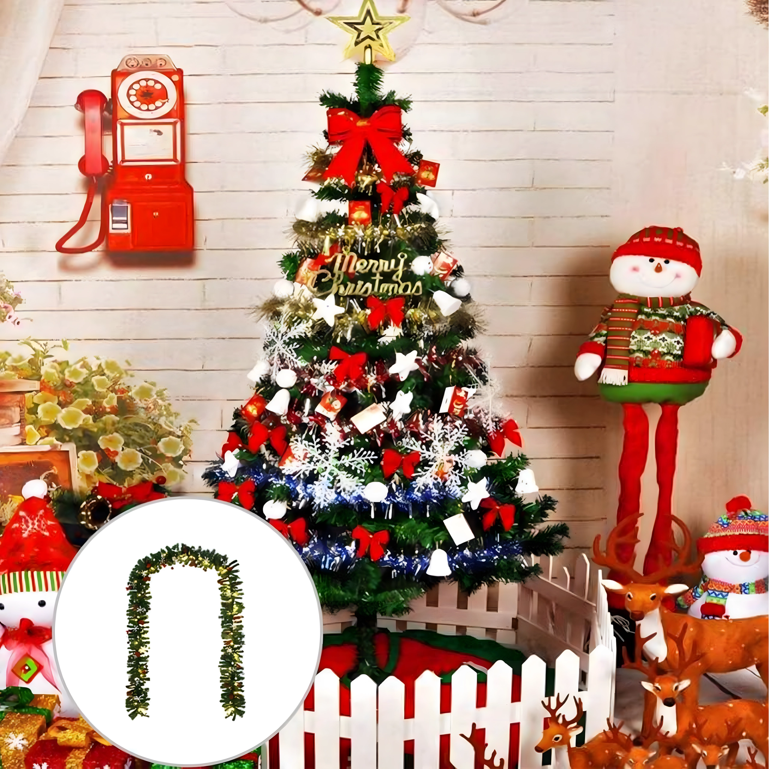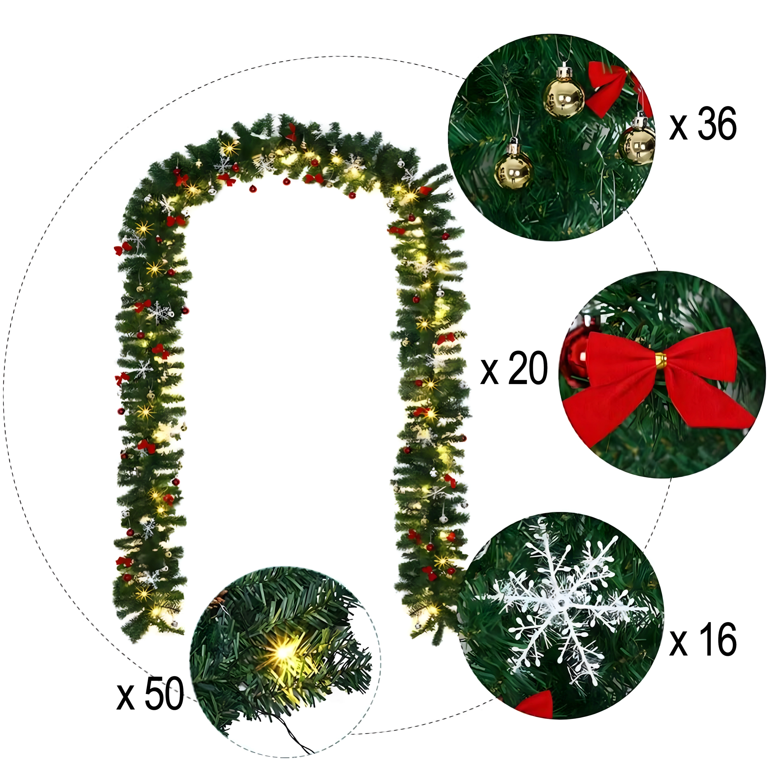 Takket være den tætte struktur med 260 kviste virker guirlanden fyldig og naturtro, samtidig med at den er fleksibel og let at forme omkring gelændre samt vindues- og dørkarme. Længden på 2,7 m muliggør alsidig brug i interiør og overdækkede udendørsområder.