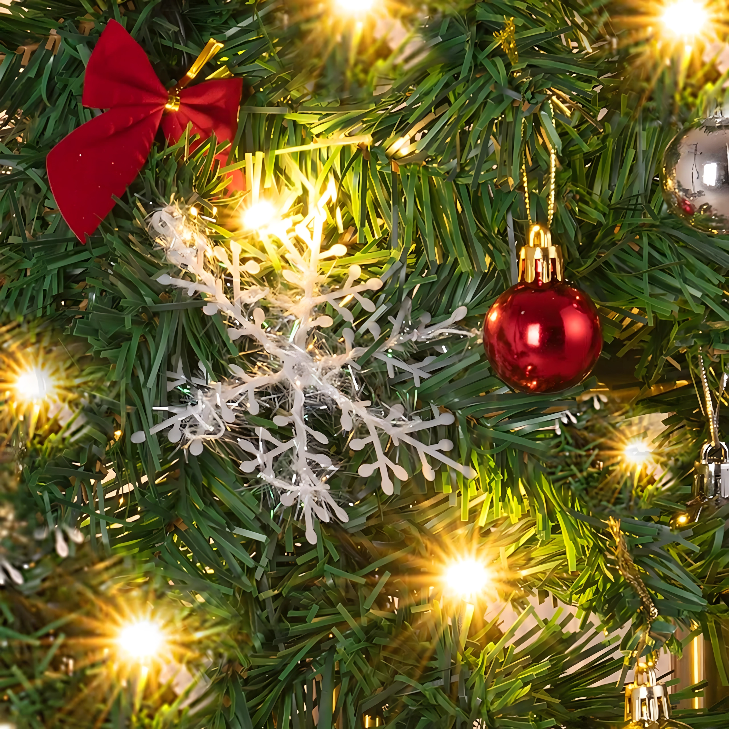 Hele 260 kviste med pynt – kugler, sløjfer og snefnug – for et fyldigt og repræsentativt udtryk uden behov for ekstra tilbehør.