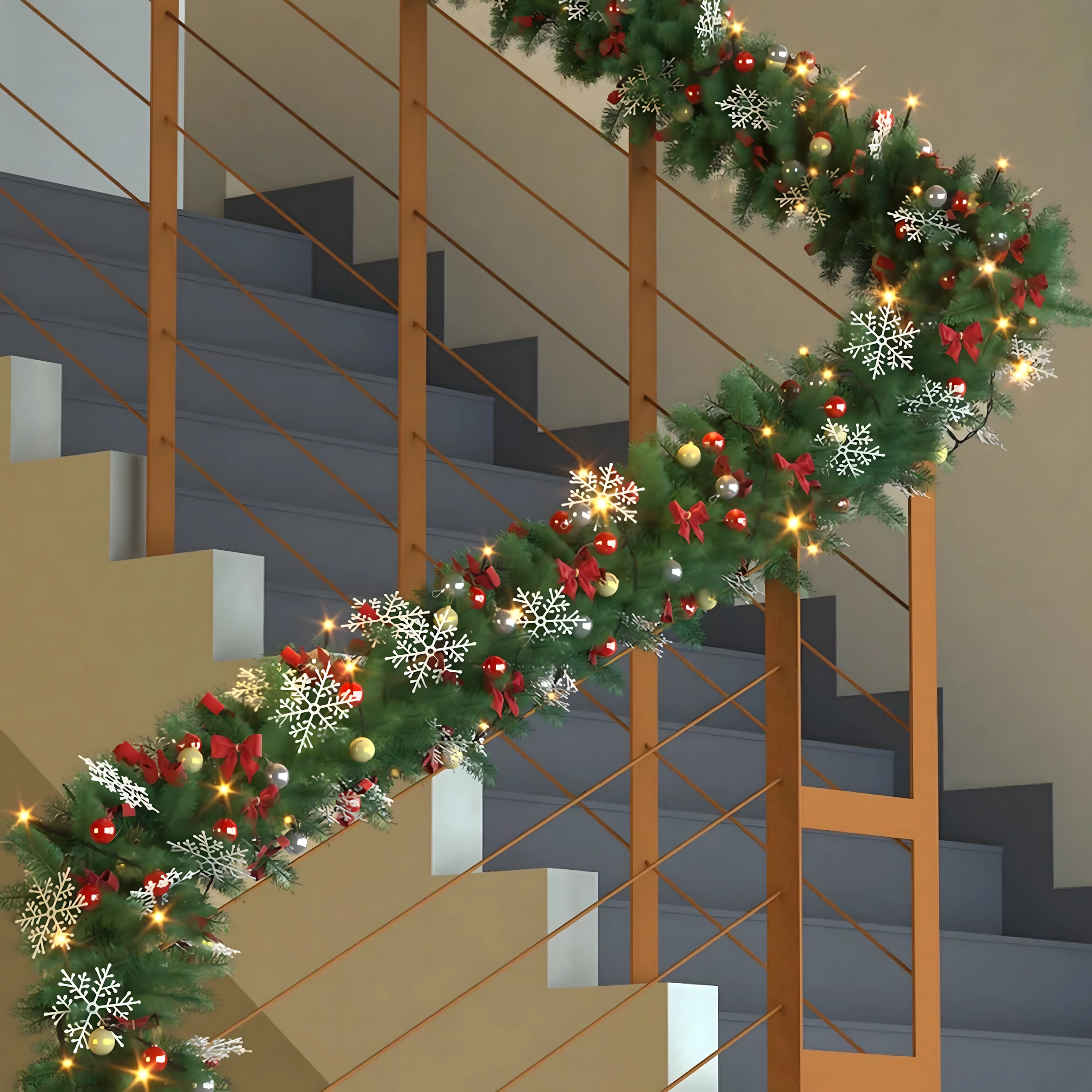 Den fleksible konstruktion gør det let at vikle den om trappegelændre, pejse eller dørkarme for hurtig montering.