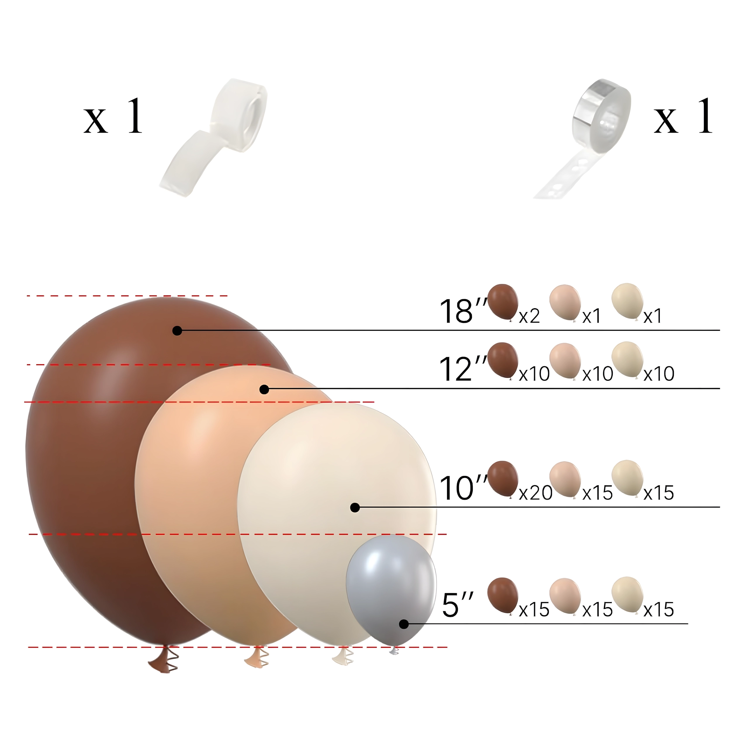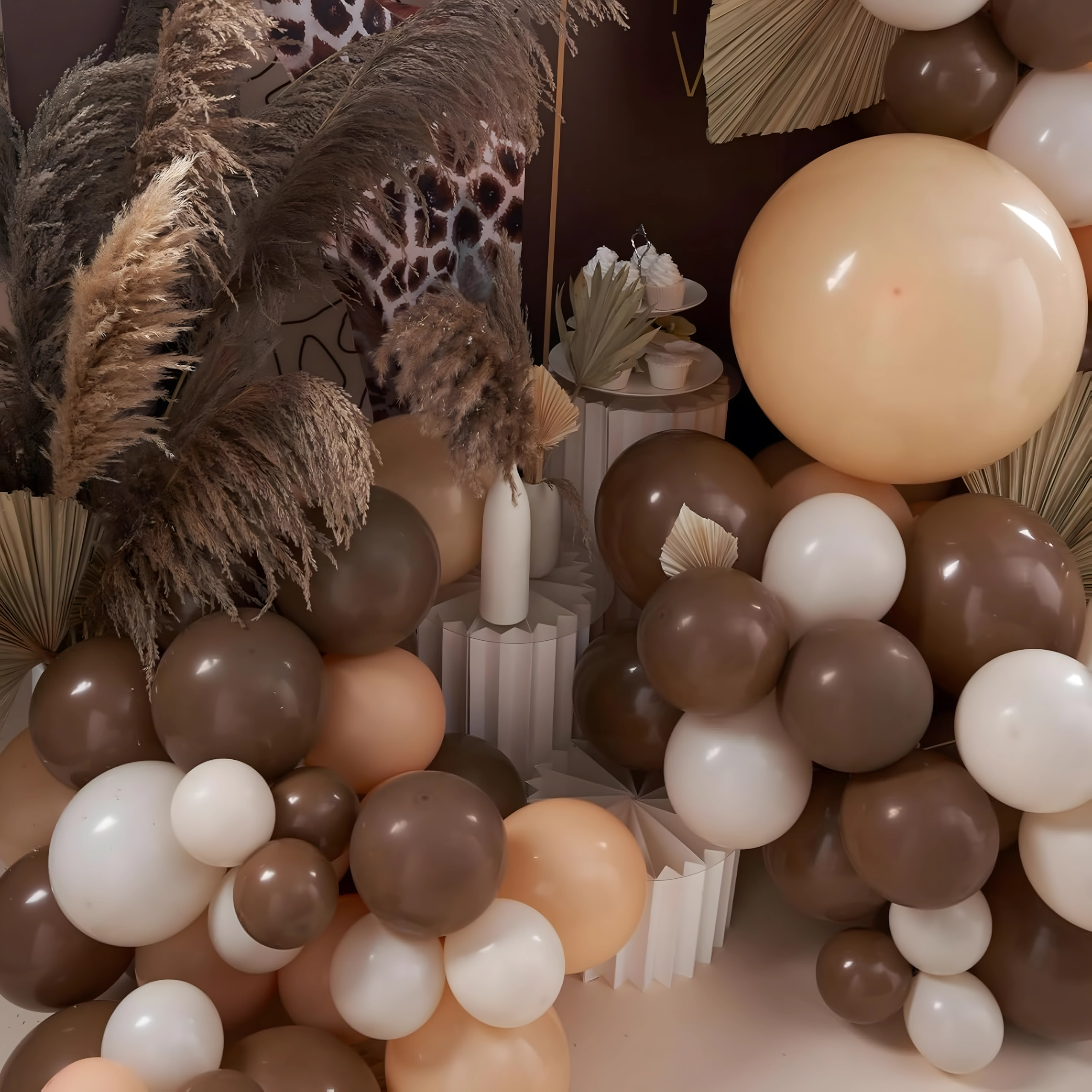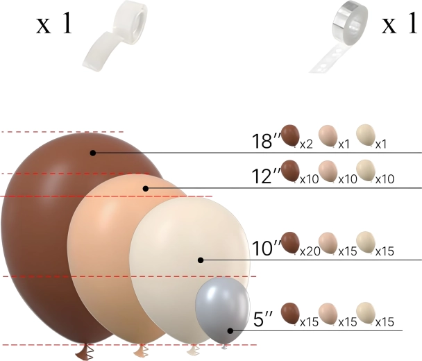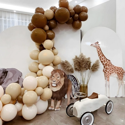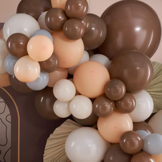 Giv din fejring en elegant atmosfære med en ballonguirlande i trendy gyldenbrune toner. Sættet er designet til hurtig og enkel installation, så du på få minutter kan forberede en imponerende udsmykning uden særlige færdigheder.