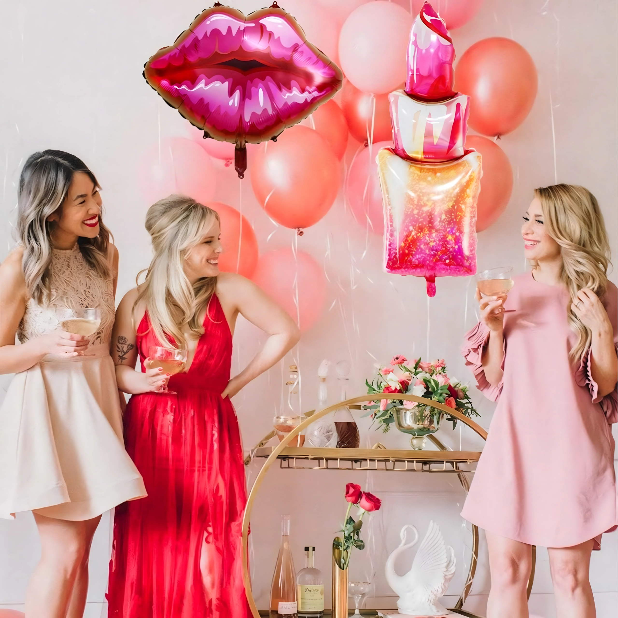 Skab en uforglemmelig atmosfære med et elegant sæt balloner til pigefester. Kombinationen af motiverne læbestift, læber, hjerte og to balloner med teksten Happy Birthday giver udsmykningen et markant og trendy look.