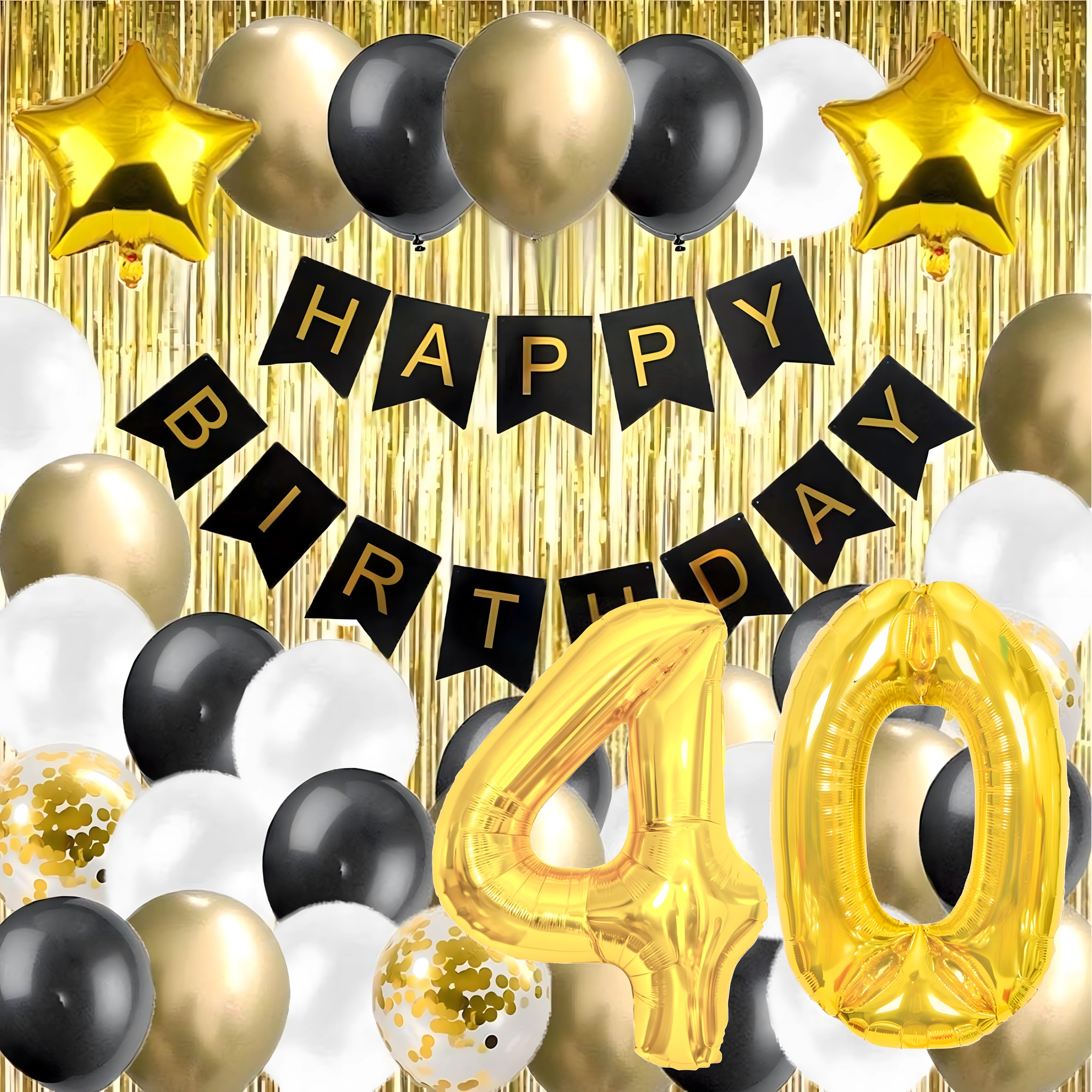 Denne komplette pakke med balloner og dekorationer til 40‑års fødselsdag i sort‑guld er et fremragende valg for alle, der vil skabe en imponerende og fotogen udsmykning. Den passer til hjemmefester såvel som til virksomheder, og takket være det store antal dele dækker den let udsmykningen af hele rummet eller et markant fotobaggrund.