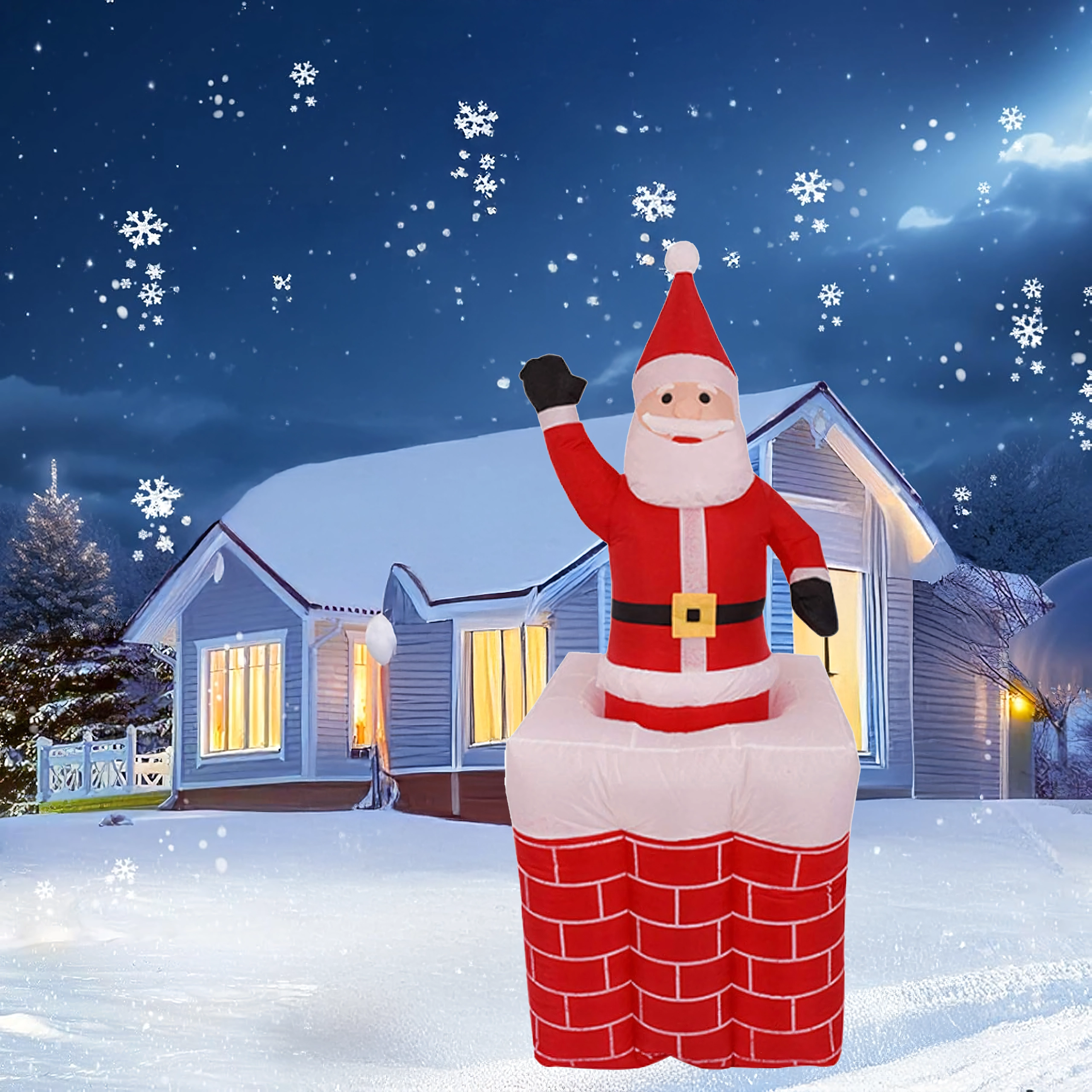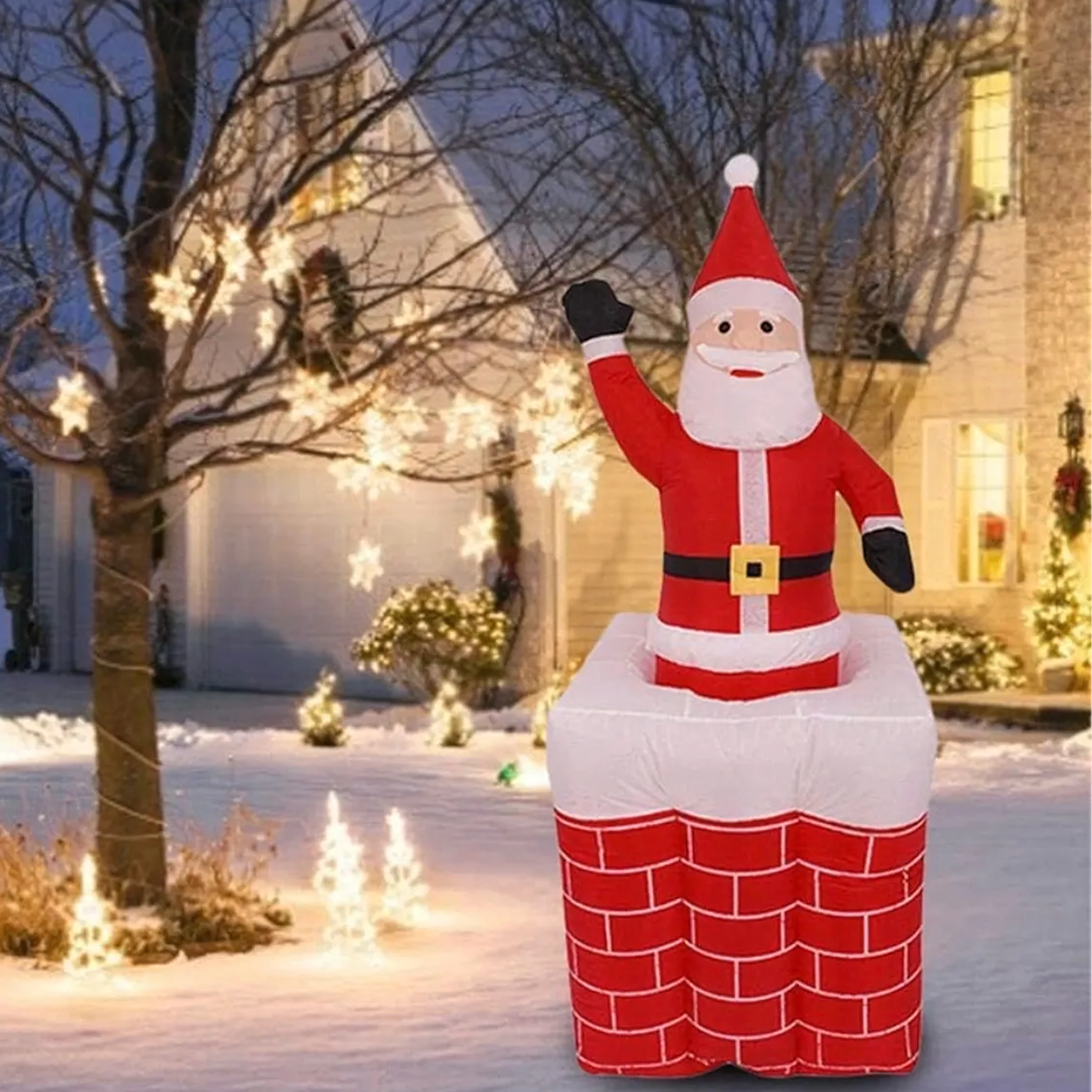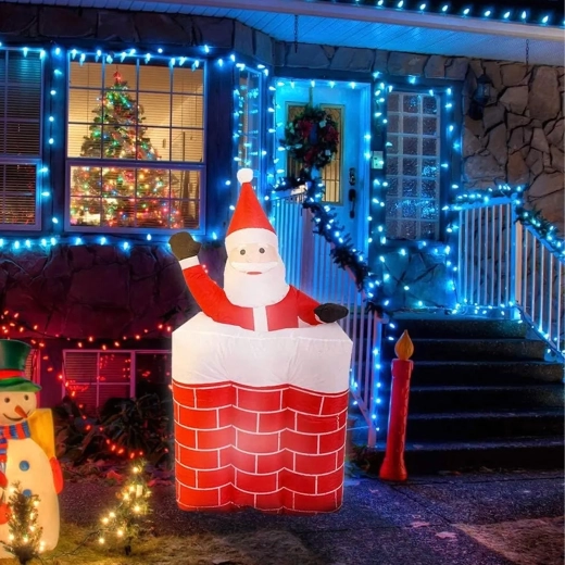 Bring julens magi ind i hjemmet med en dekoration, der begejstrer både børn og voksne. Oppustelig julemand i skorsten glider jævnt op, har LED-bagbelysning og byder på nem brug og vedligeholdelse. Et ideelt valg til vinterpynt, der bliver seasonens hit.