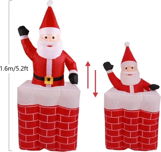 Denne bevægelige juledekoration på 160 cm skaber en unik atmosfære både inde og i overdækkede udendørsområder. Julemanden glider effektfuldt op af skorstenen, og takket være indbyggede LED-dioder lyser den også efter mørkets frembrud. Pynten er designet til hurtig og bekvem ibrugtagning, så din juleudsmykning bliver bekymringsfri.