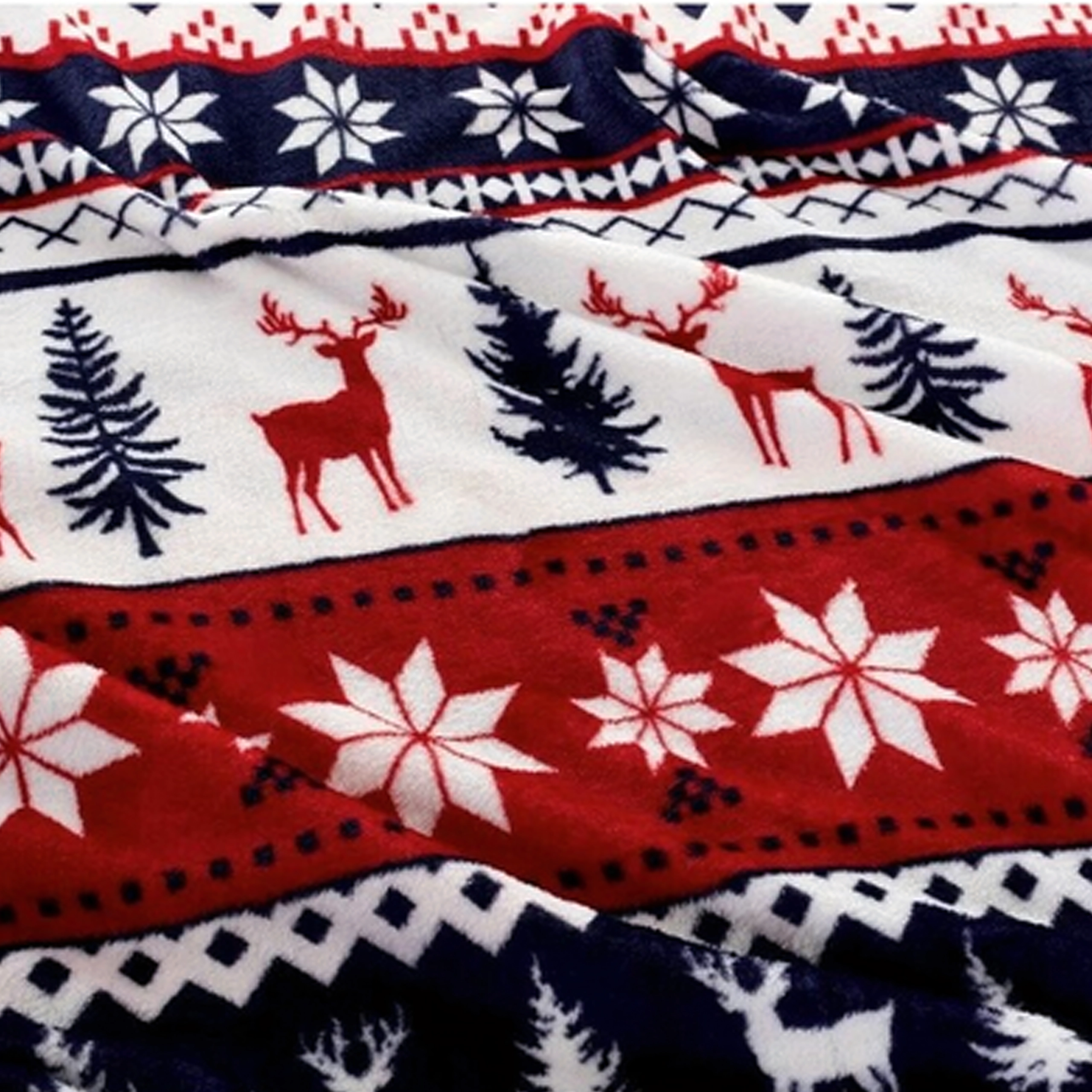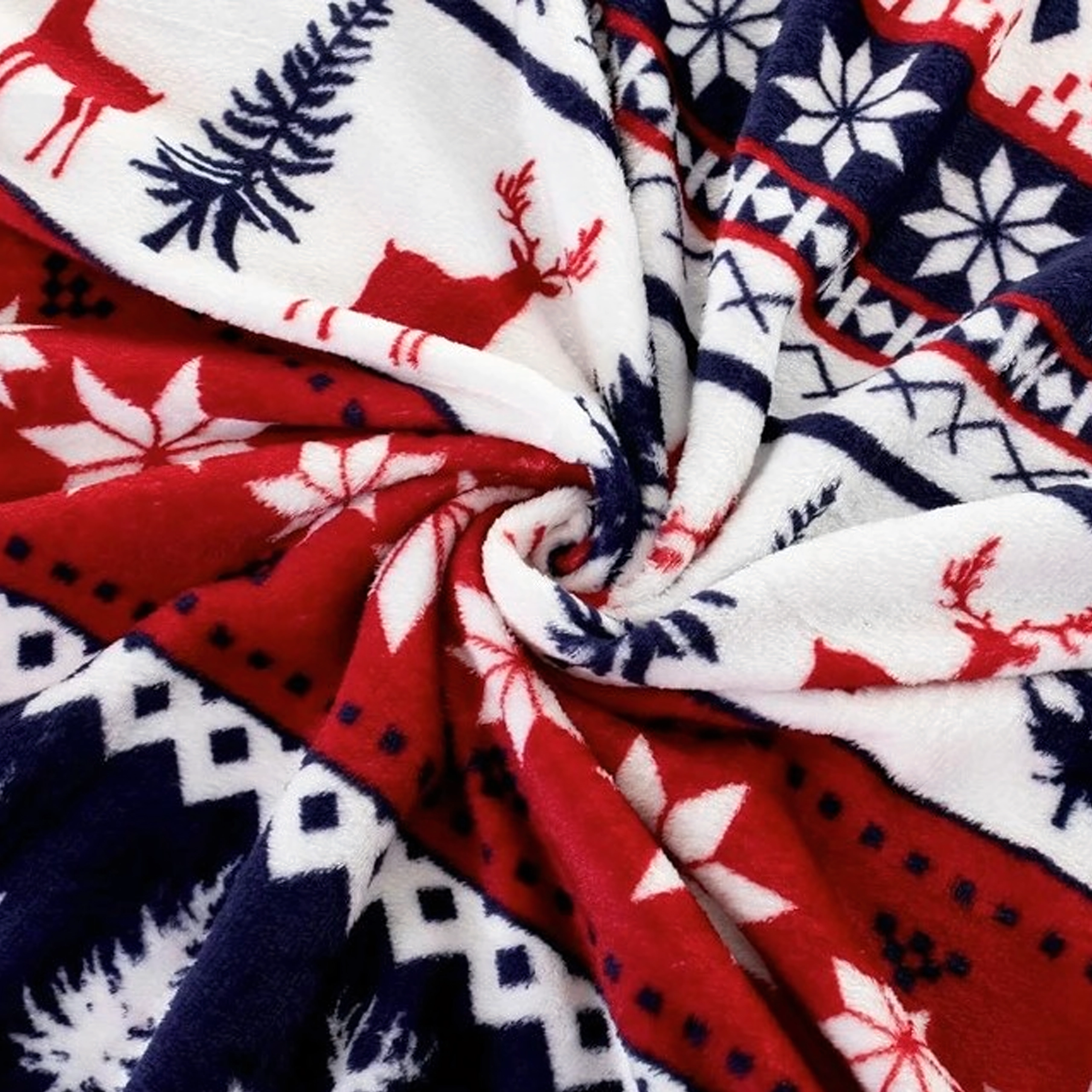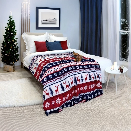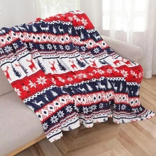 Nyd den hyggelige stemning på vinteraftener med et blødt og behageligt tæppe, der varmer og samtidig fuldender indretningen i dit hjem. Julemotivet skaber en festlig atmosfære, og det blide materiale er rart at røre ved.