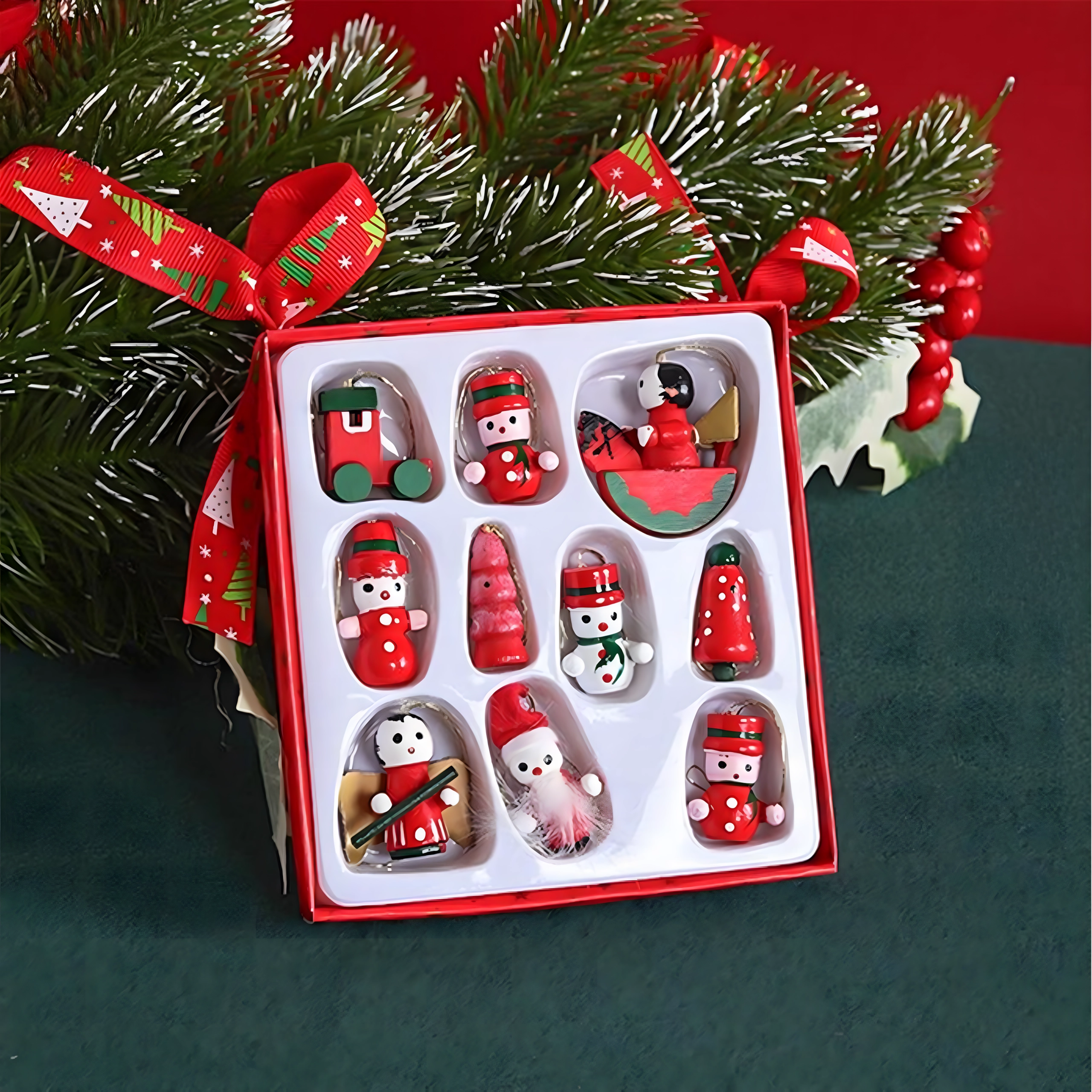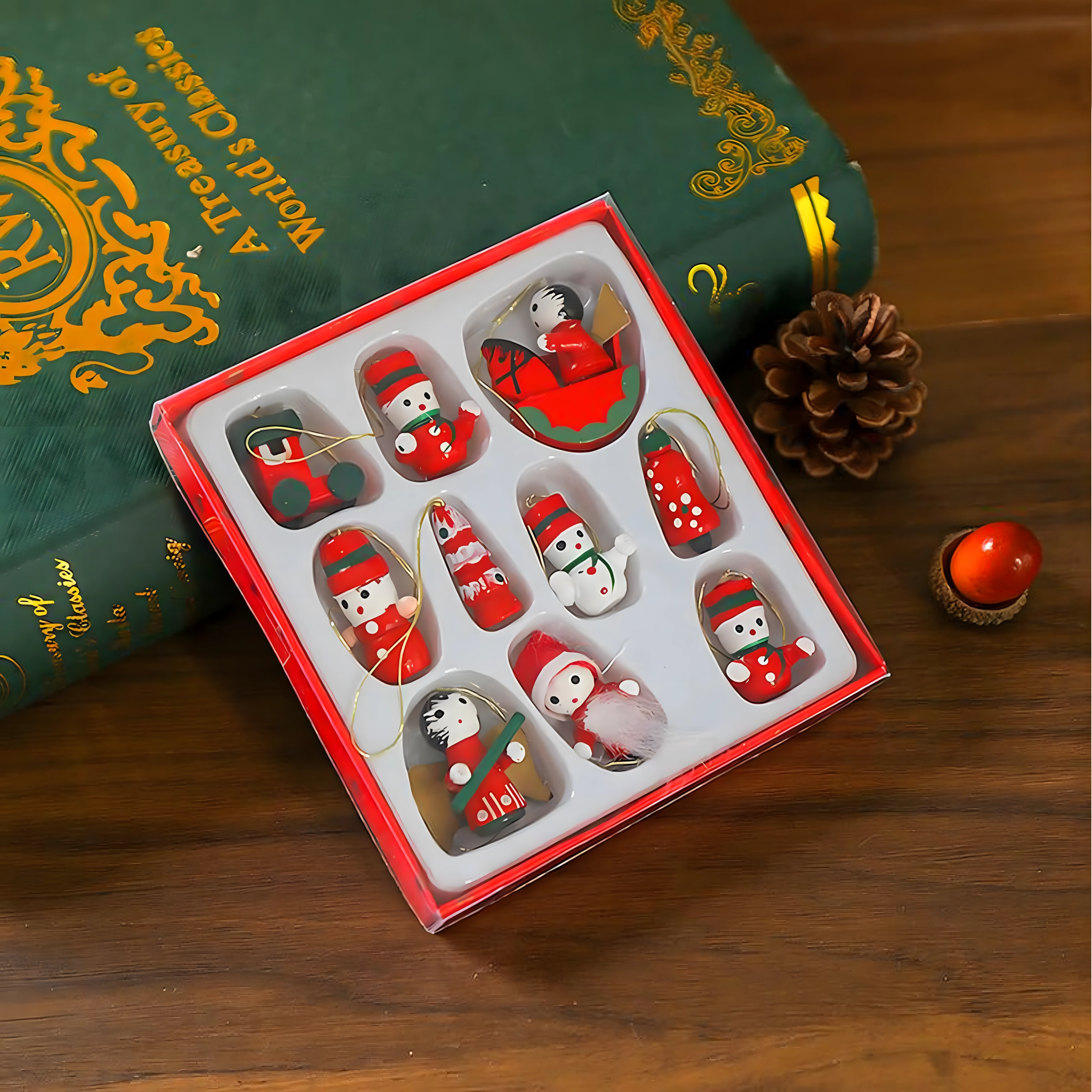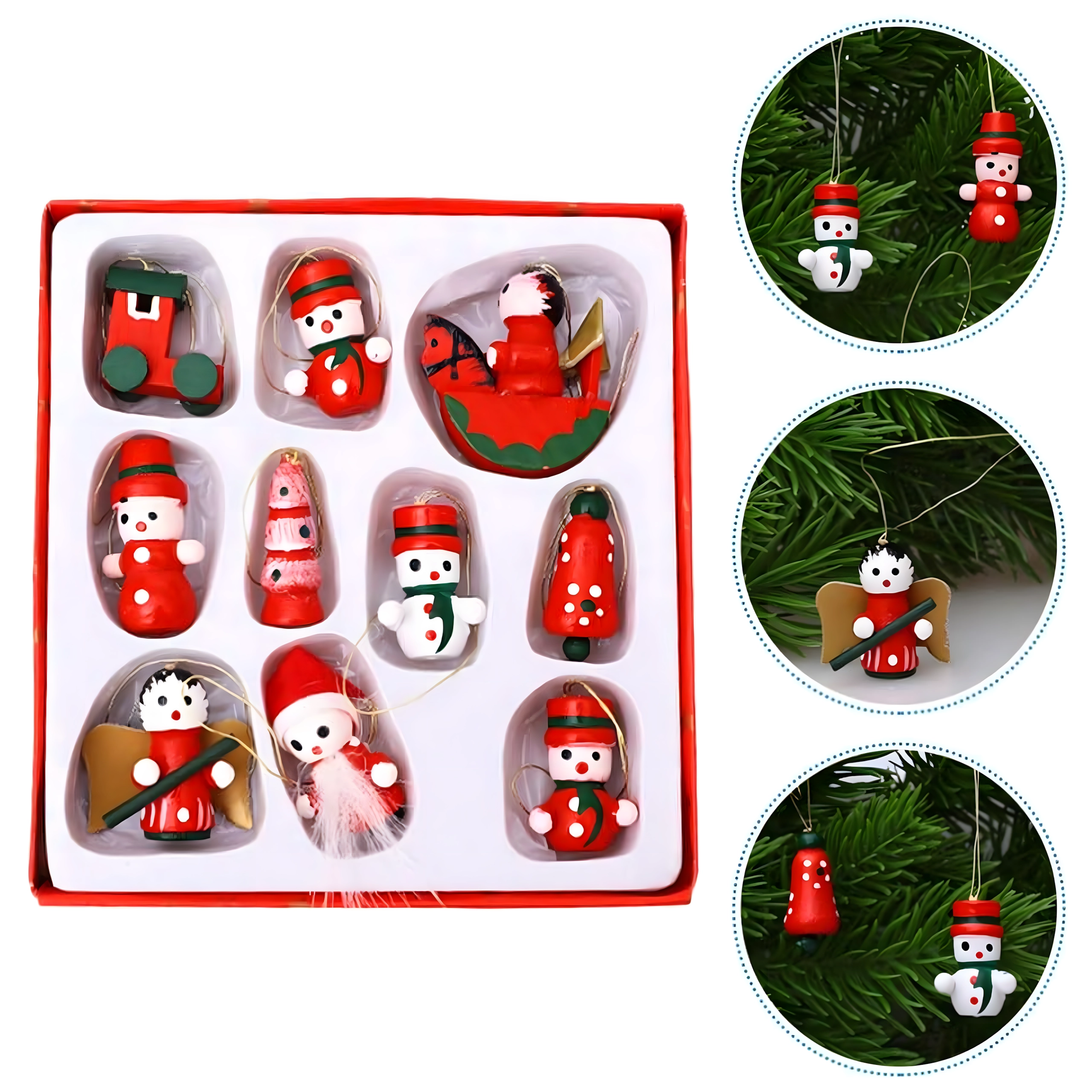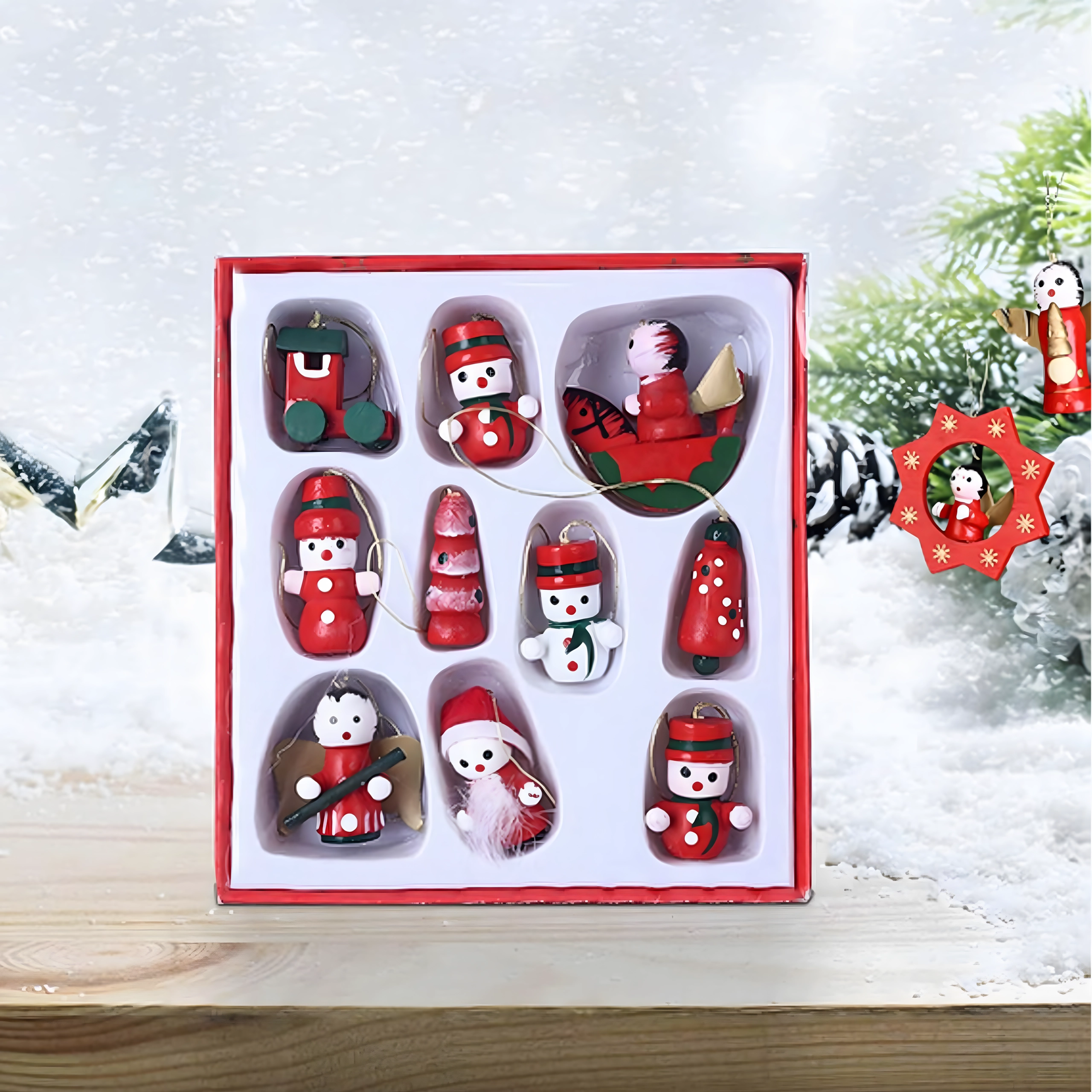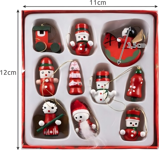 Sæt med 10 træ-juleophæng er en tidløs dekoration, der giver hvert juletræ og al julepynt et magisk præg. De er lavet af let, uknuseligt træ og er derfor sikre for både børn og kæledyr. Forskellige motiver – støvle, julemand, juletræ, engel, klokke og flere – skaber en varm, festlig stemning i hjemmet.