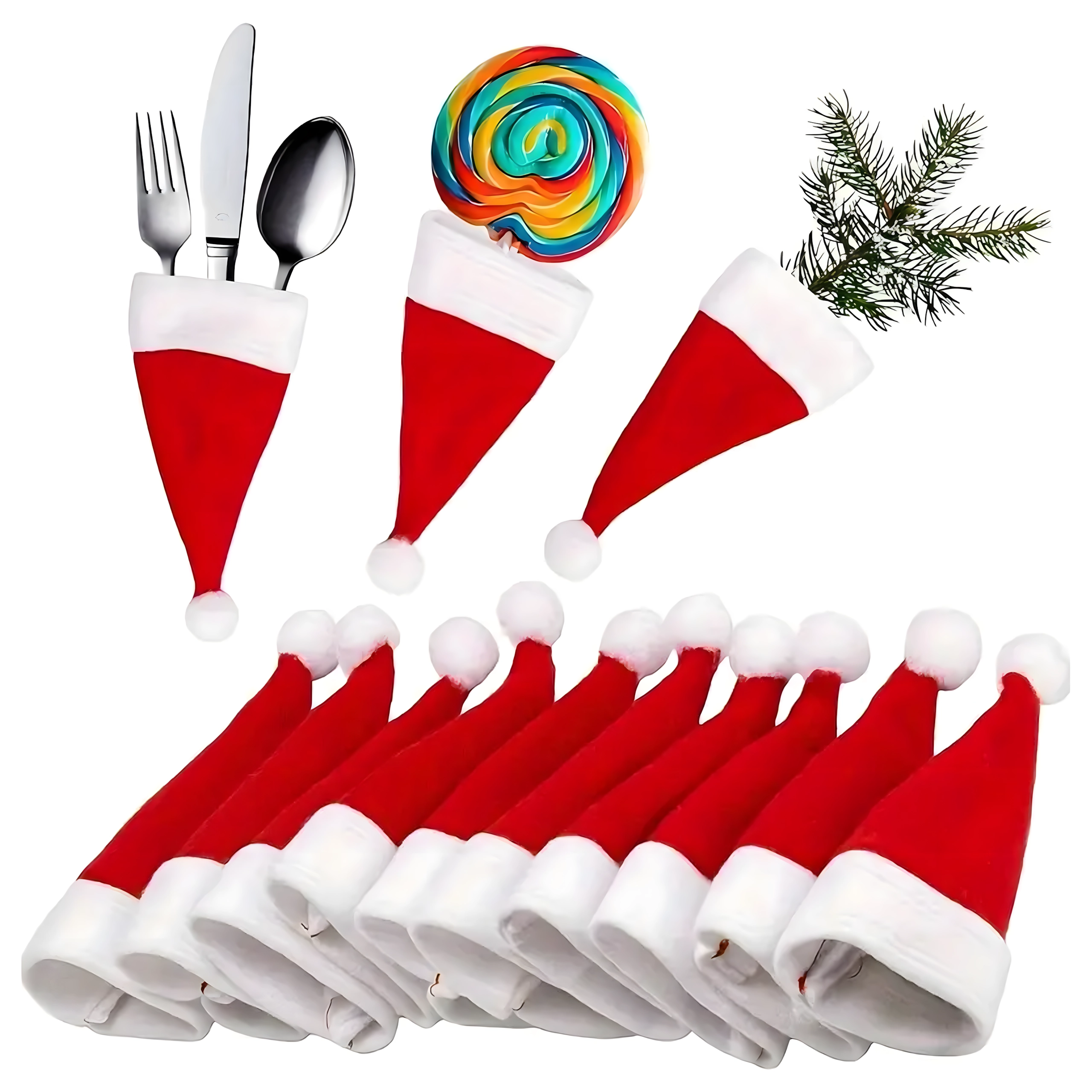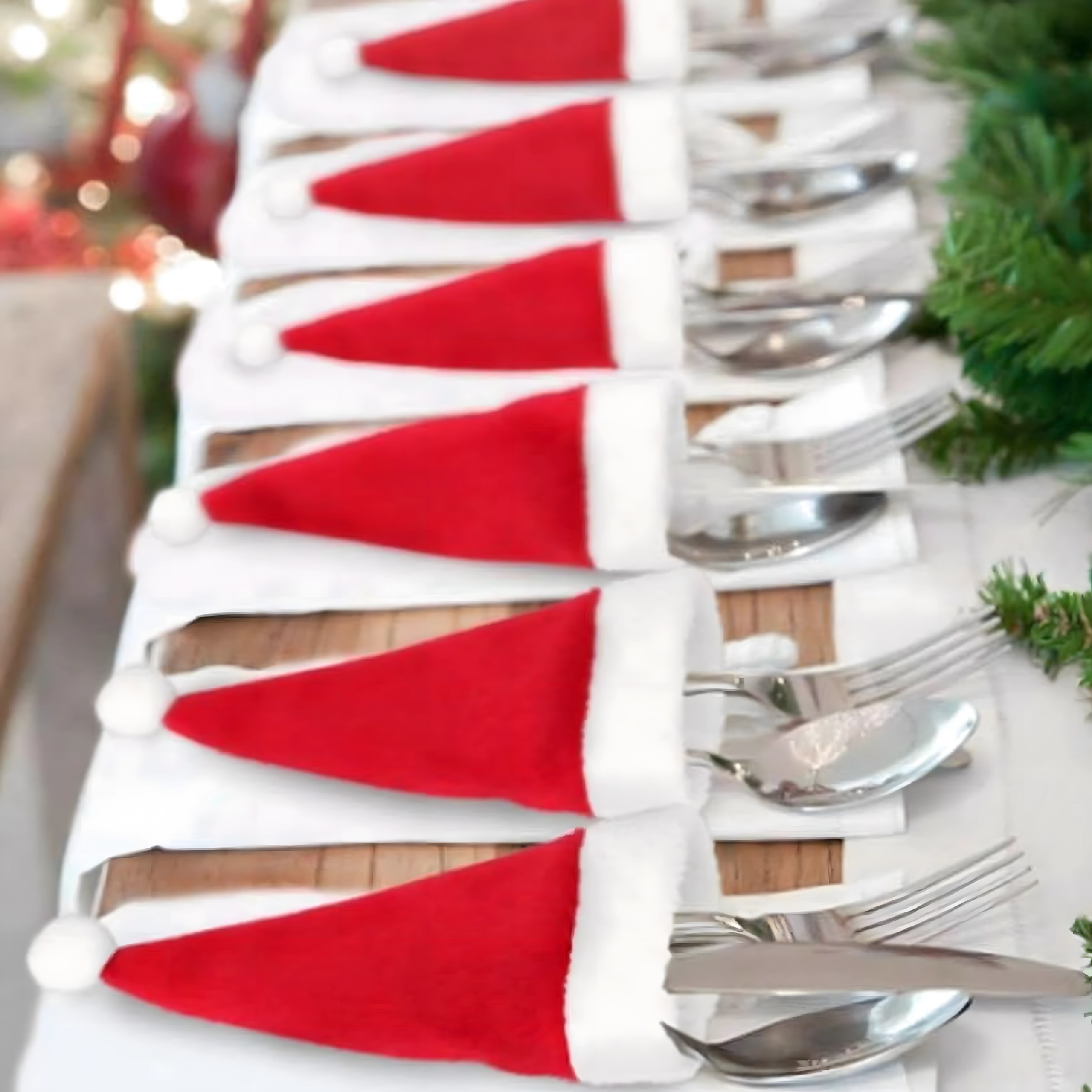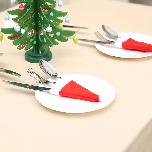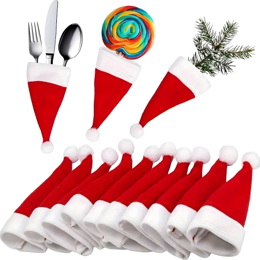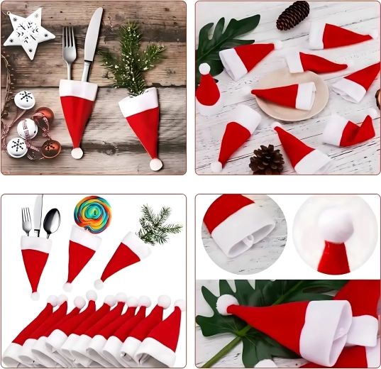Skab julestemning derhjemme med de søde SANTA-nissehuer, som elegant organiserer bestik og samtidig pynter enhver tallerken. Det bløde tekstilmateriale er behageligt at røre ved, lommerne er holdbare og lette at vedligeholde ved vask.
