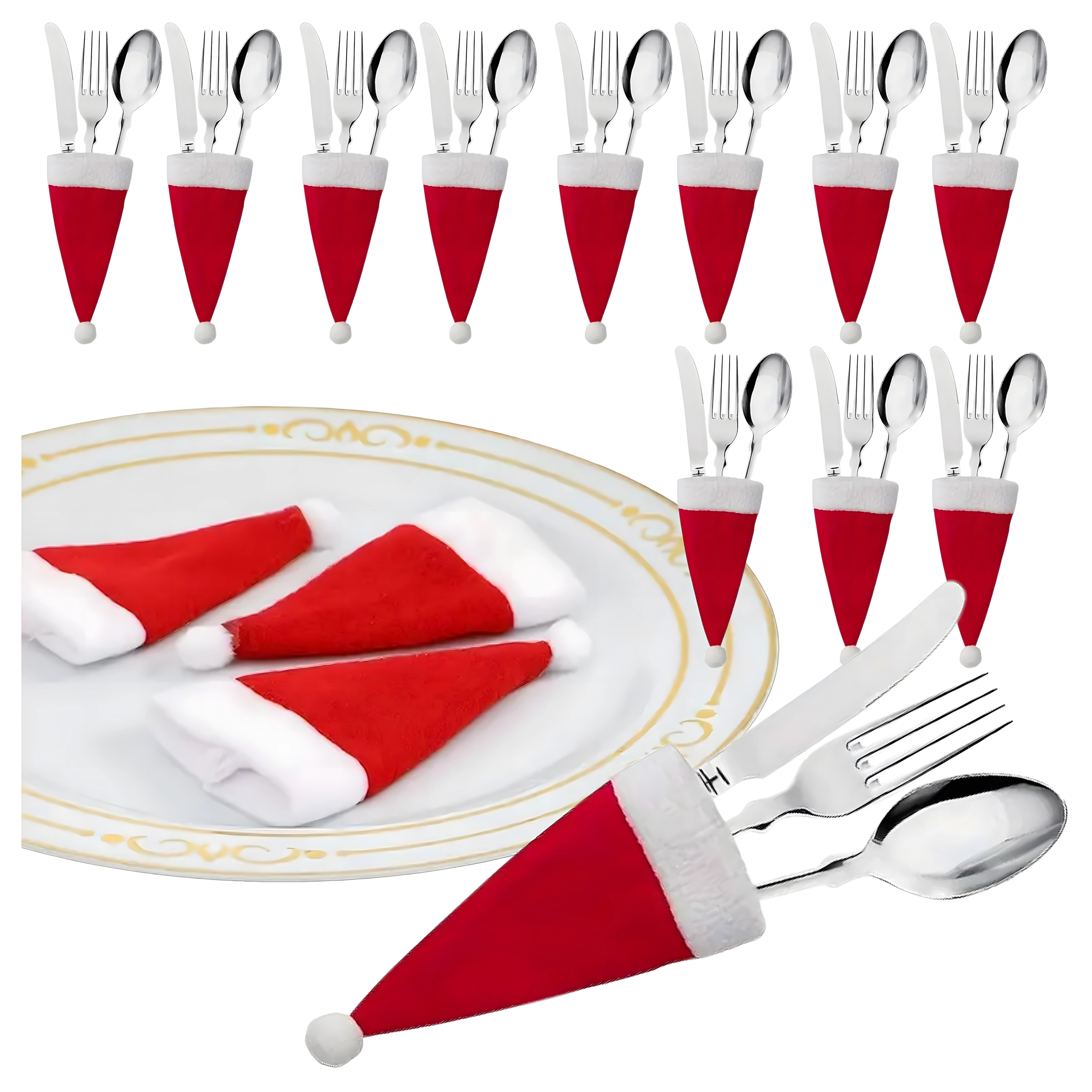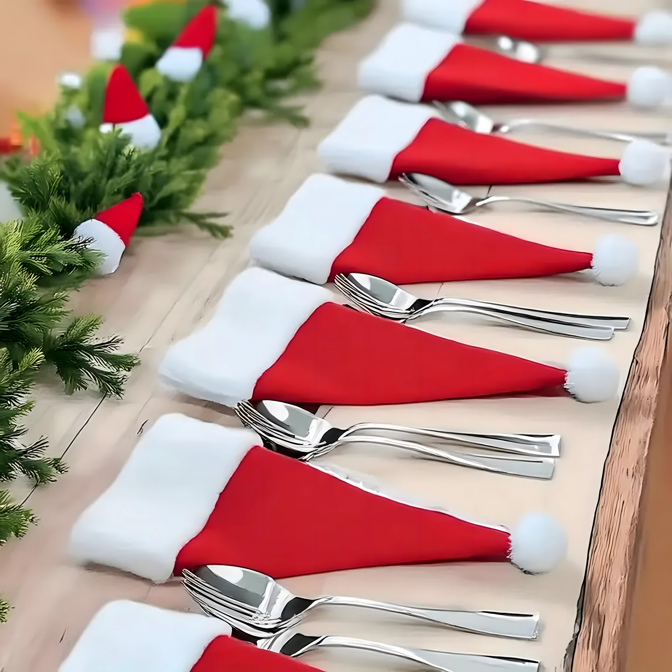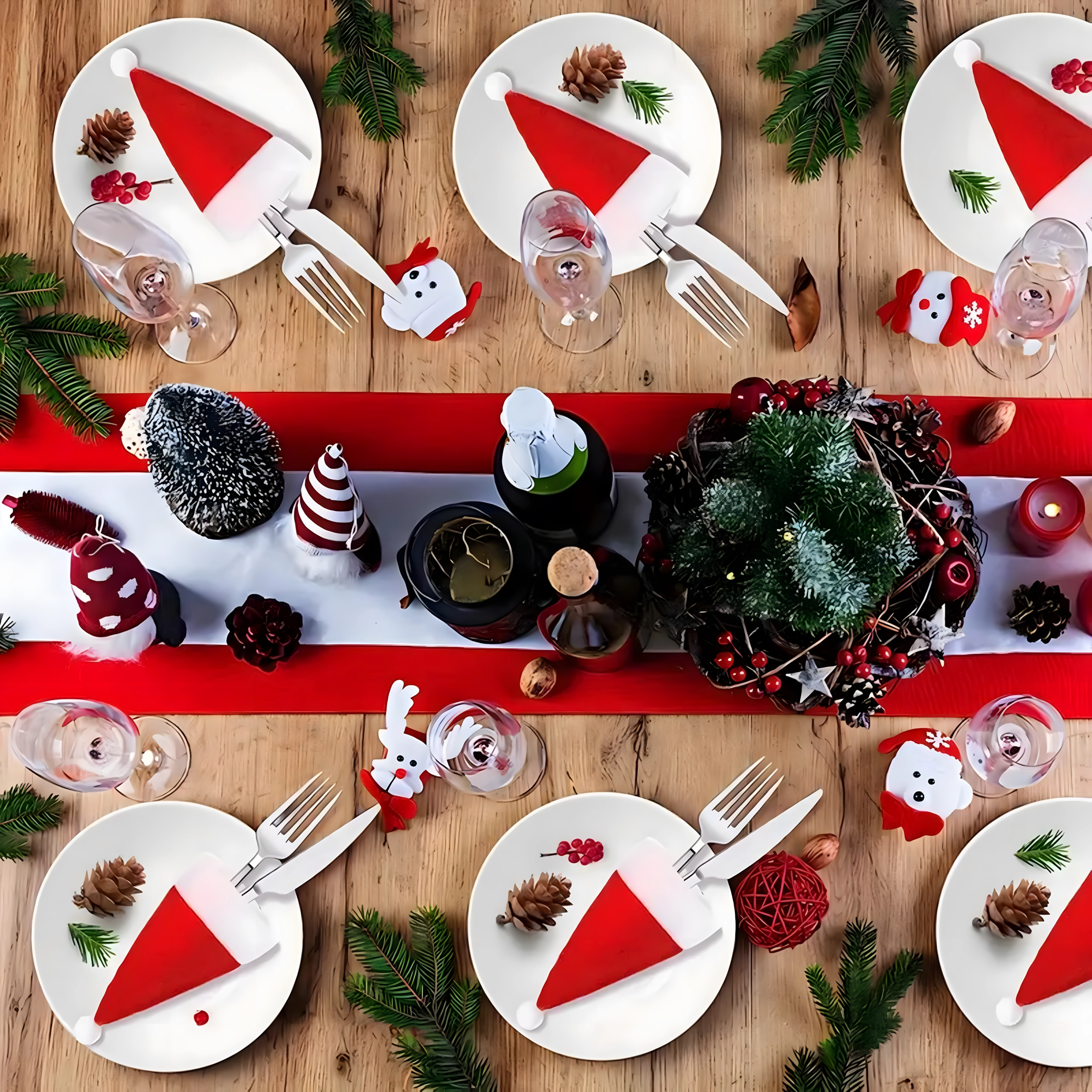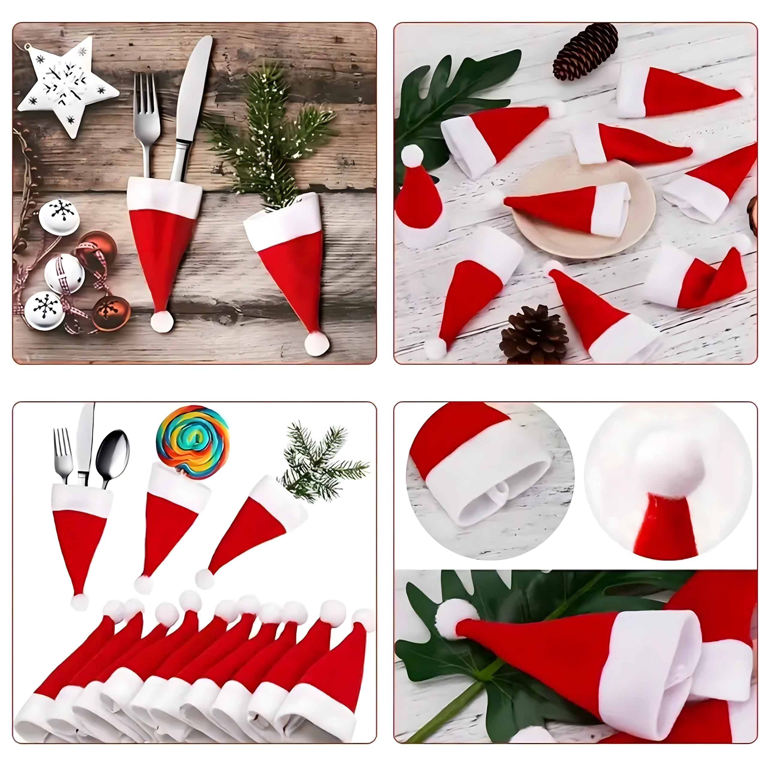 Det ikoniske SANTA-nissehue-design giver et festligt præg til enhver borddækning og fanger gæsternes opmærksomhed.