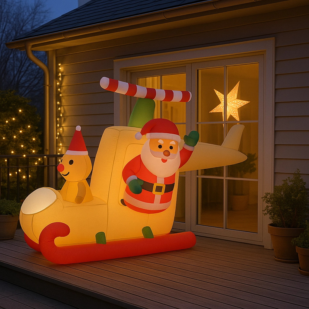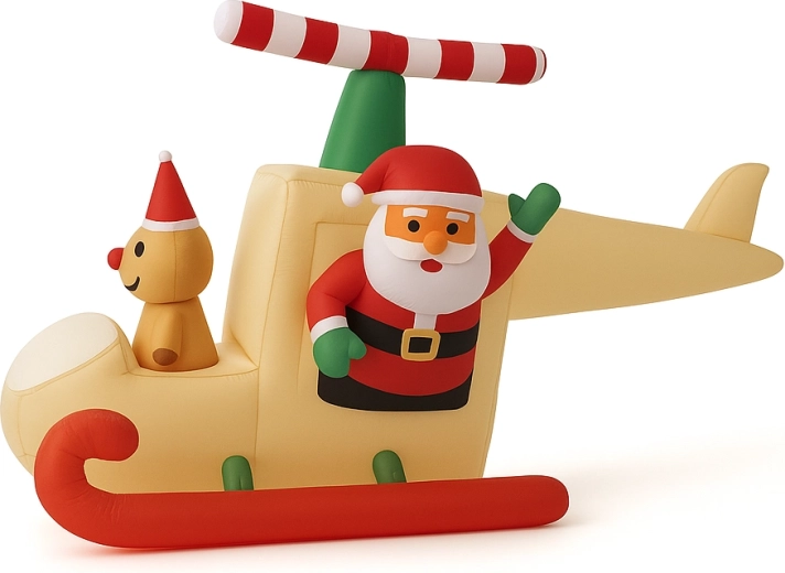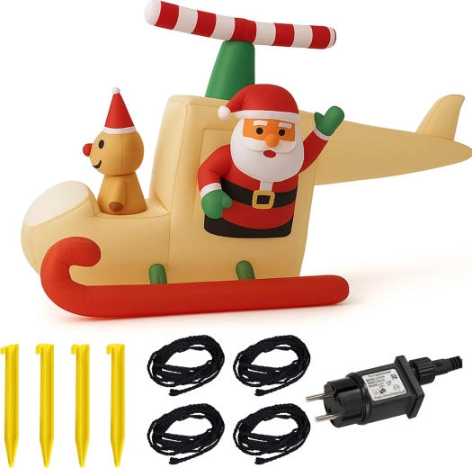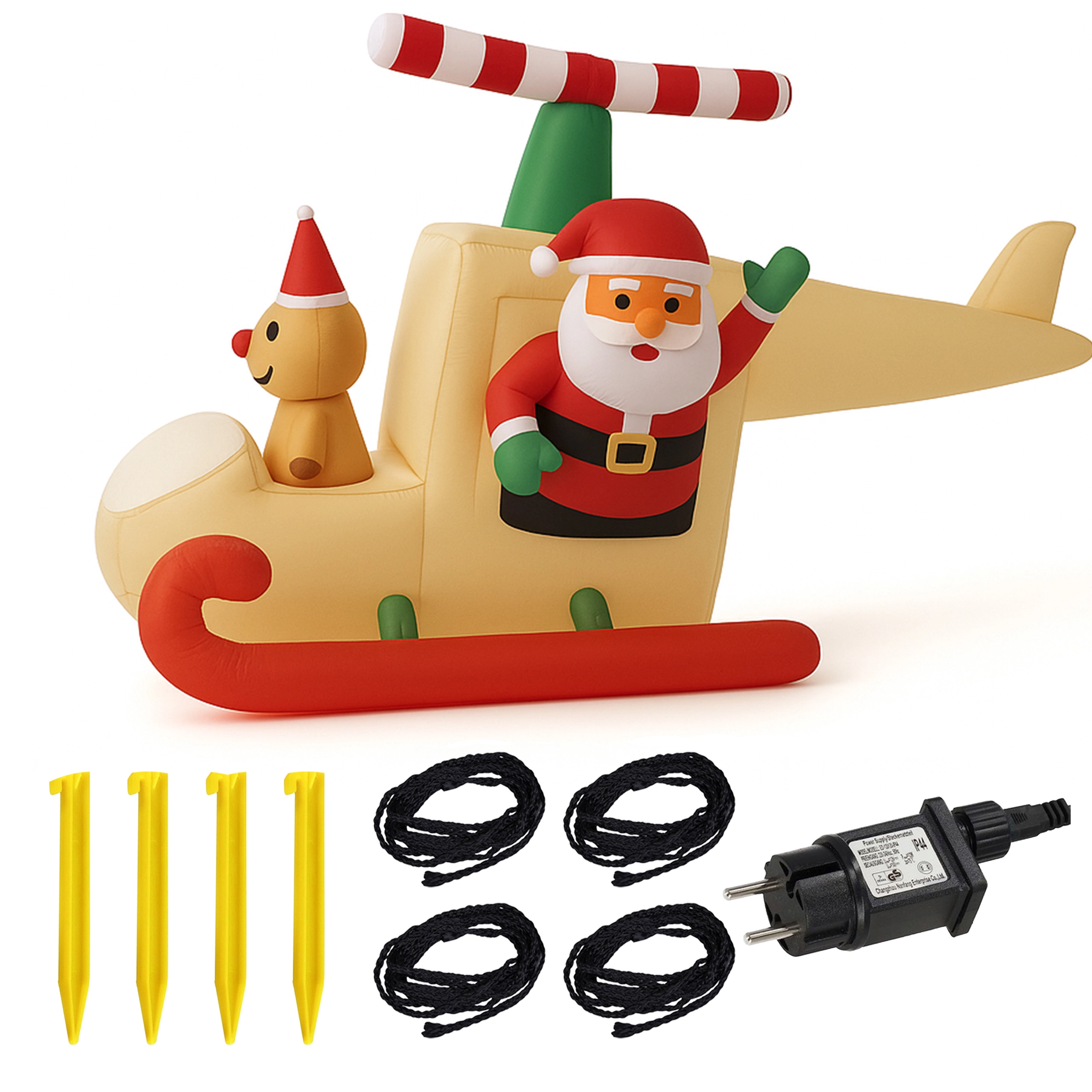 Oppustelig julemand i slæde, 160 cm høj bringer en magisk julestemning til din have. Takket være de indbyggede LED-dioder lyser den med et behageligt, varmt lys, og automatisk oppustning sikrer hurtig og nem installation. Det holdbare og vandafvisende materiale lover lang levetid og glæde i mange sæsoner.