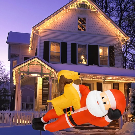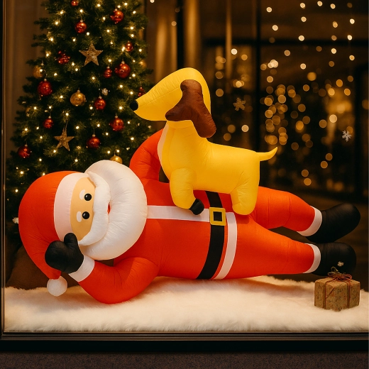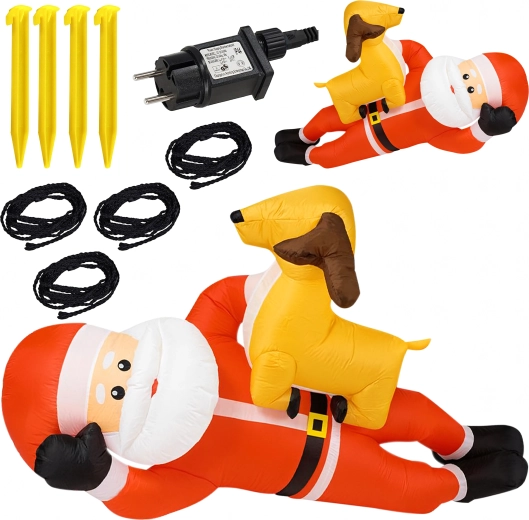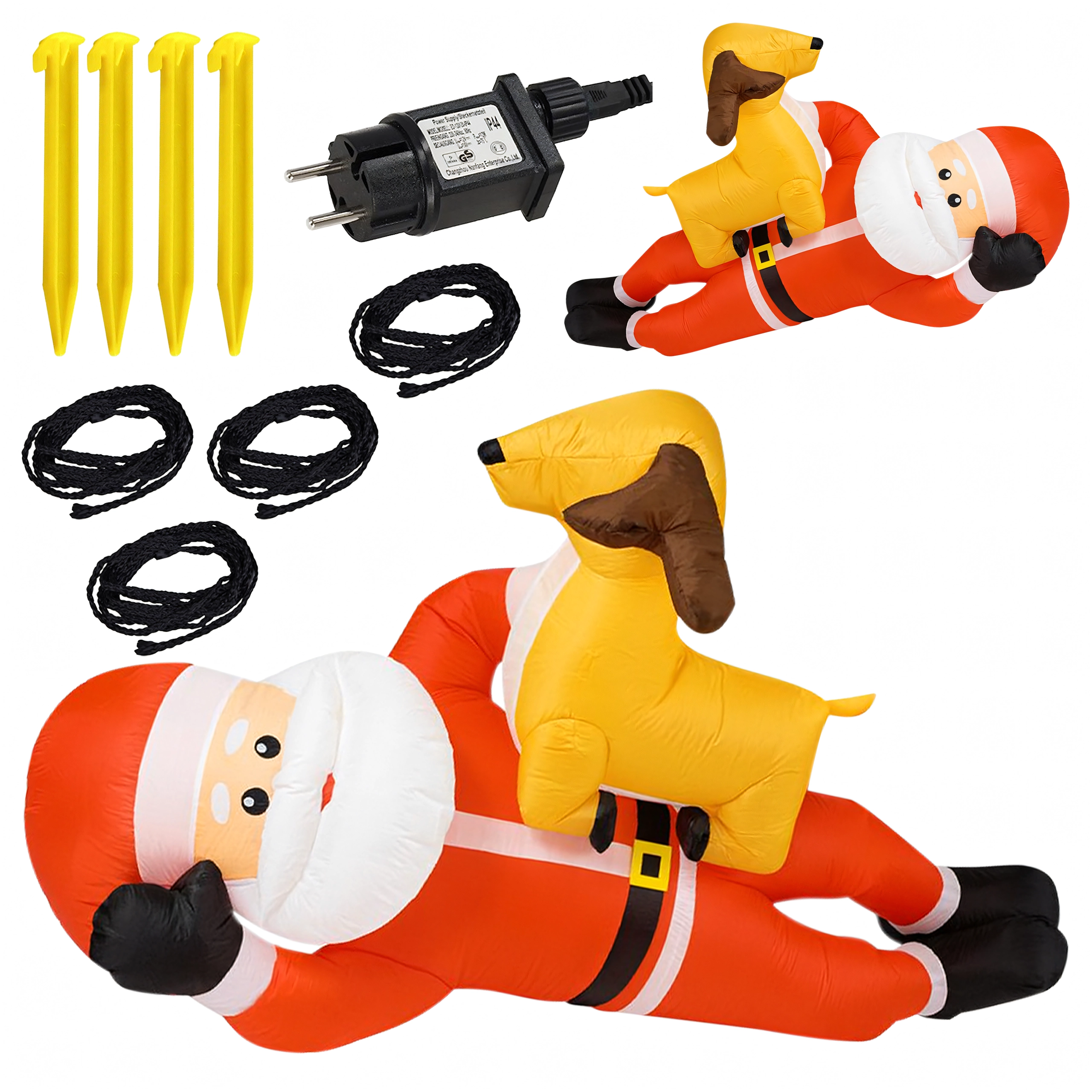 Den oppustelige juledekoration i form af JULEMANDEN med rensdyr i en højde på 2,1 m tilfører straks dit hjem en festlig charme. Indbyggede LED-dioder sørger for stemningsfuld belysning efter mørkets frembrud, og den automatiske blæser sikrer hurtig og bekvem oppustning uden besvær.
