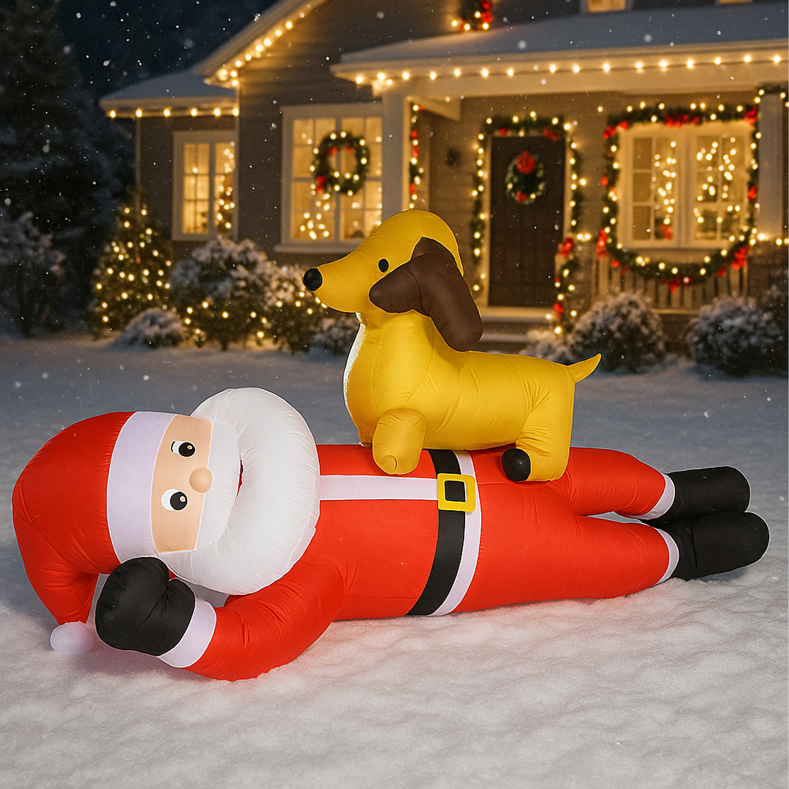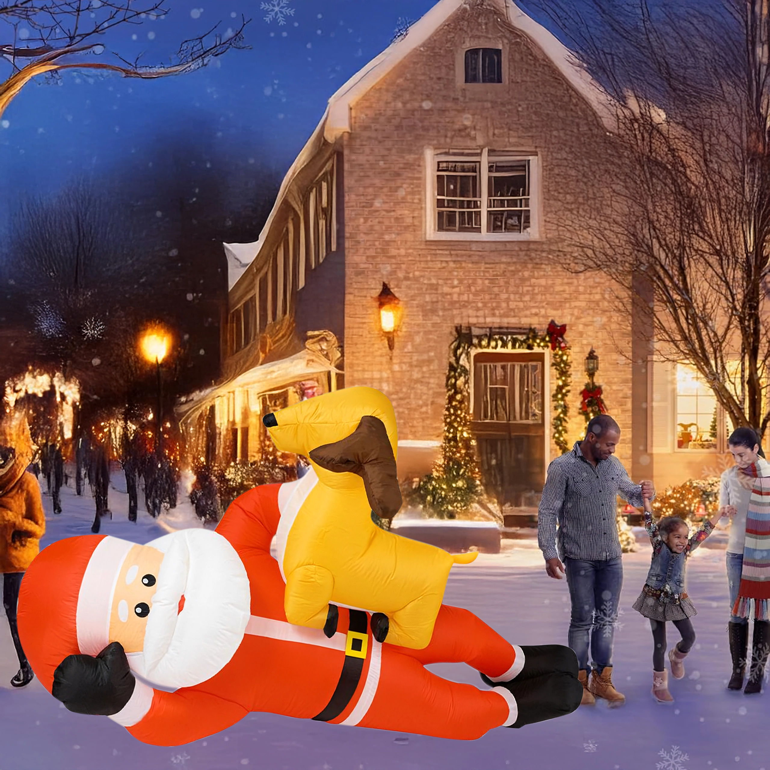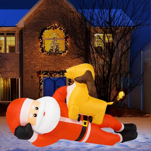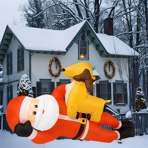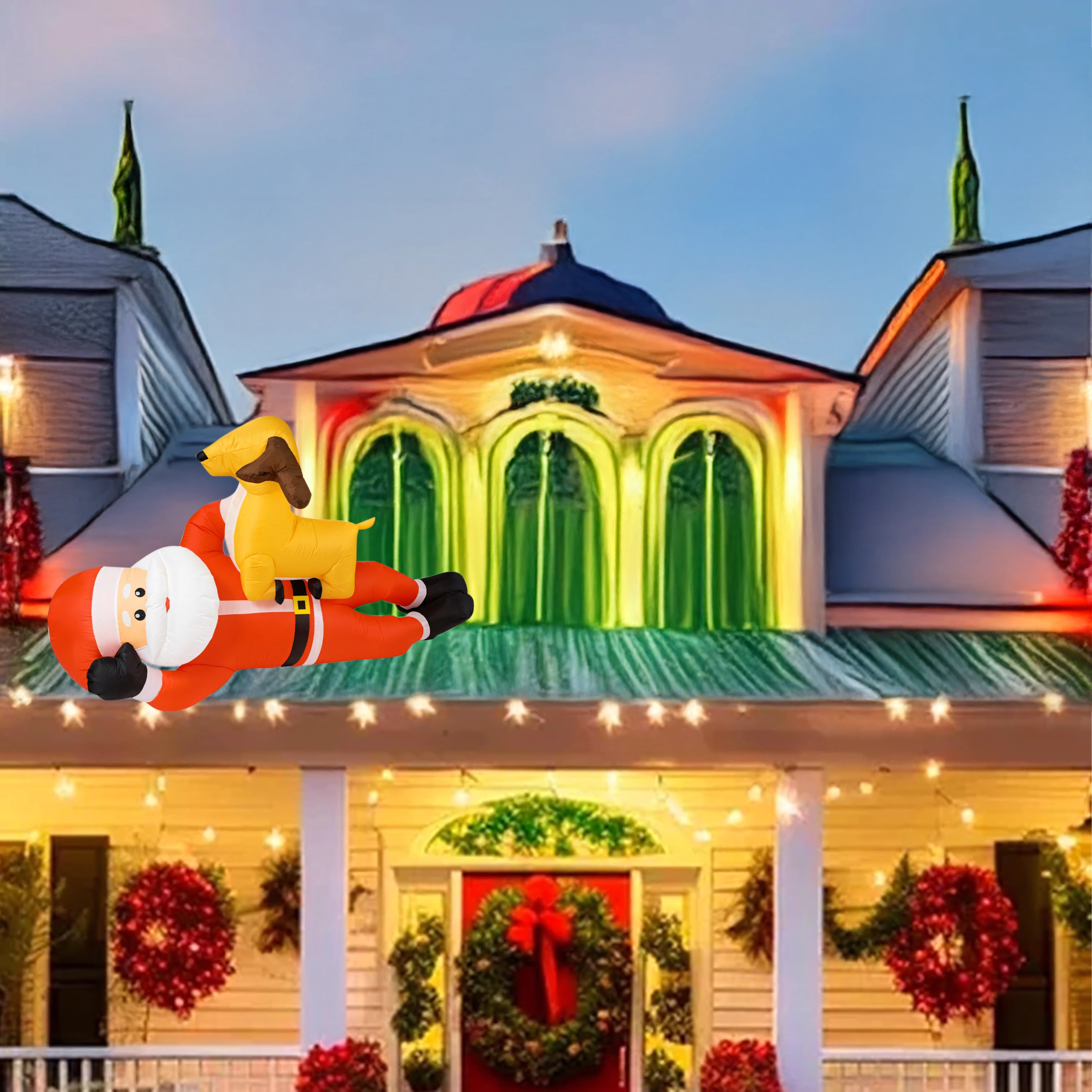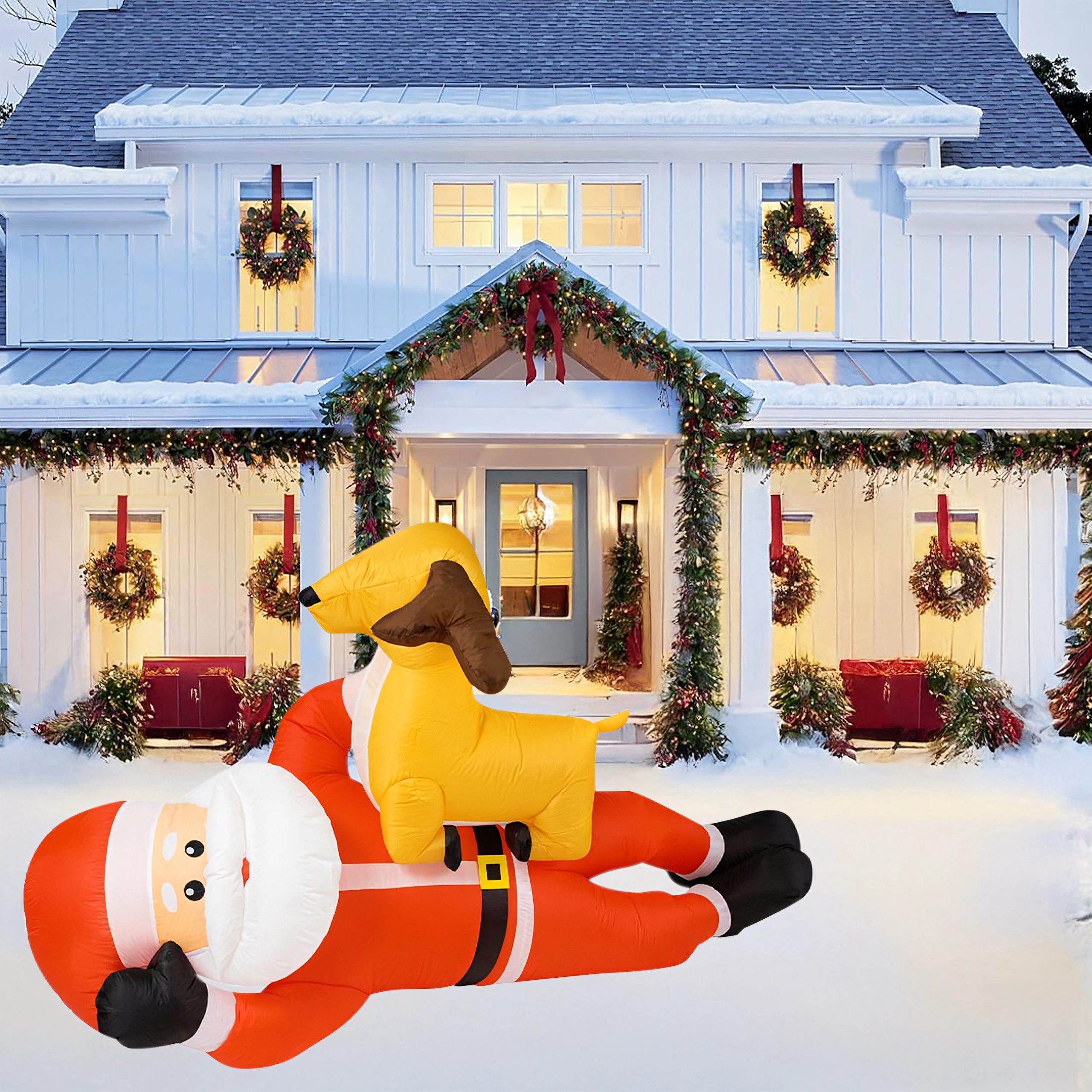 Skab en magisk julestemning med dekorationen oppustelig julemand med rensdyr 210 cm. Takket være integreret LED-belysning og automatisk luftturbine pustes figuren hurtigt op og lyser op. Den er let, holdbar og egnet til både indendørs og udendørs brug, så den bliver et naturligt blikfang i haven såvel som i hjemmet.