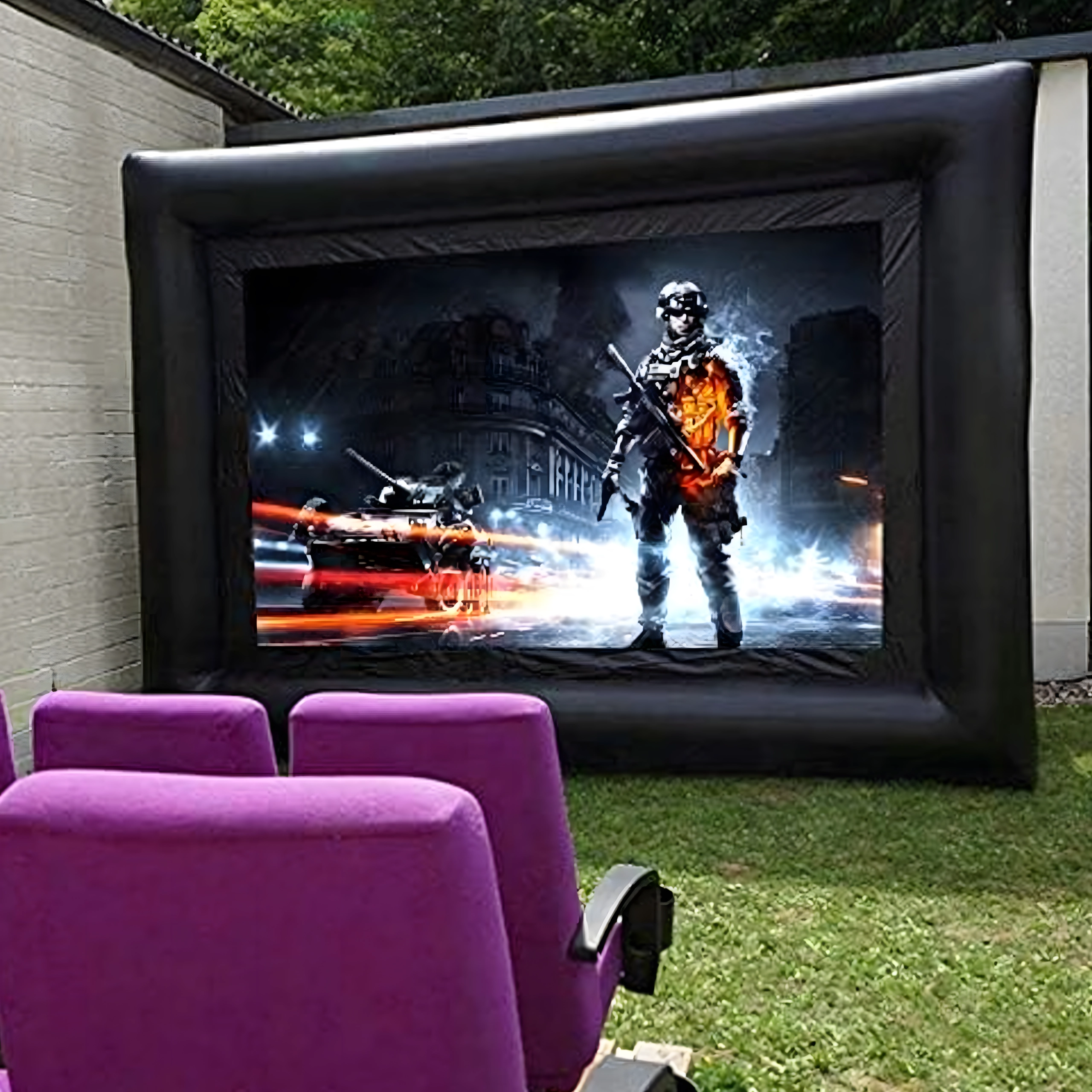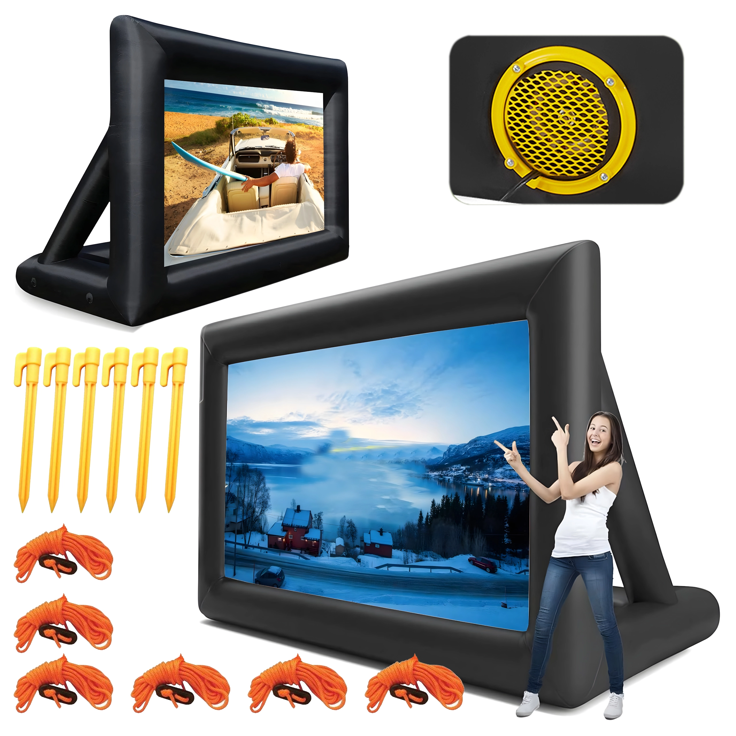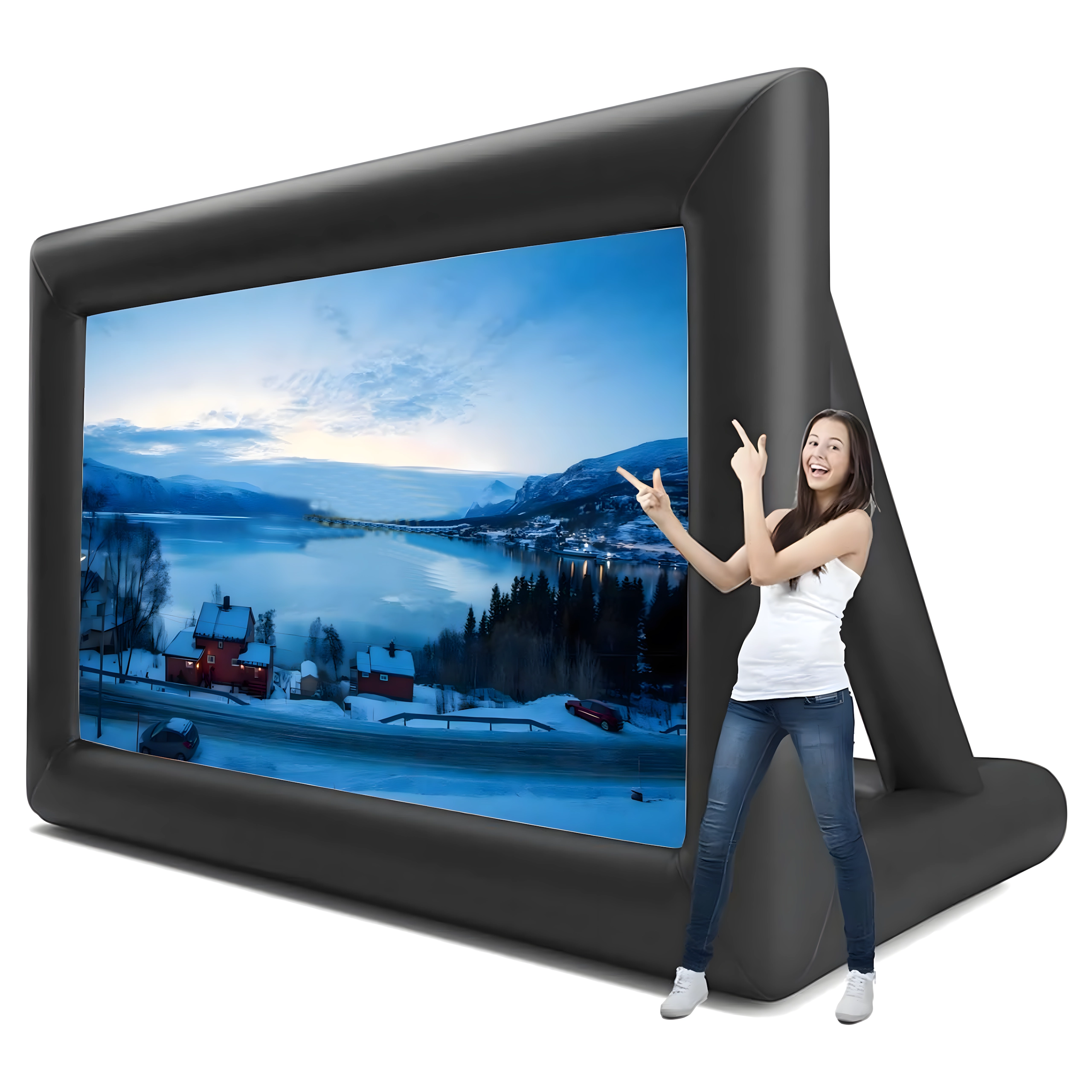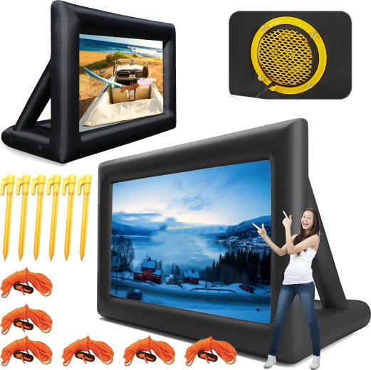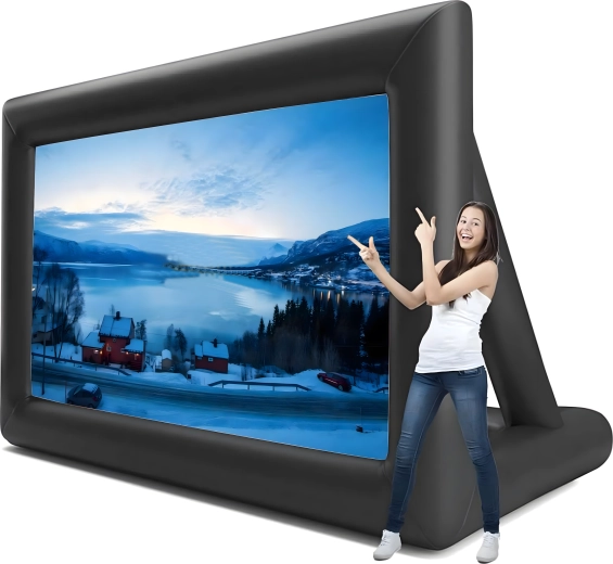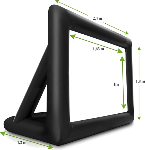 Nyd filmaftener under åben himmel med denne store oppustelige projektionsskærm. Ideel til udendørs biograf, fester, præsentationer og offentlige arrangementer. Tilbyder for- og bagprojektion, hurtig og nem installation og er fremstillet af holdbare materialer for lang levetid og nem transport.
