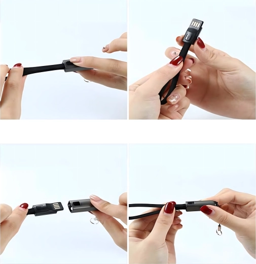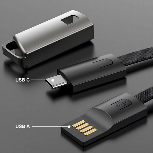 Det praktiske kabel i vedhængsform kombinerer mobilitet, funktionalitet og moderne design. Forbinder enhed med USB‑C til en USB‑A-port og sikrer hurtig opladning og stabil synkronisering af filer. Takket være udførelsen som snor er det velegnet til nøgler, taske eller rygsæk – så du altid har det ved hånden.