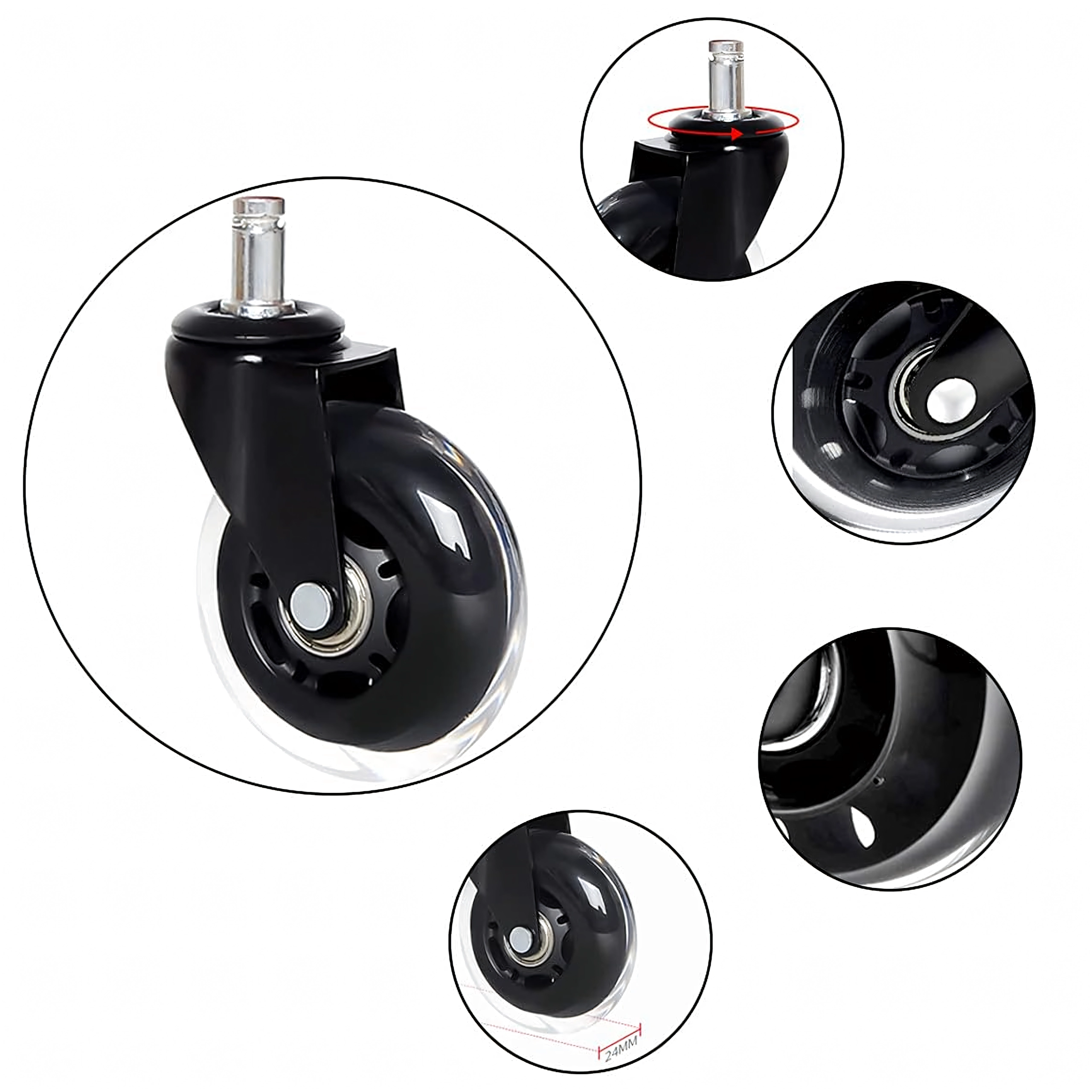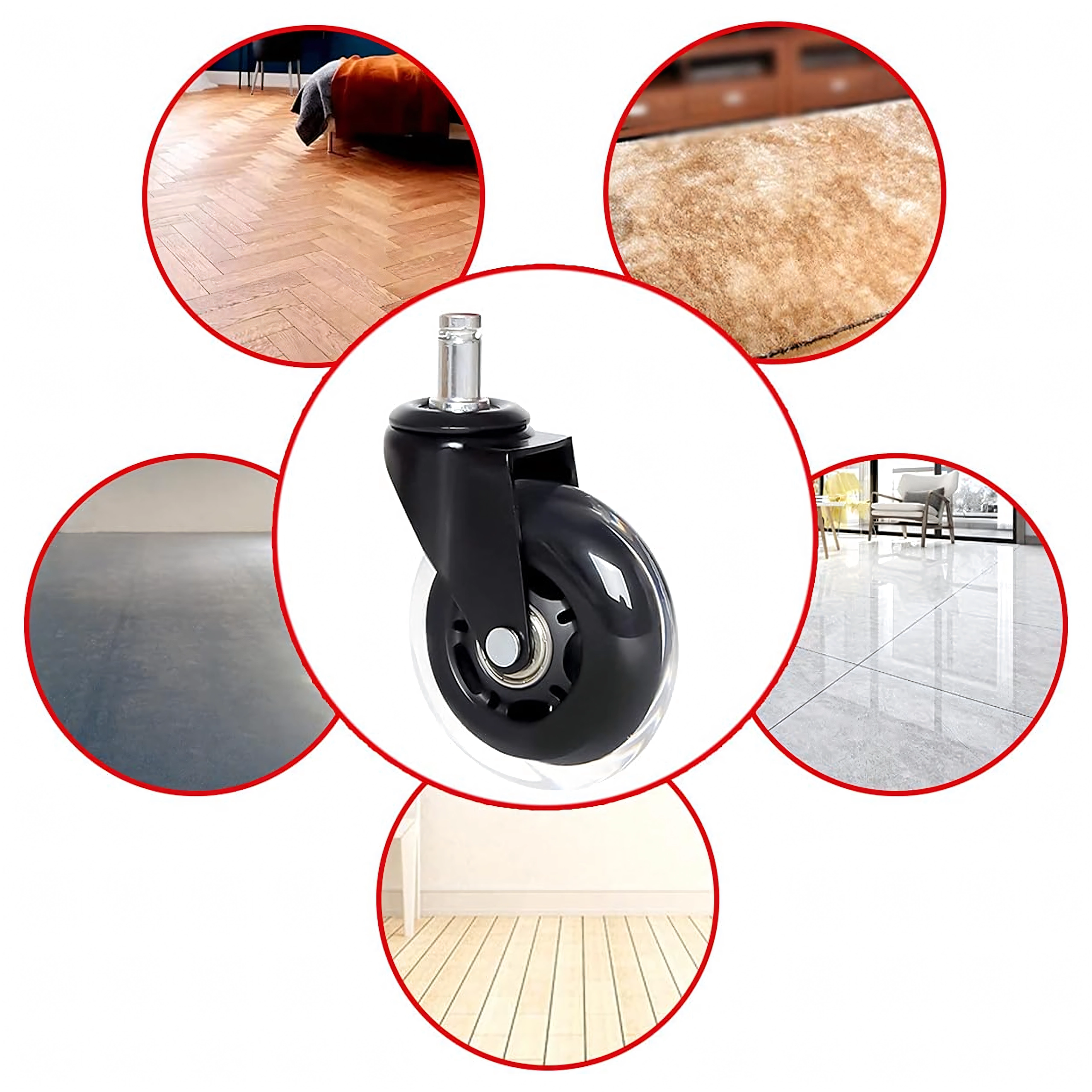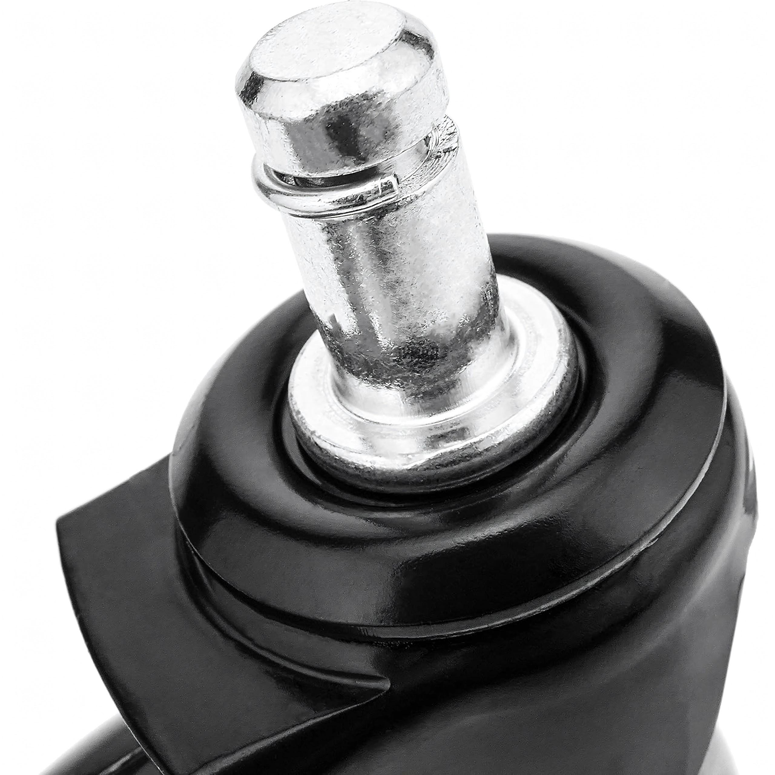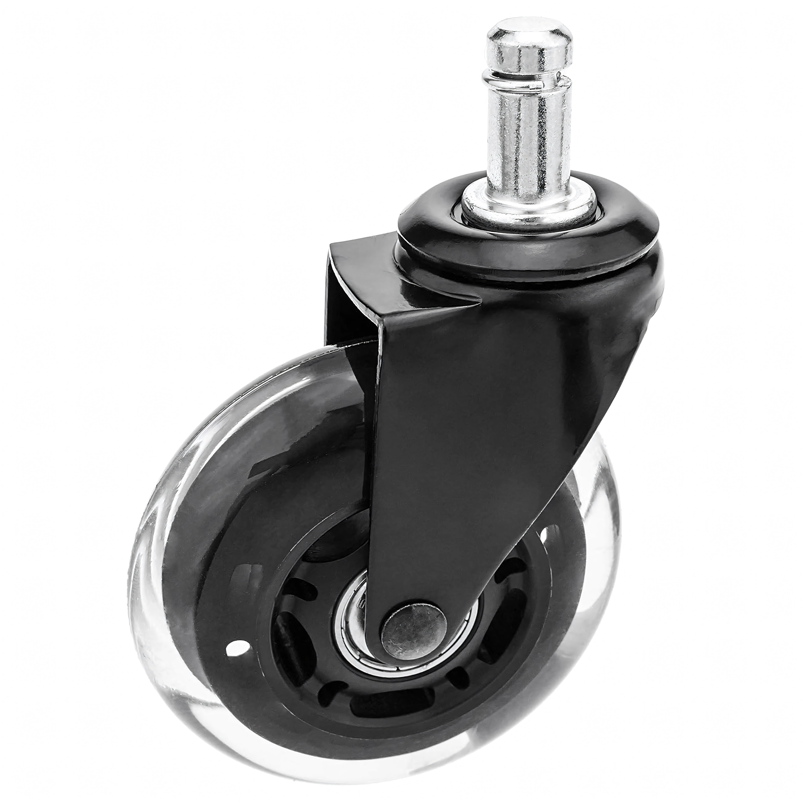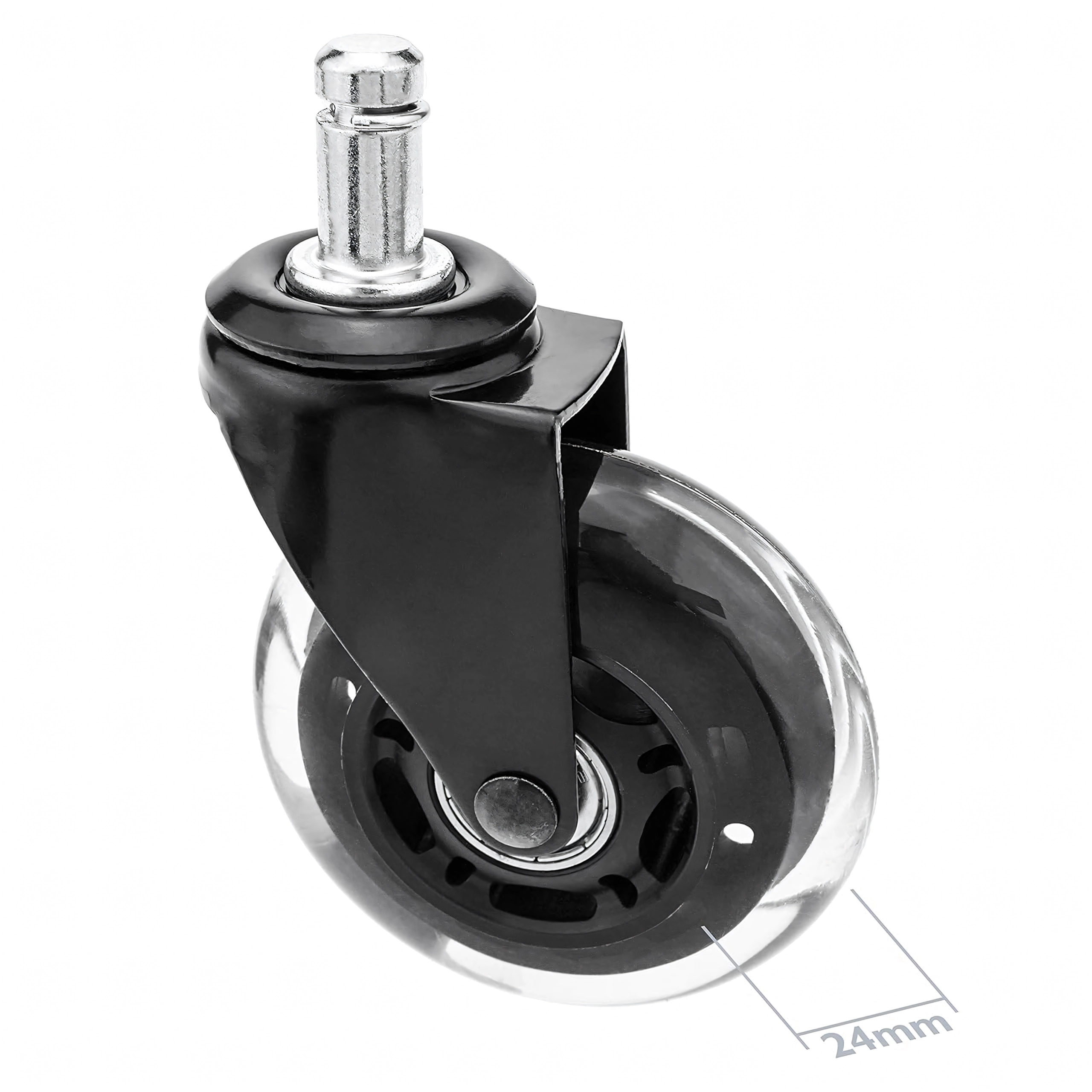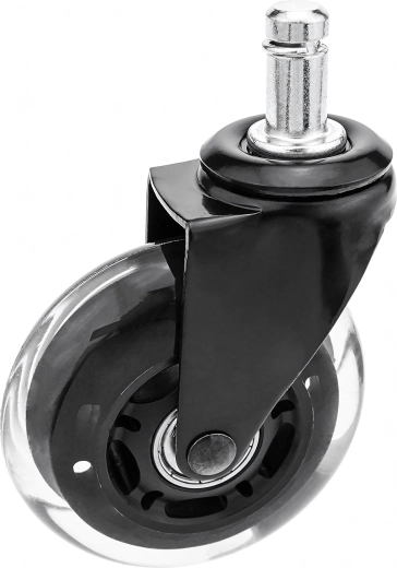 Universelt gummihjul med præcisionsleje til både kontor- og gamingstole, som sikrer støjsvag og jævn bevægelse, lang levetid og beskyttelse af gulve mod ridser. Kompatibelt med de fleste stole med 12 mm tap. Fås også som pakke med 100 stk.