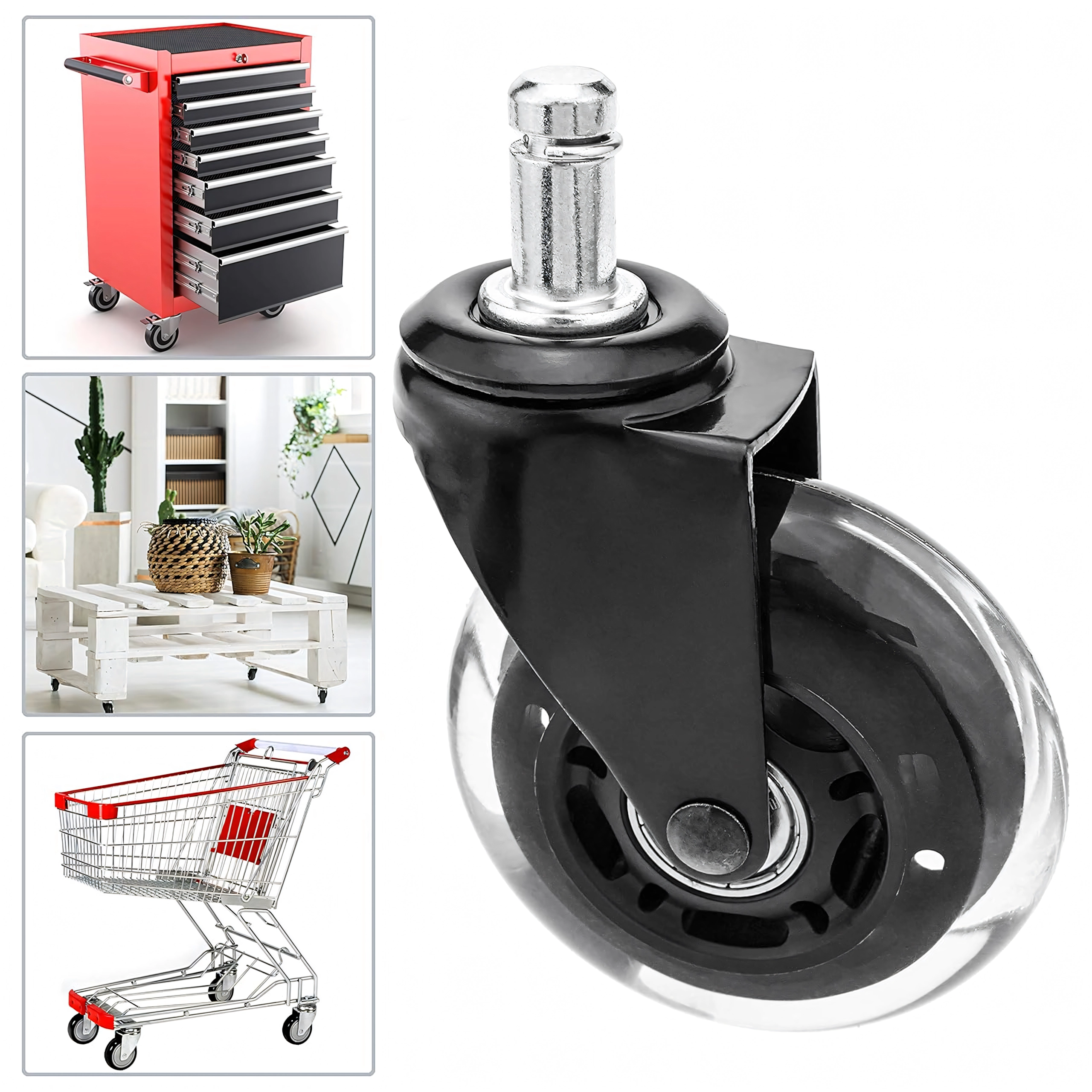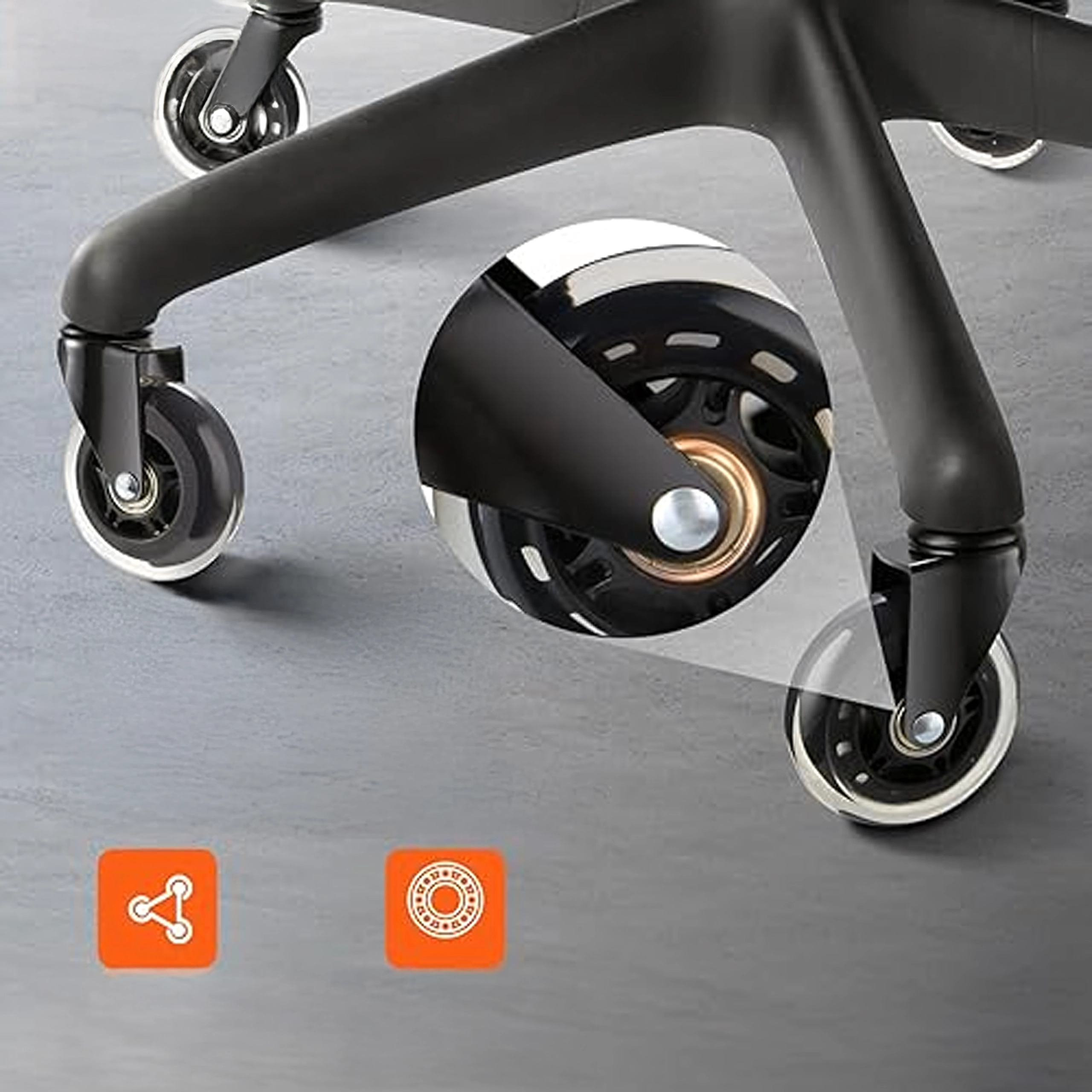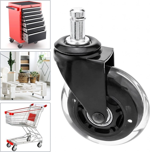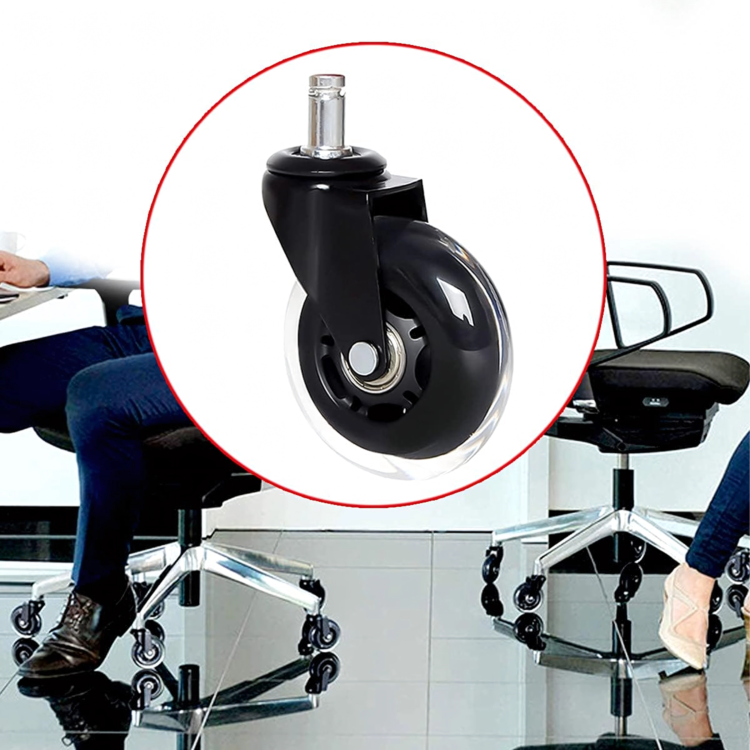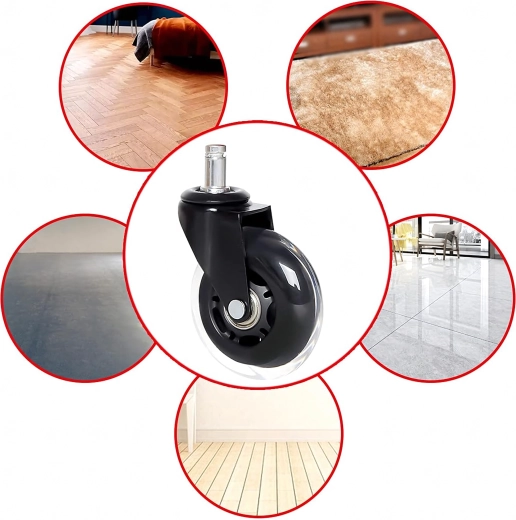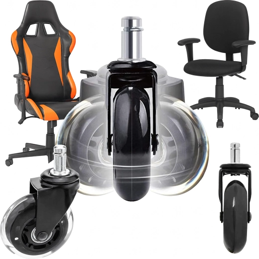 Udskift gamle hjul med en moderne gummiversion, der kombinerer stille drift, stabilitet og skånsomhed mod gulvbelægninger. Takket være lejerne bevæger stolen sig glat uden at sætte sig fast og reducerer slitage både på hjulet og på gulvet.