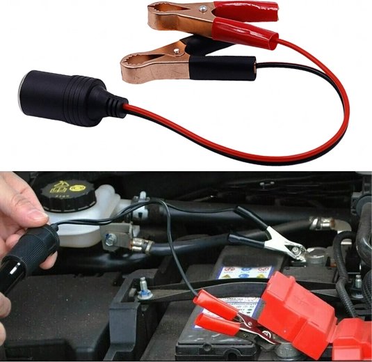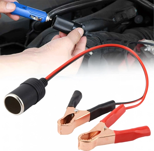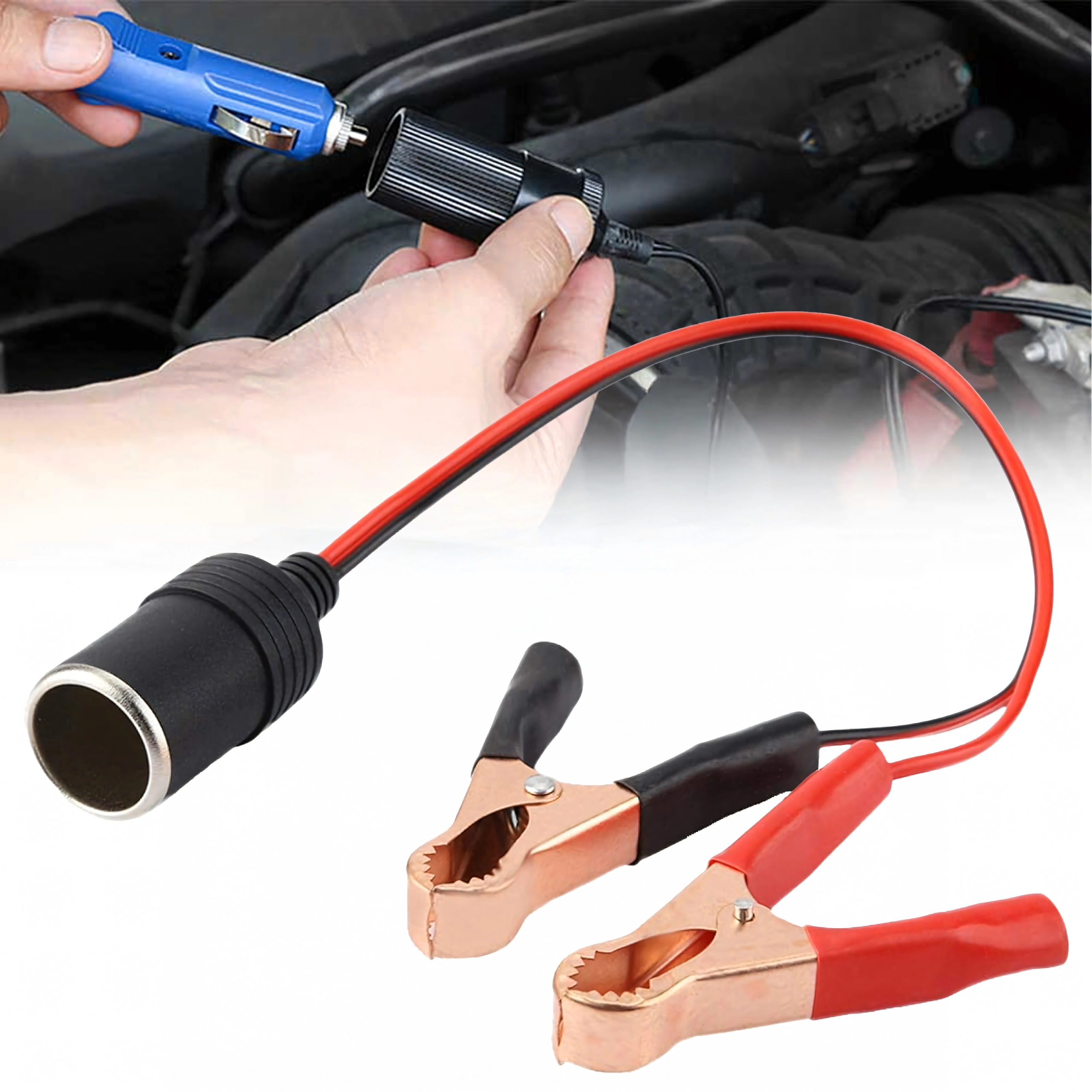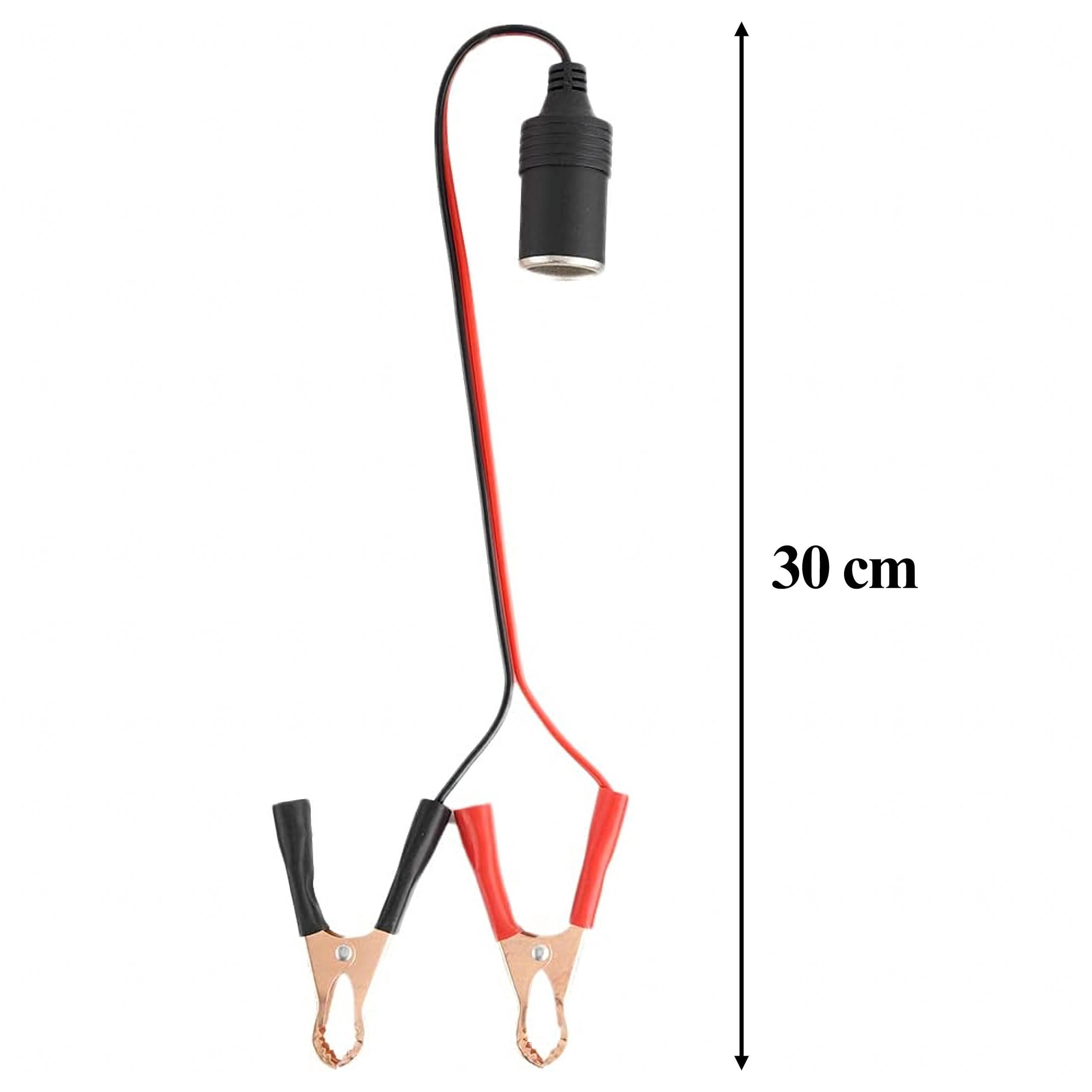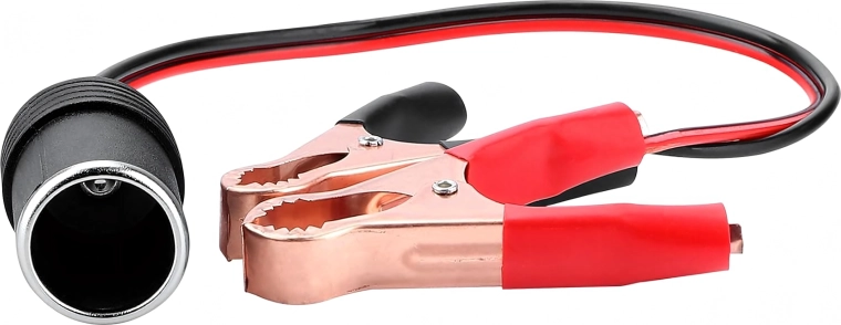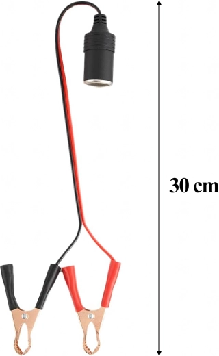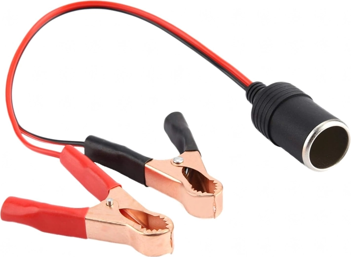Praktisk adapter til 12/24 V biludtag med krokodilleklemmer til hurtig og sikker strømforsyning af udstyr i bil, autocamper eller lastbil. Ideel til pumper, kølebokse, opladere og andet tilbehør. Kompakt og universel løsning til rejser og udendørs brug, altid lige ved hånden og klar til brug.