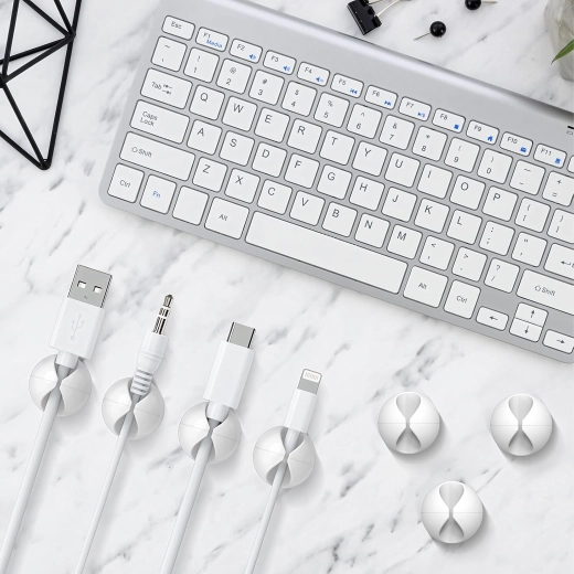 Praktiske og diskrete kabelklips hjælper med at organisere skrivebordet og bilens interiør. Takket være det stærke selvklæbende lag hæfter de på de fleste glatte overflader, og den fleksible konstruktion rummer kabler i forskellige diametre.