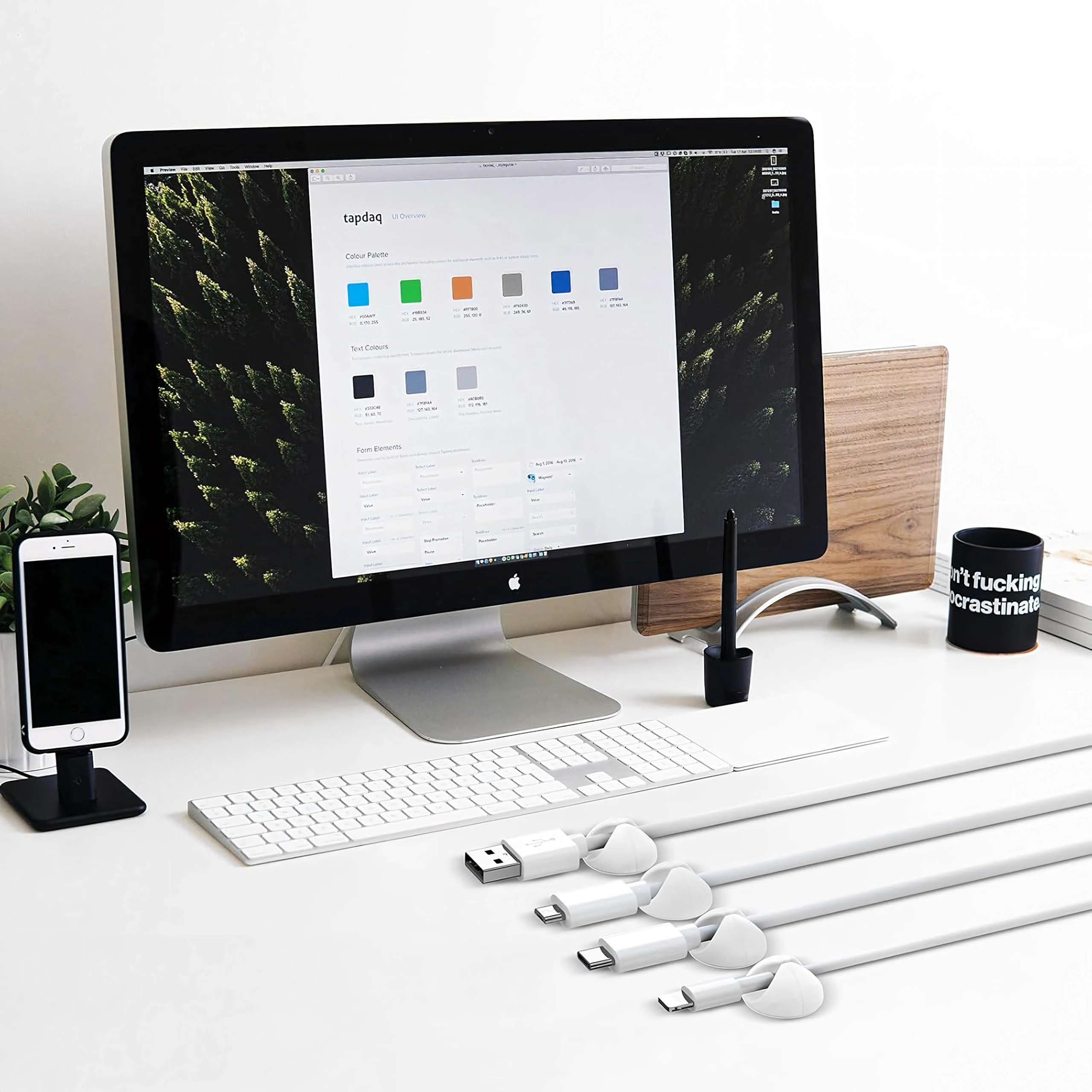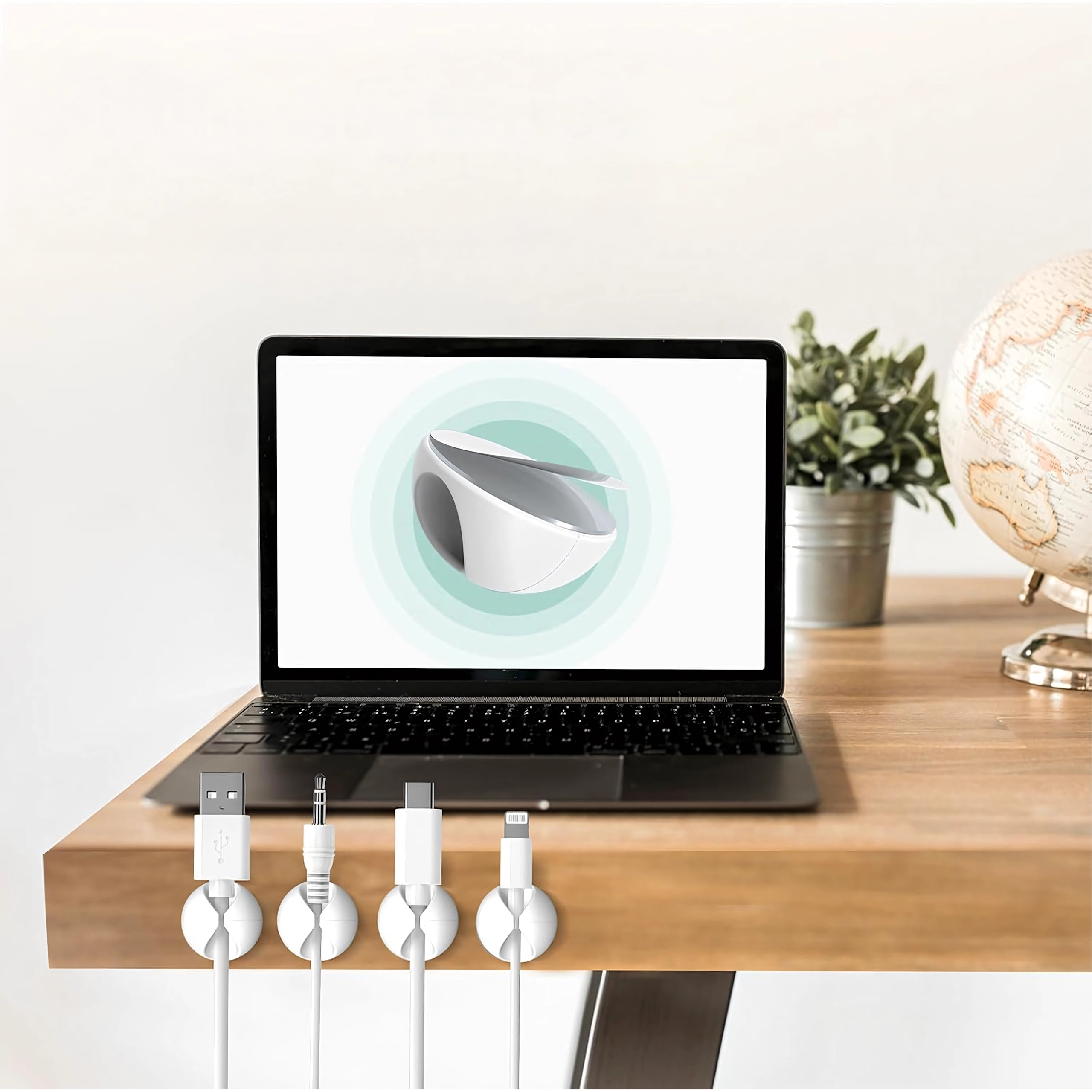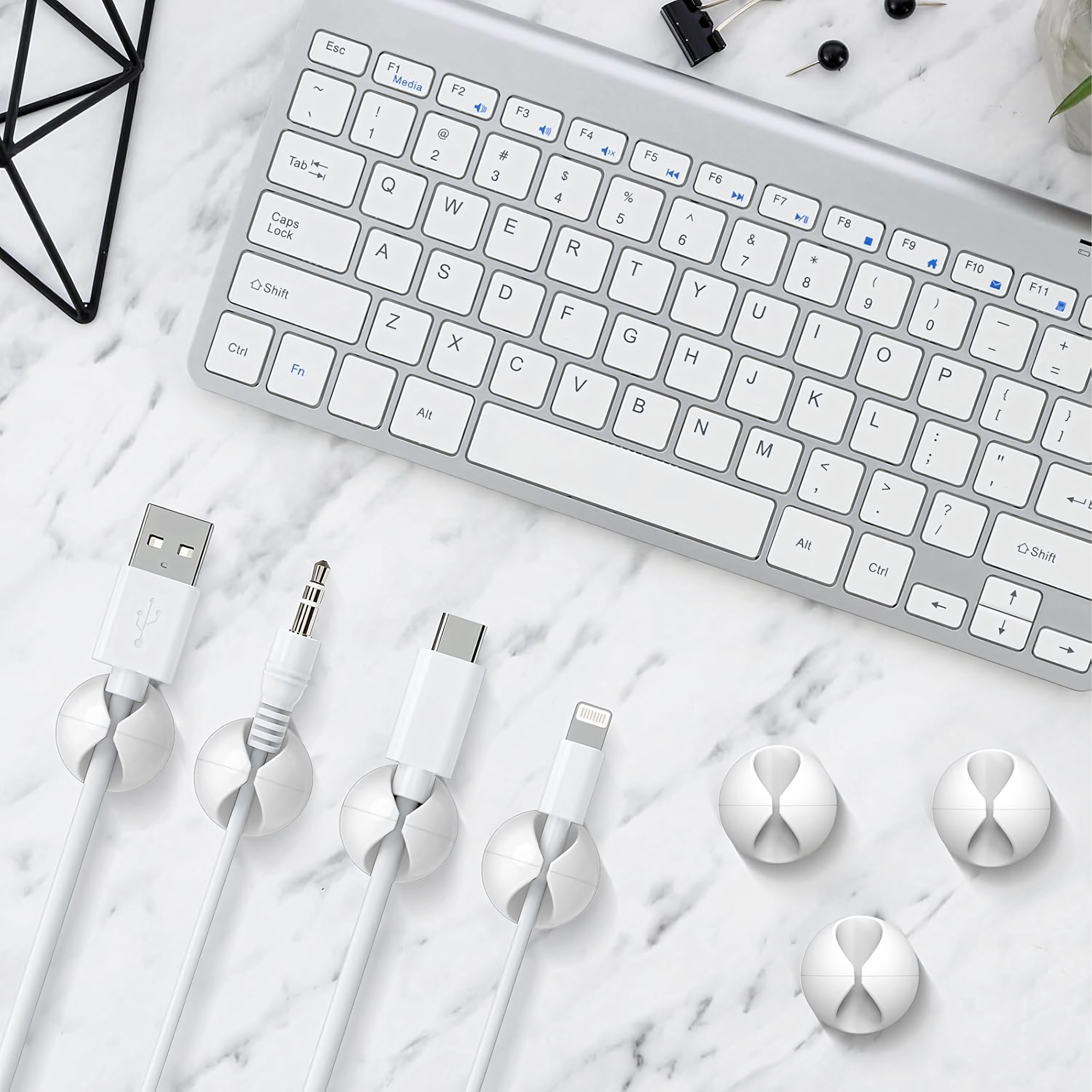 Brug dem til lade- og datakabler, høretelefoner samt små genstande som blyanter eller dekorationer. Den enkle installation uden værktøj sparer tid og holder området rent og overskueligt.