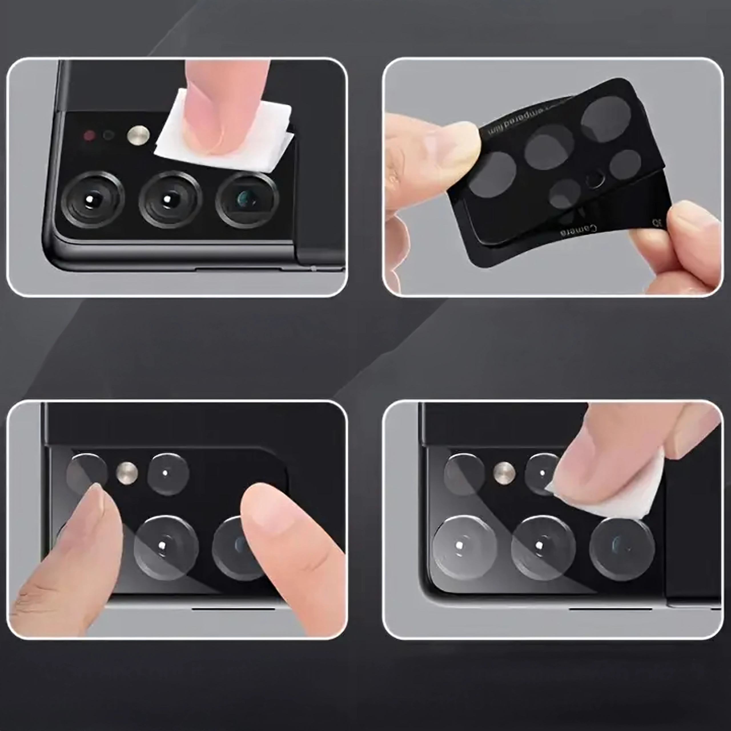 Giv kameraet på din SAMSUNG Galaxy S24 Ultra førsteklasses beskyttelse. Det hærdede glas med 9H hårdhed dækker hele linsesektionen, klæber præcist til overfladen og påvirker hverken design eller funktion. Krystalklar gennemsigtighed sikrer fejlfri billed- og videooptagelser uden forvrængning.