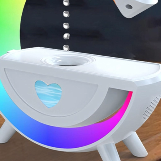 En stilfuld og funktionel antigravitations-luftfugter, der kombinerer luftpleje, afslapning og moderne design. Den tilbyder effekt af “svævende” dråber, aromaterapi, RGB LED-belysning og Bluetooth-højttaler for en behagelig atmosfære derhjemme og på kontoret.
