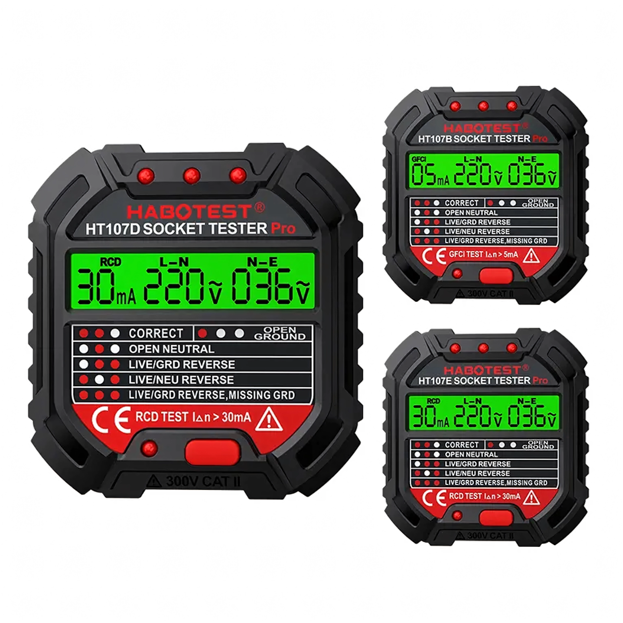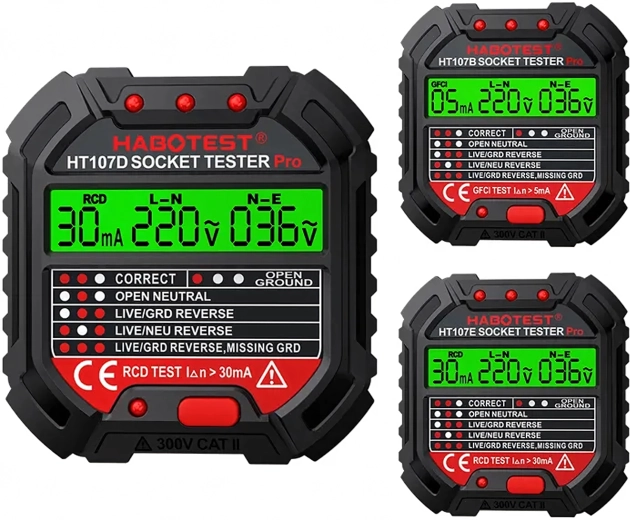 Sørg for sikkerhed derhjemme, på kontoret og i værkstedet med den smarte spændingstester HABOTEST HT107D. Denne kompakte og meget funktionelle stikkontakttester med LCD-skærm afslører hurtigt fejl i elinstallationen og hjælper med at forebygge nedbrud og dyre reparationer. Den understøtter også RCD-test (fejlstrømsafbryder) for at verificere korrekt beskyttelse af kredsløbet.